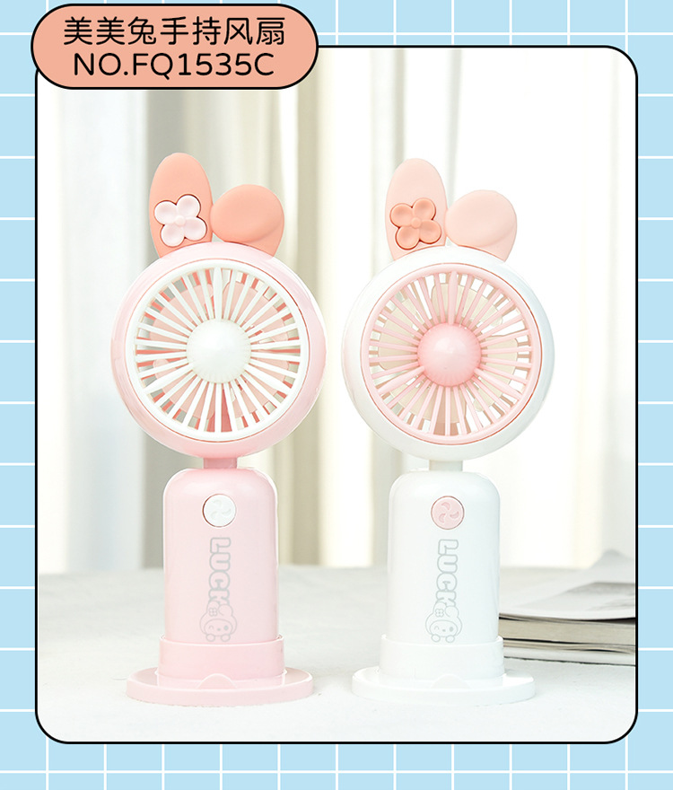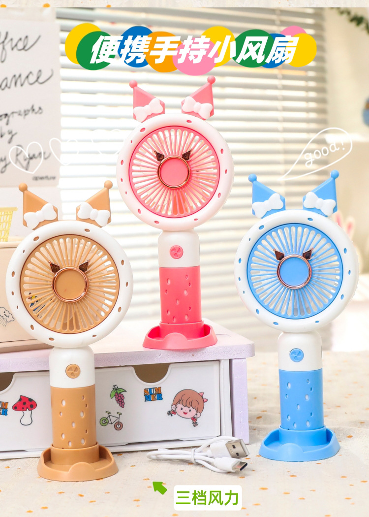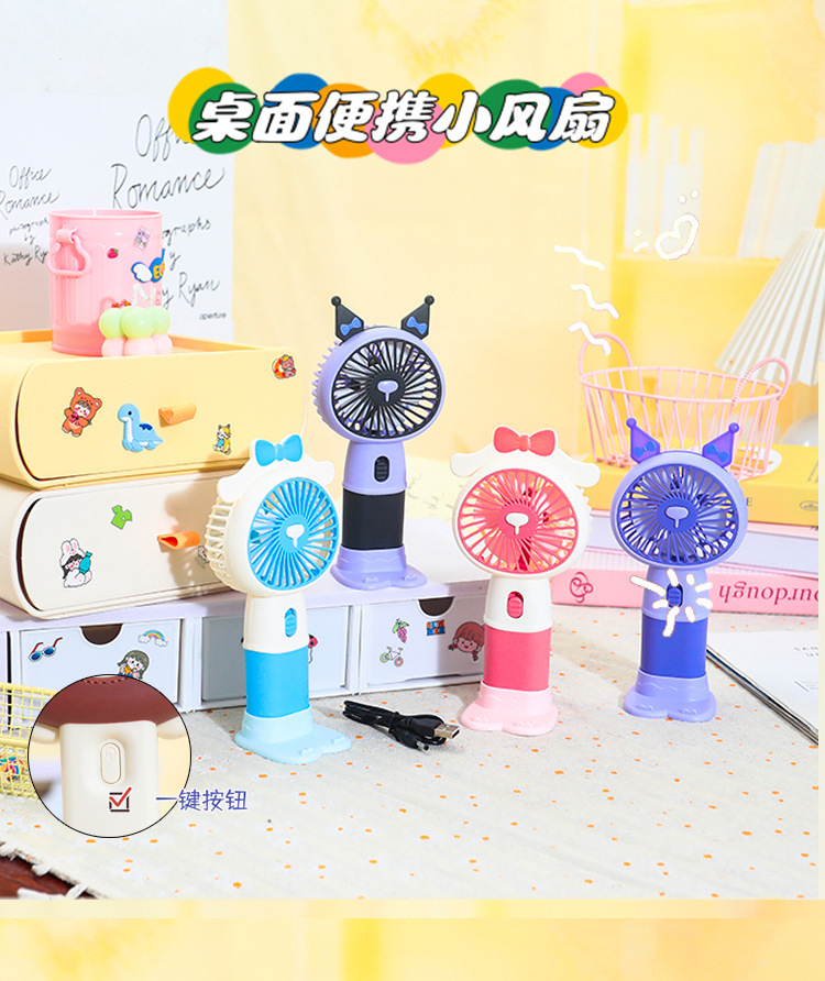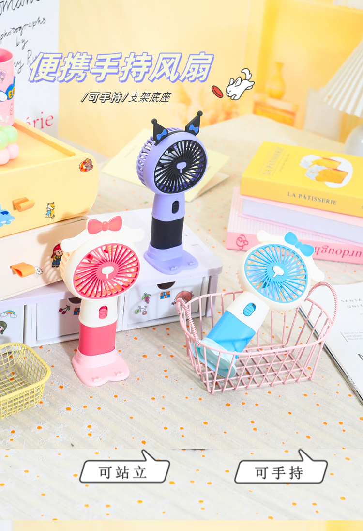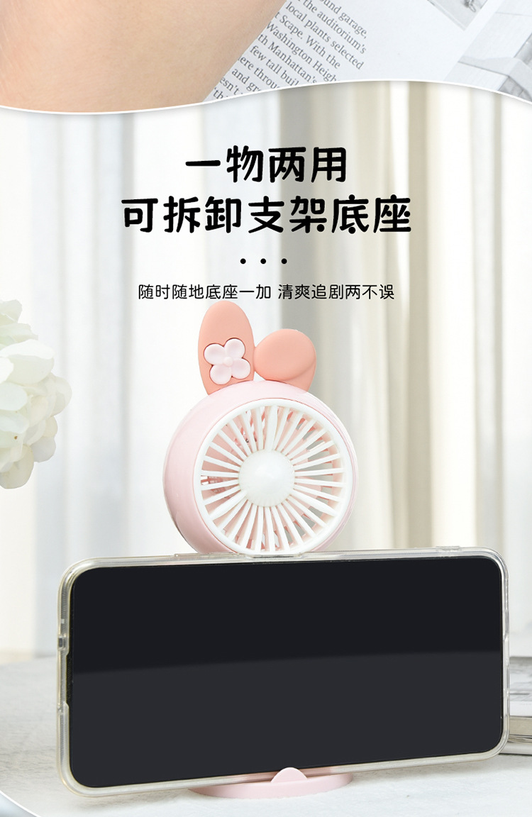【强劲风力❗可站立可手持】学生手持卡通随身口袋便携小风扇 印花手柄卡通耳朵礼品充电风扇。xa