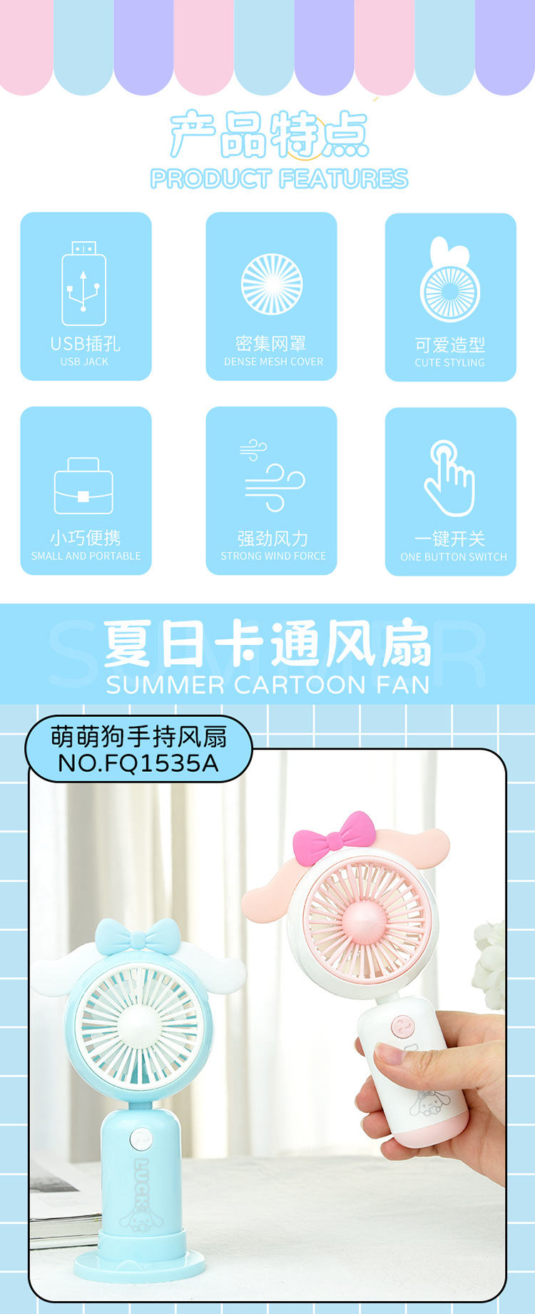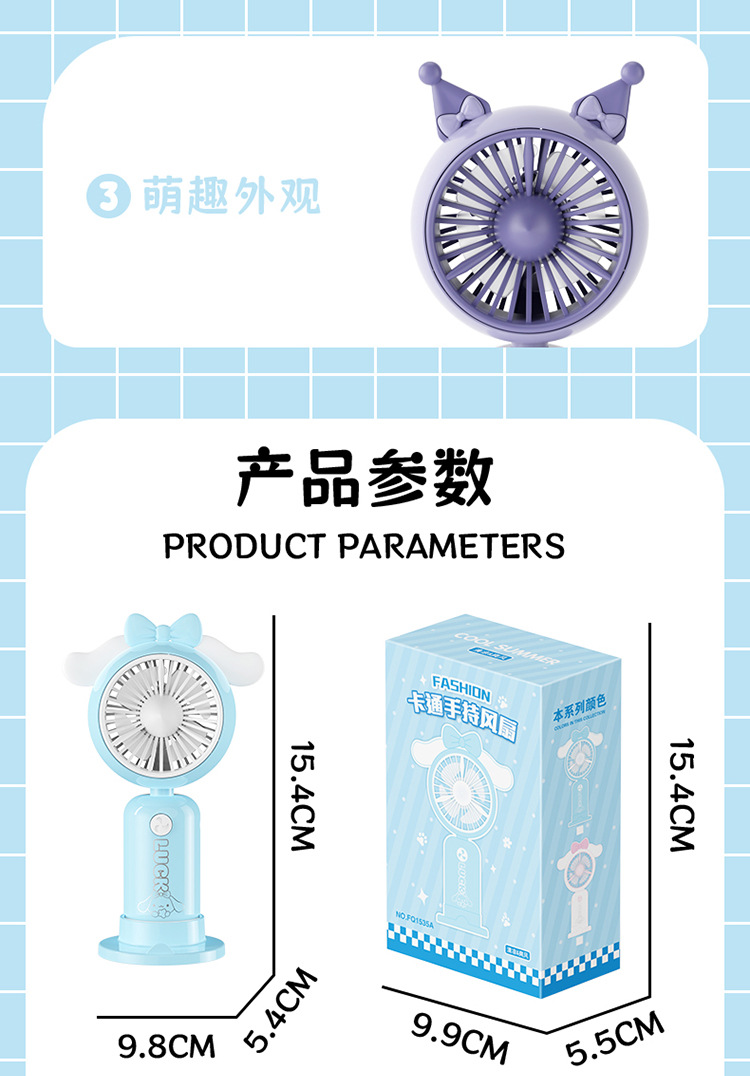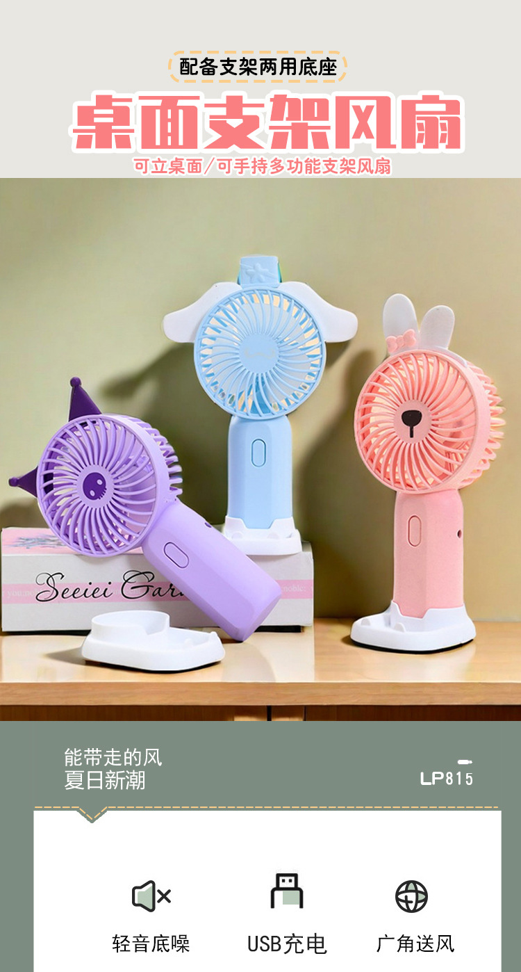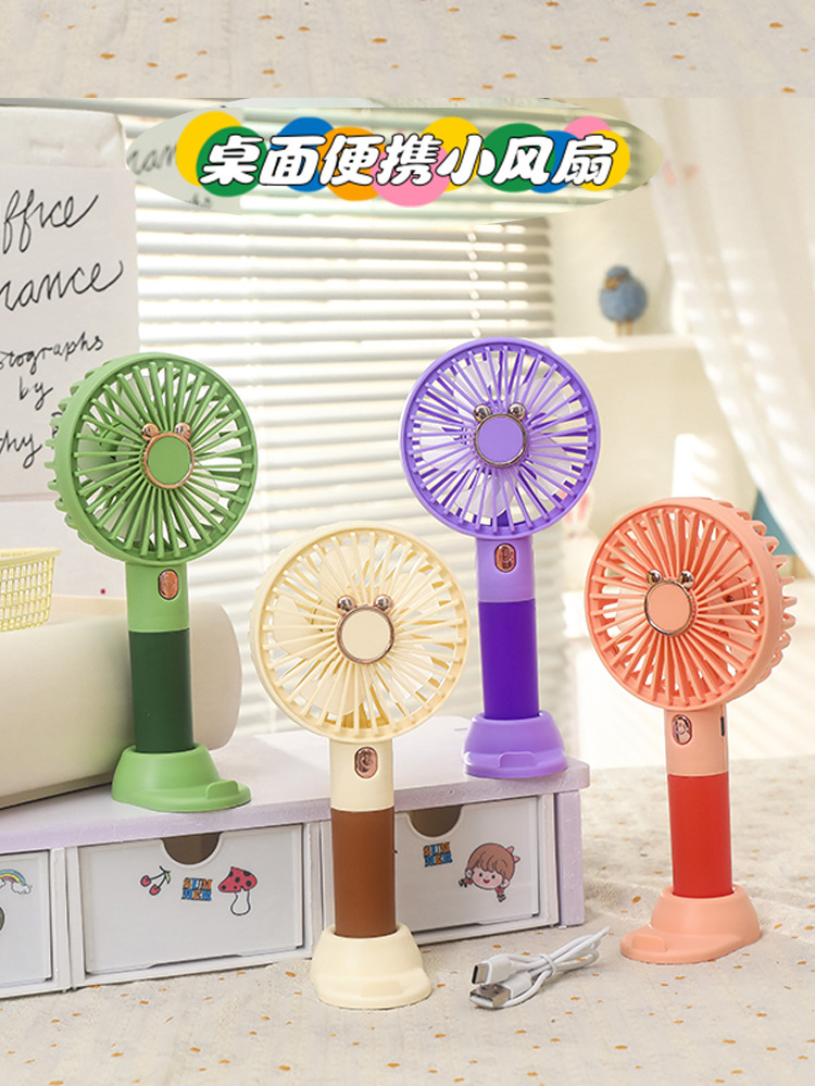 【强劲风力❗可站立可手持】学生手持卡通随身口袋便携小风扇 印花手柄卡通耳朵礼品充电风扇。xa