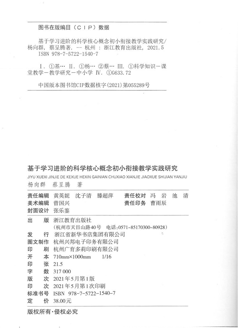 基于学习进阶的科学核心概念·初小衔接教学实践研究