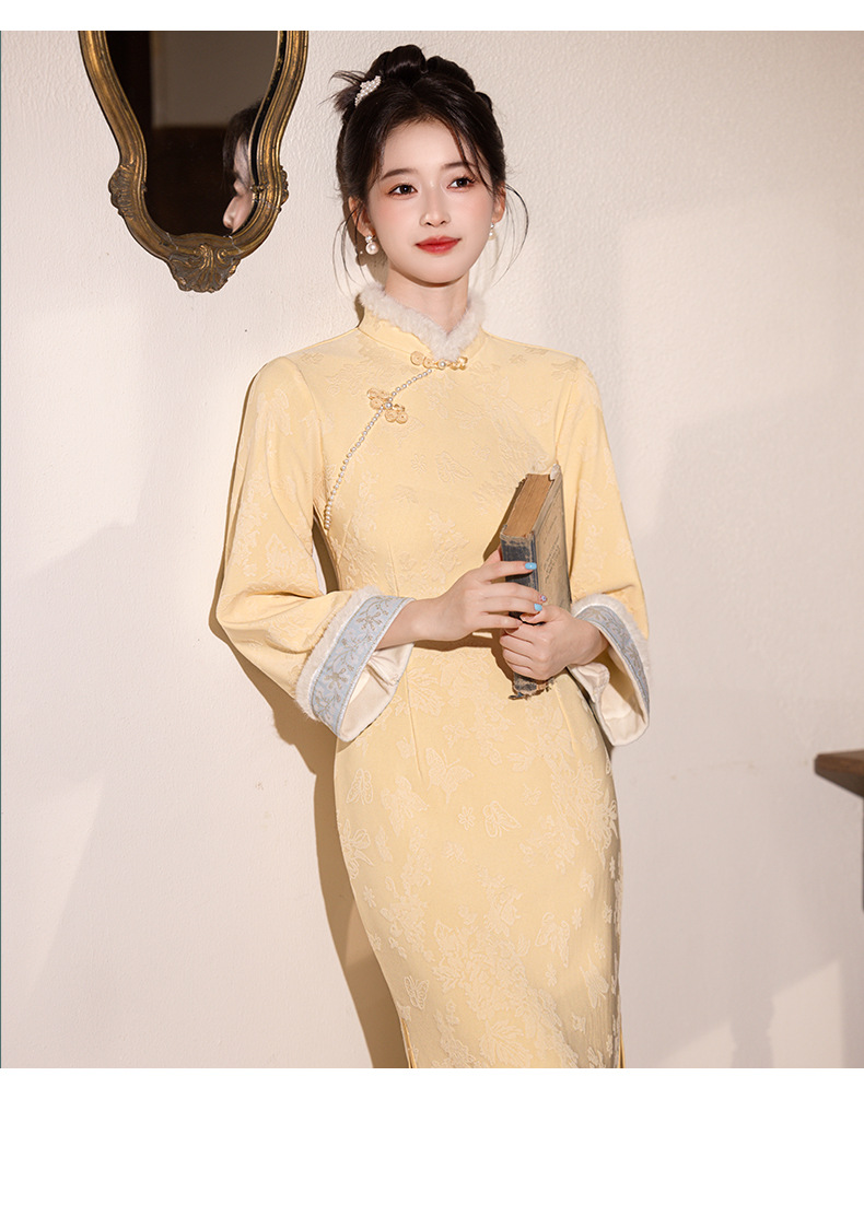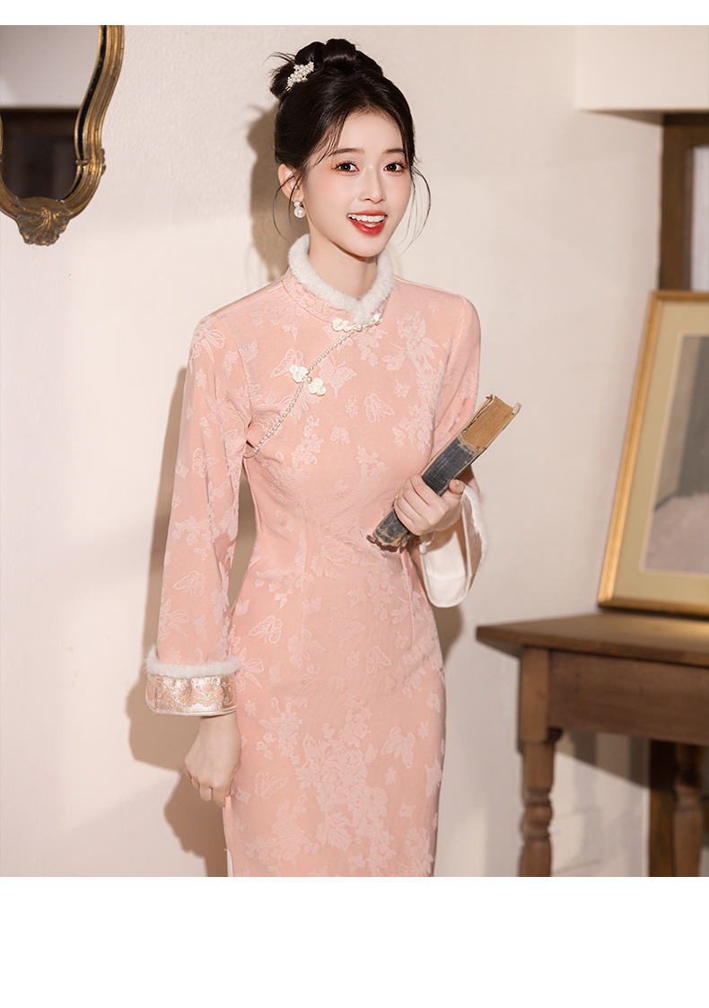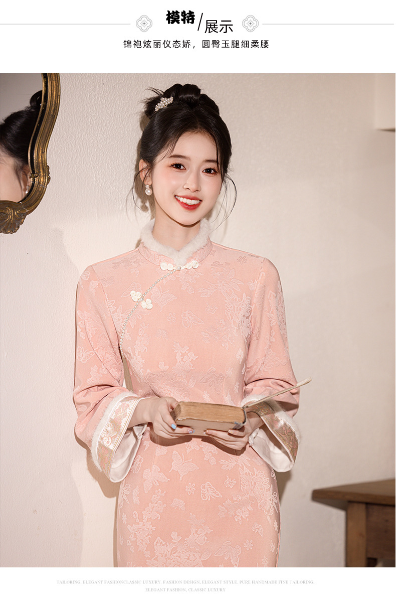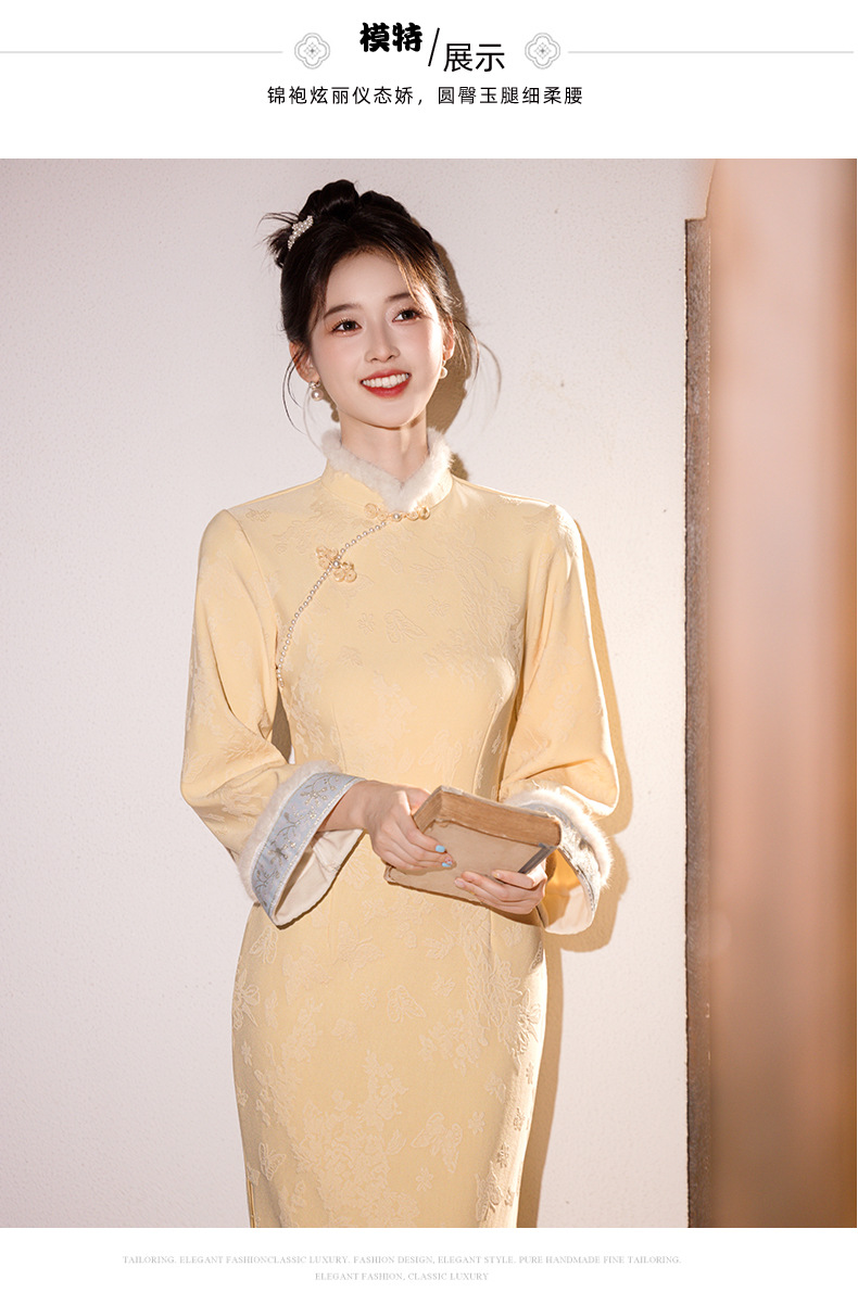 新中式改良旗袍加绒年轻款 优雅复古高级感国风旗袍8566
