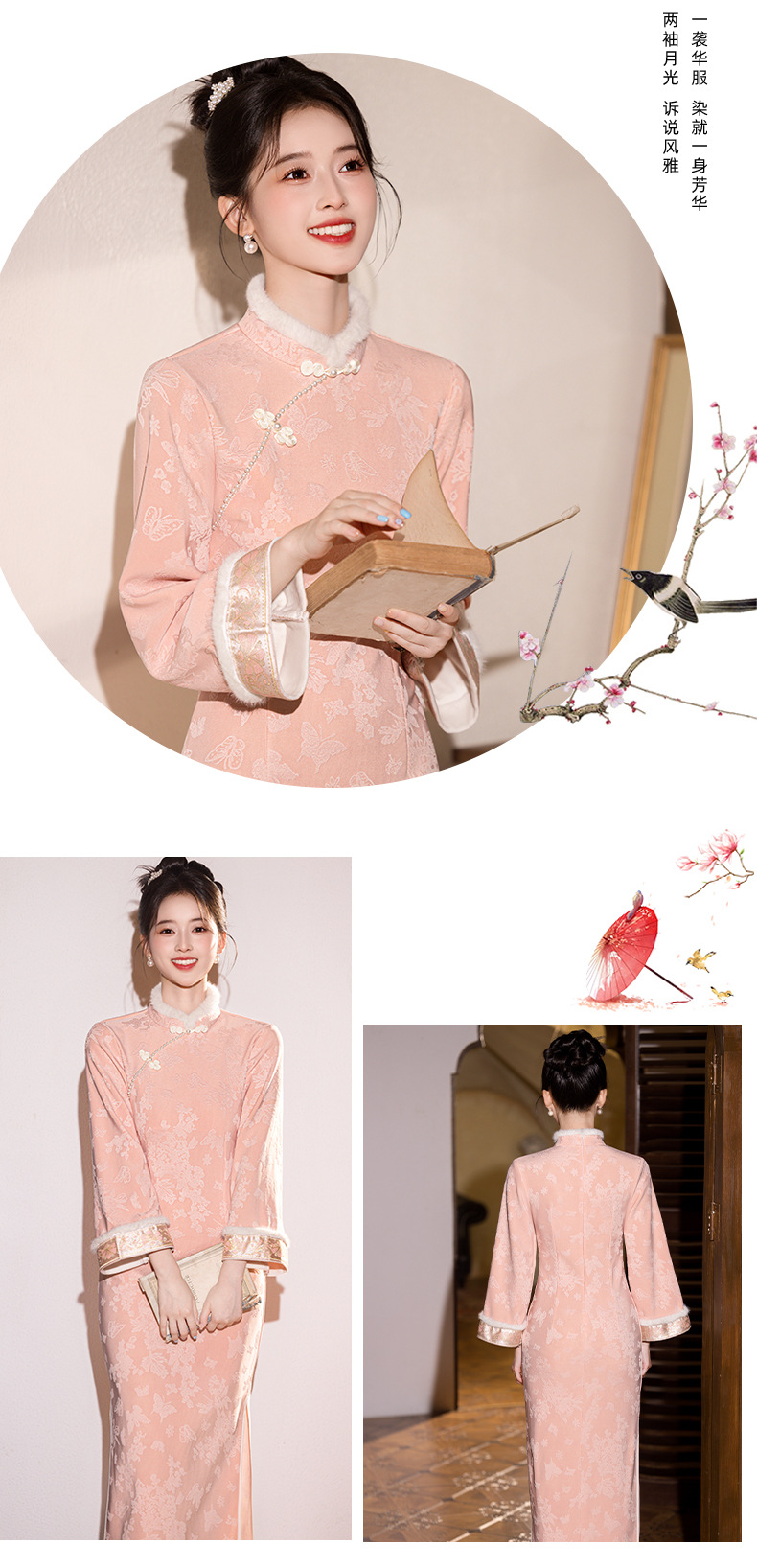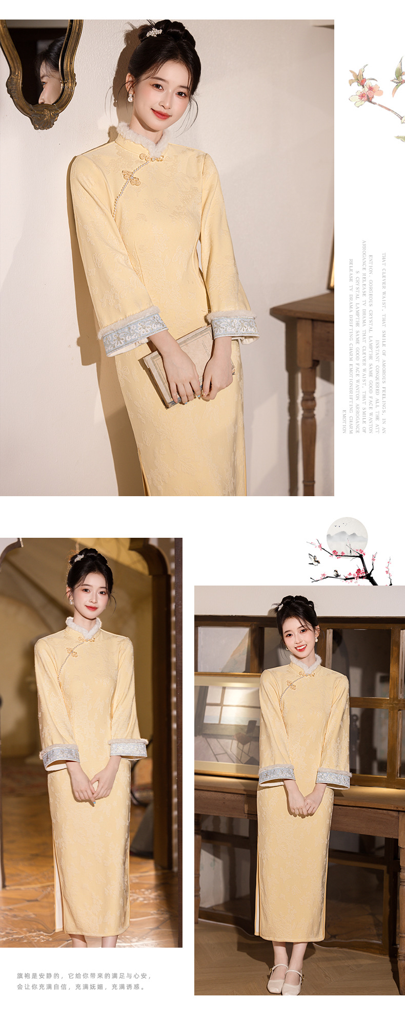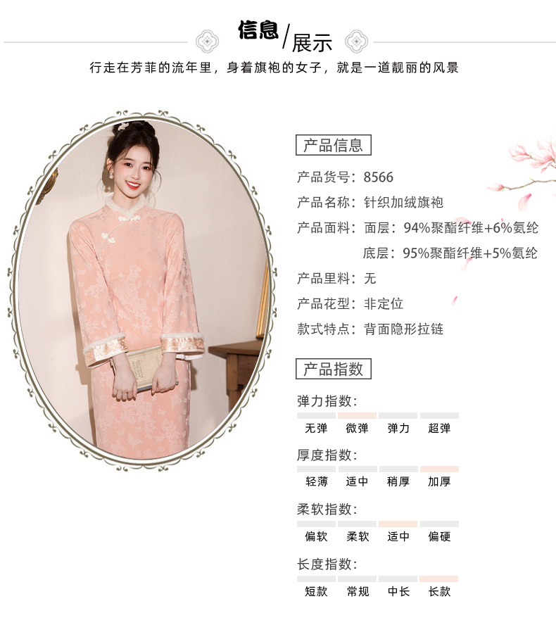新中式改良旗袍加绒年轻款 优雅复古高级感国风旗袍8566