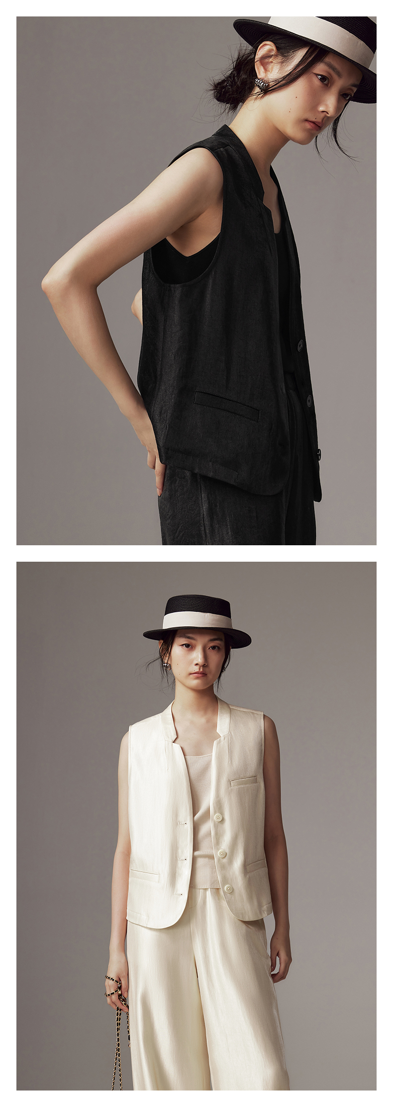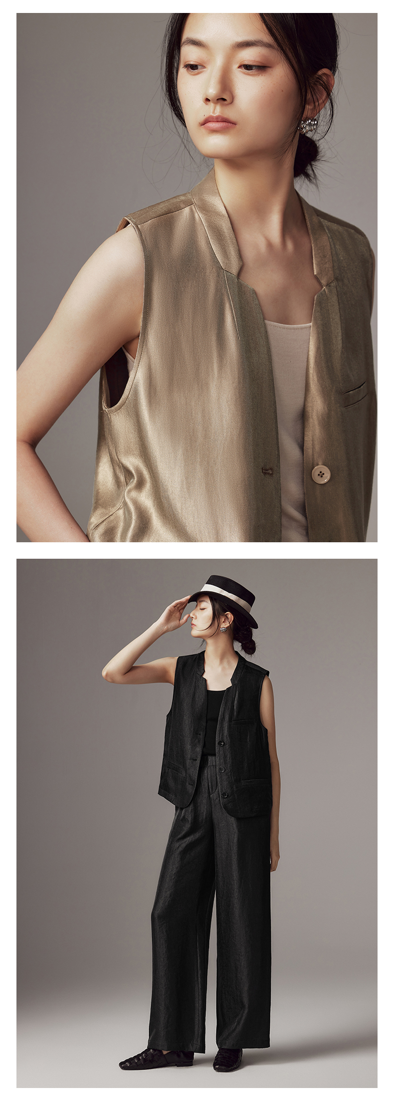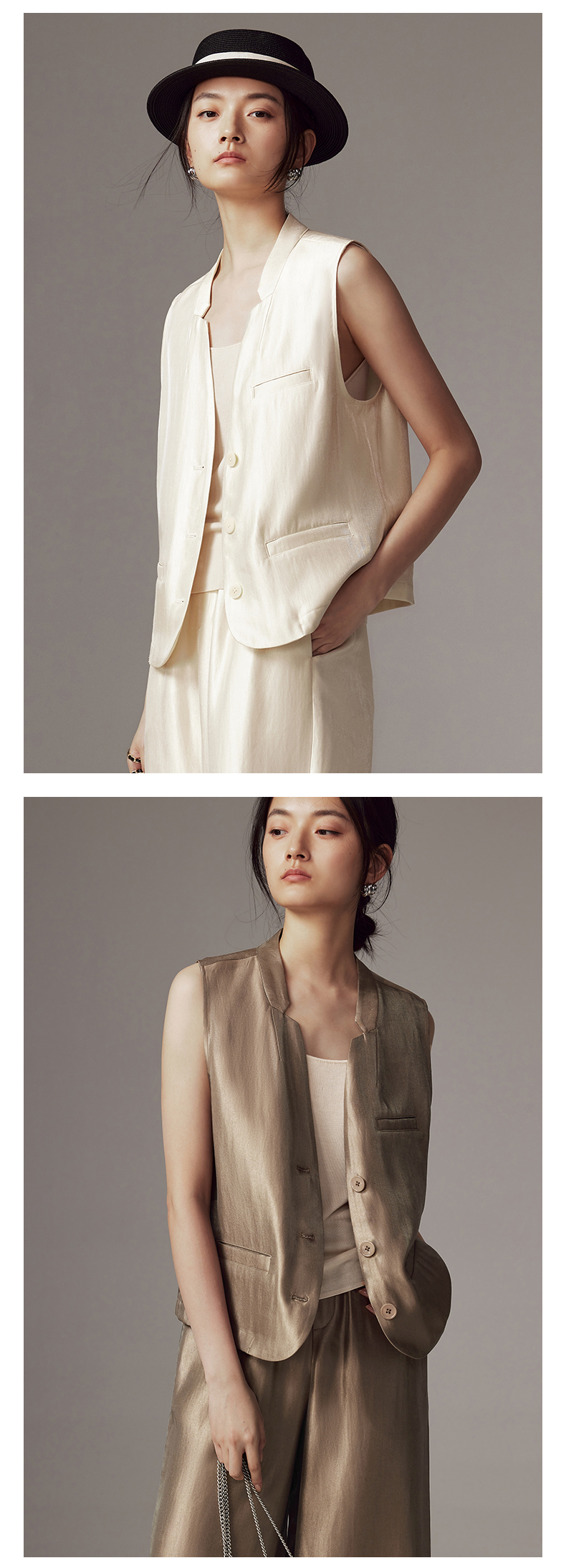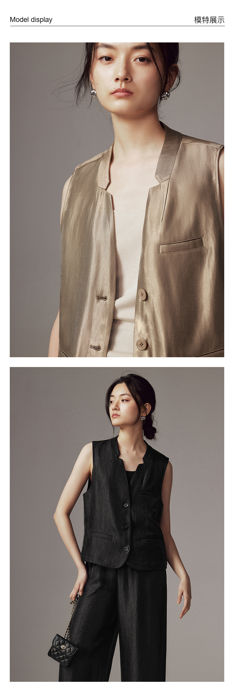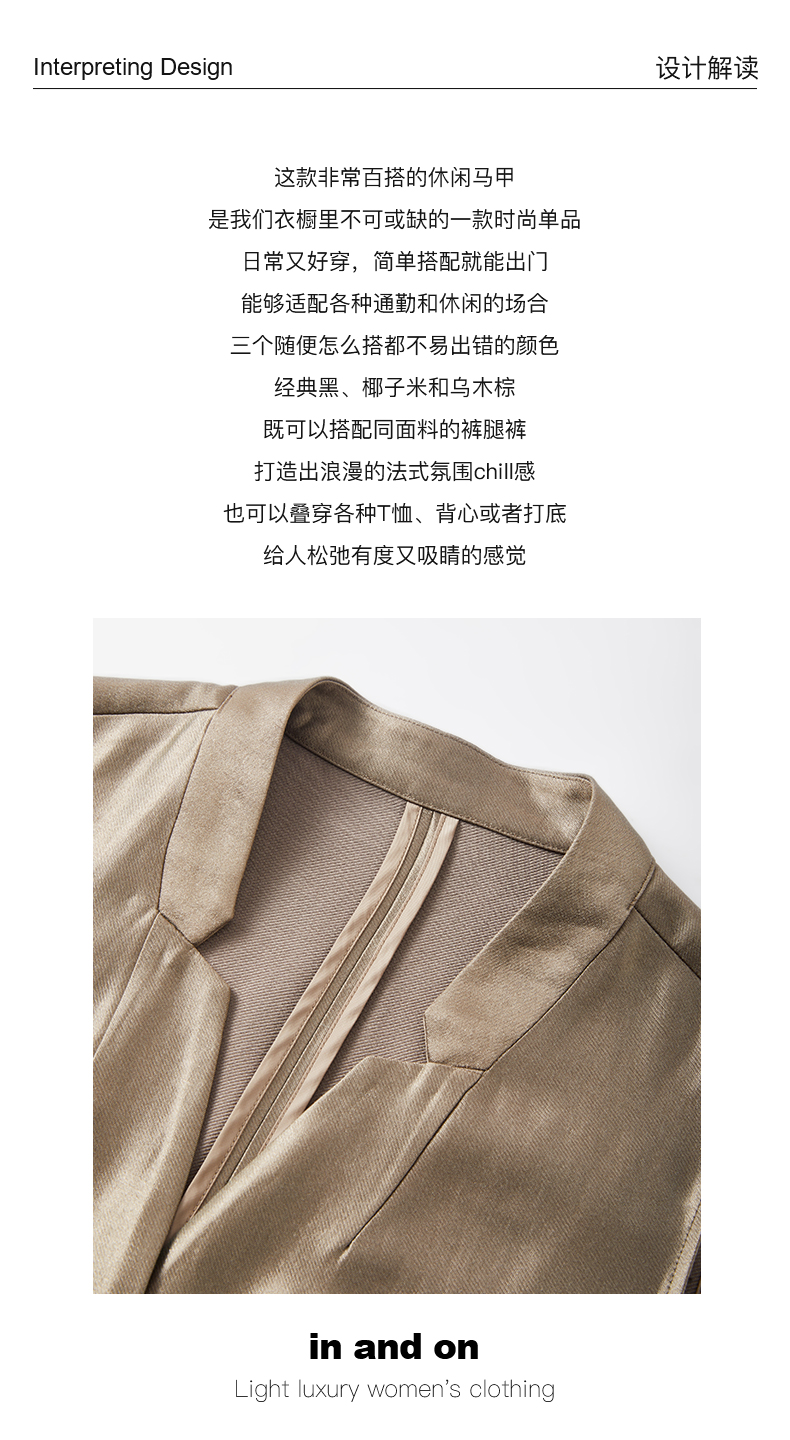 IN AND ON 2024新款 亮丝光影缎 V领休闲马夹 54162