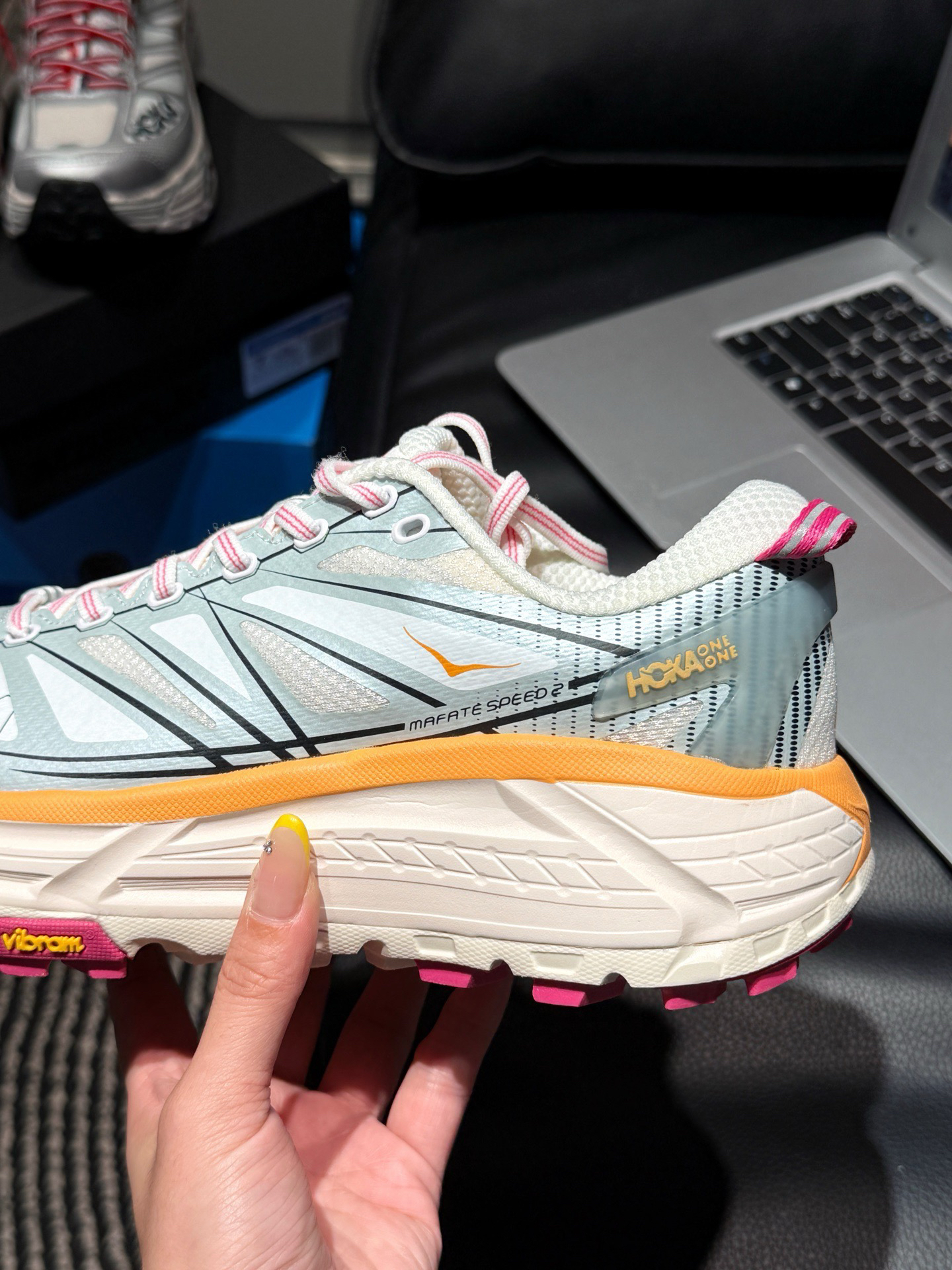 前后掌都是V底 5mm的vibram橡胶大底抓地力更强,更稳,长时间徒步也不会累。增高不用说了 越野跑鞋主打一个安全 适应各种地形环境 不可缺少的跑鞋🔺🔺今天所有配色同价!!