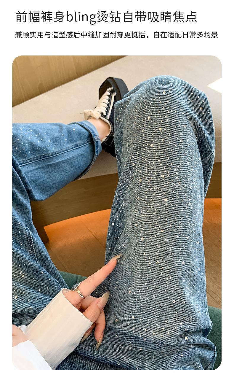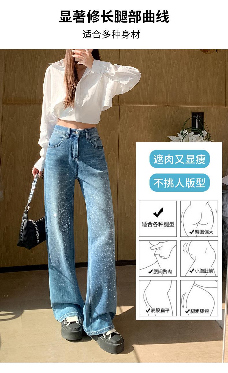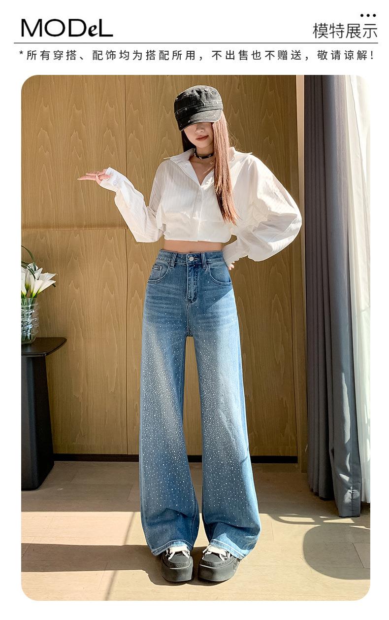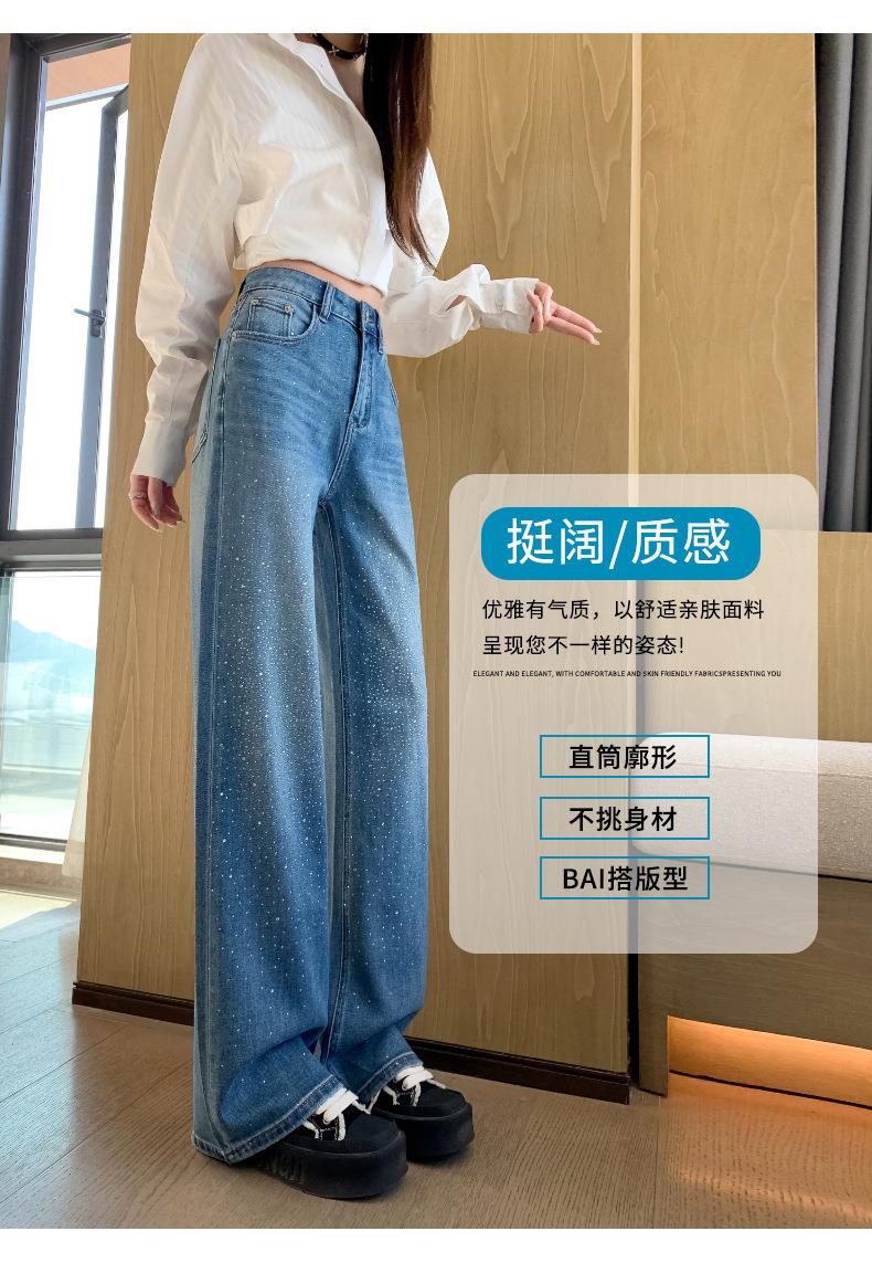 【秒杀】2026春季设计感高腰直筒小个子阔腿裤满天星烫钻牛仔裤女