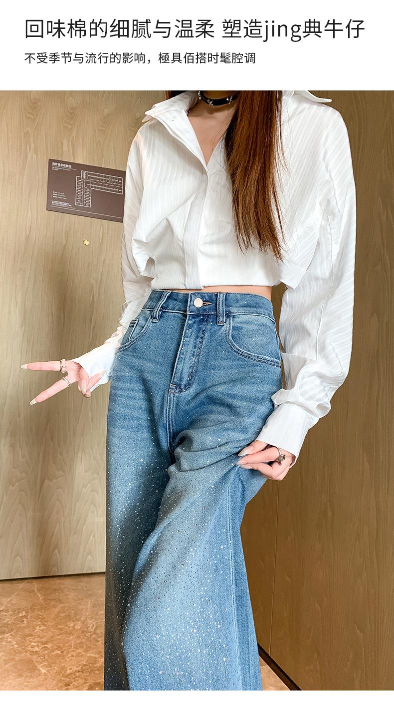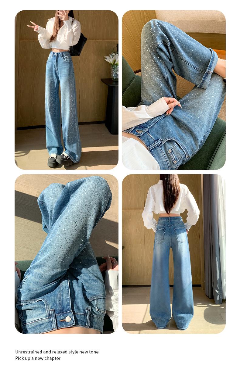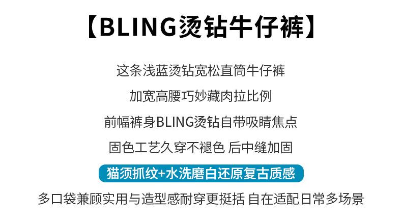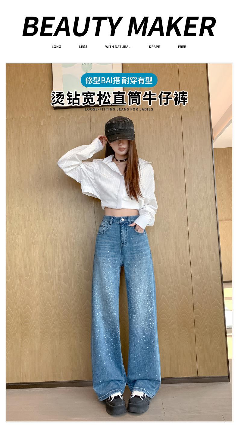 【秒杀】2026春季设计感高腰直筒小个子阔腿裤满天星烫钻牛仔裤女