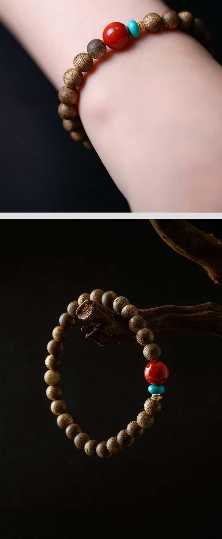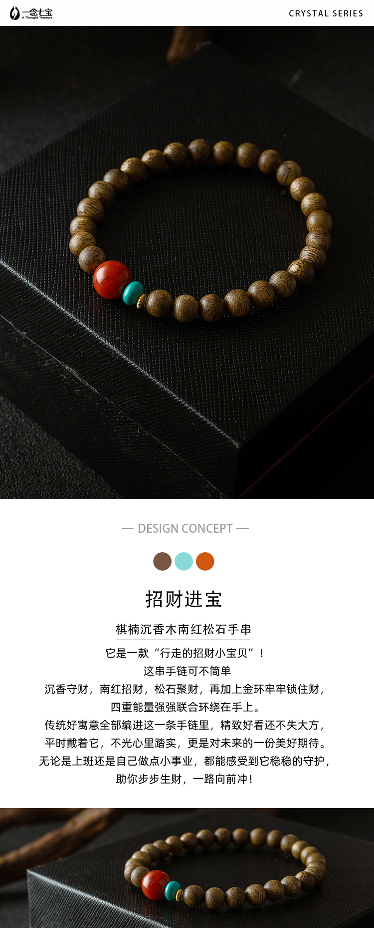 【一念七宝】招财进宝 | 棋楠沉香木南红松石手串