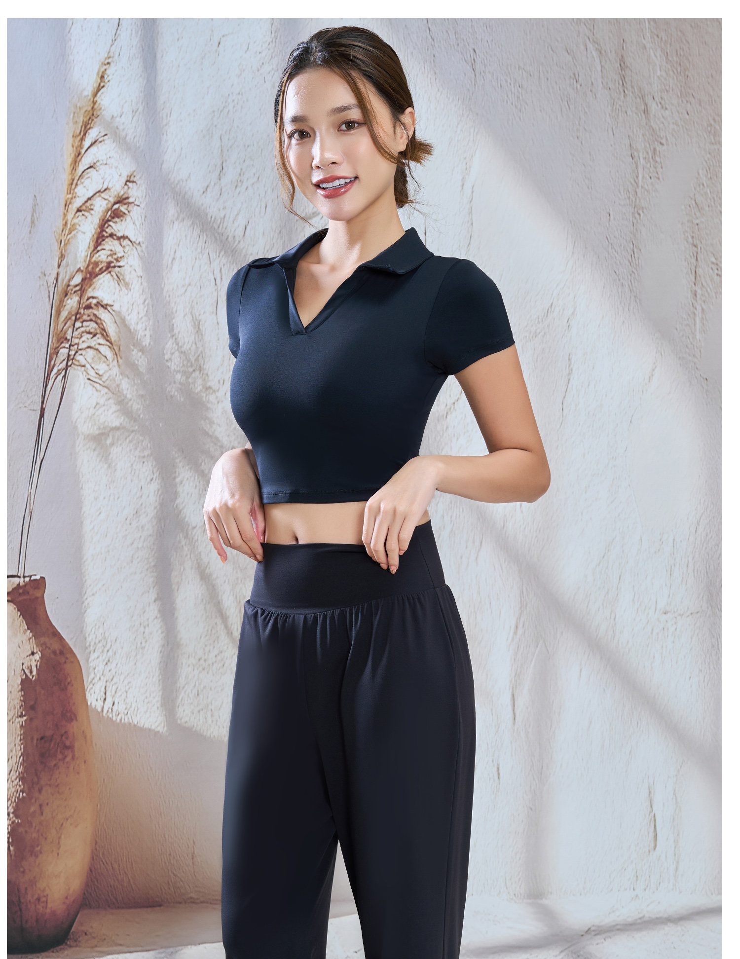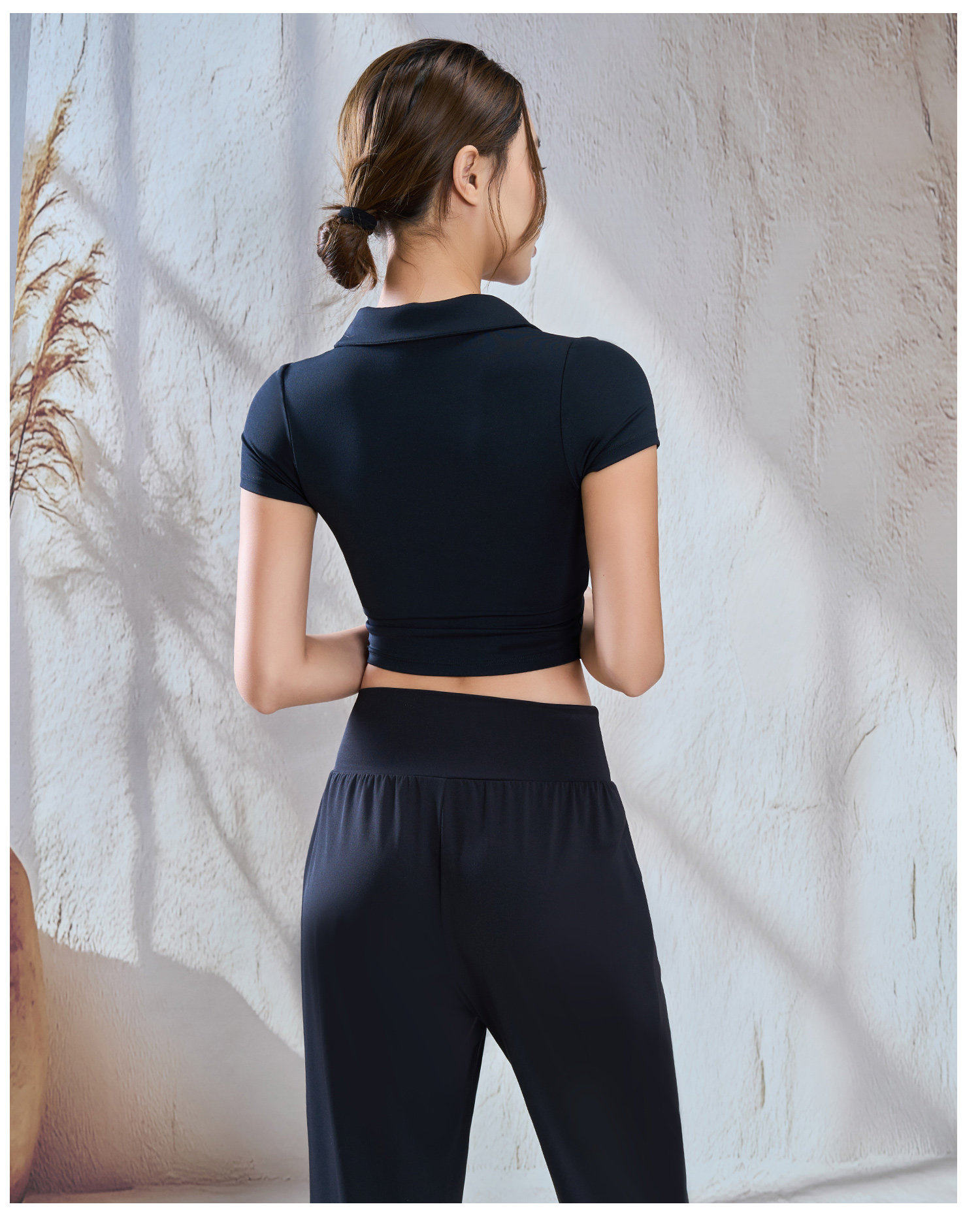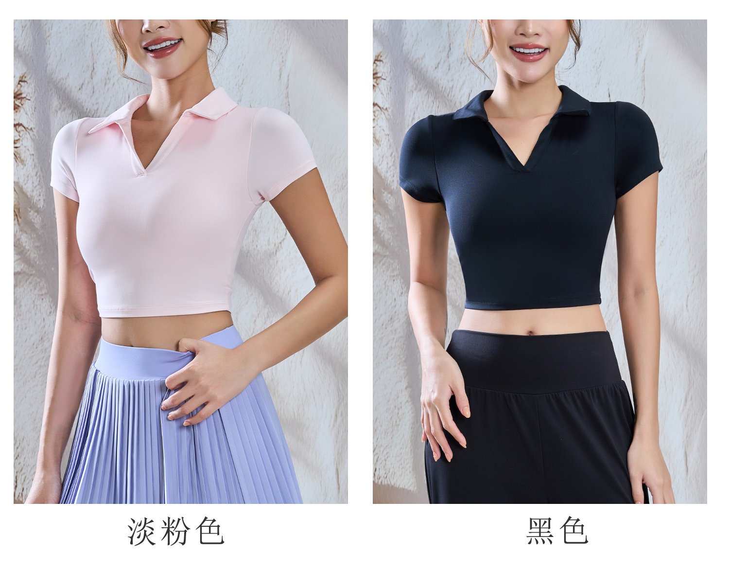 【限时秒】YOGACODE【火树银花系列】polo翻领瑜伽短袖女带胸垫一体式性感露脐短款t恤DWY116134