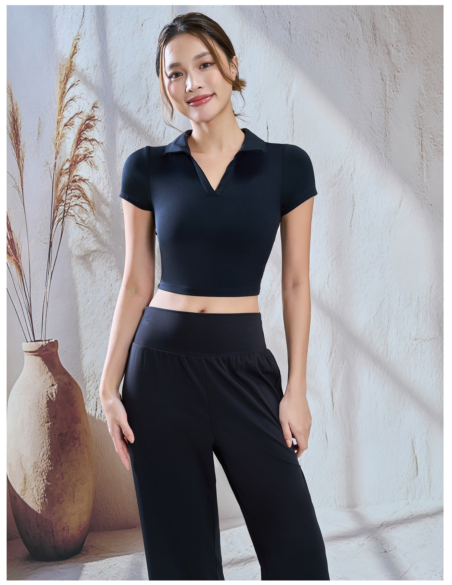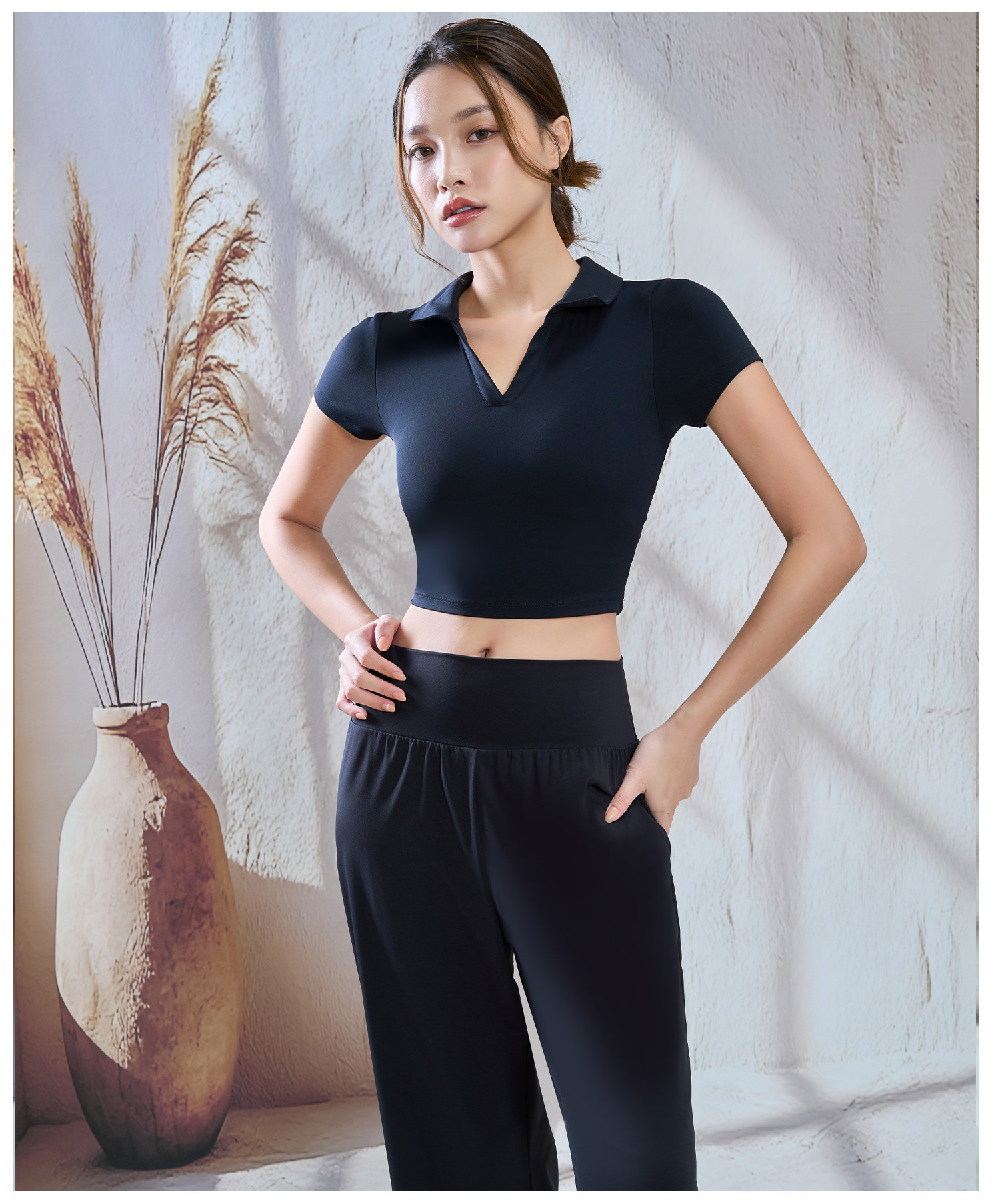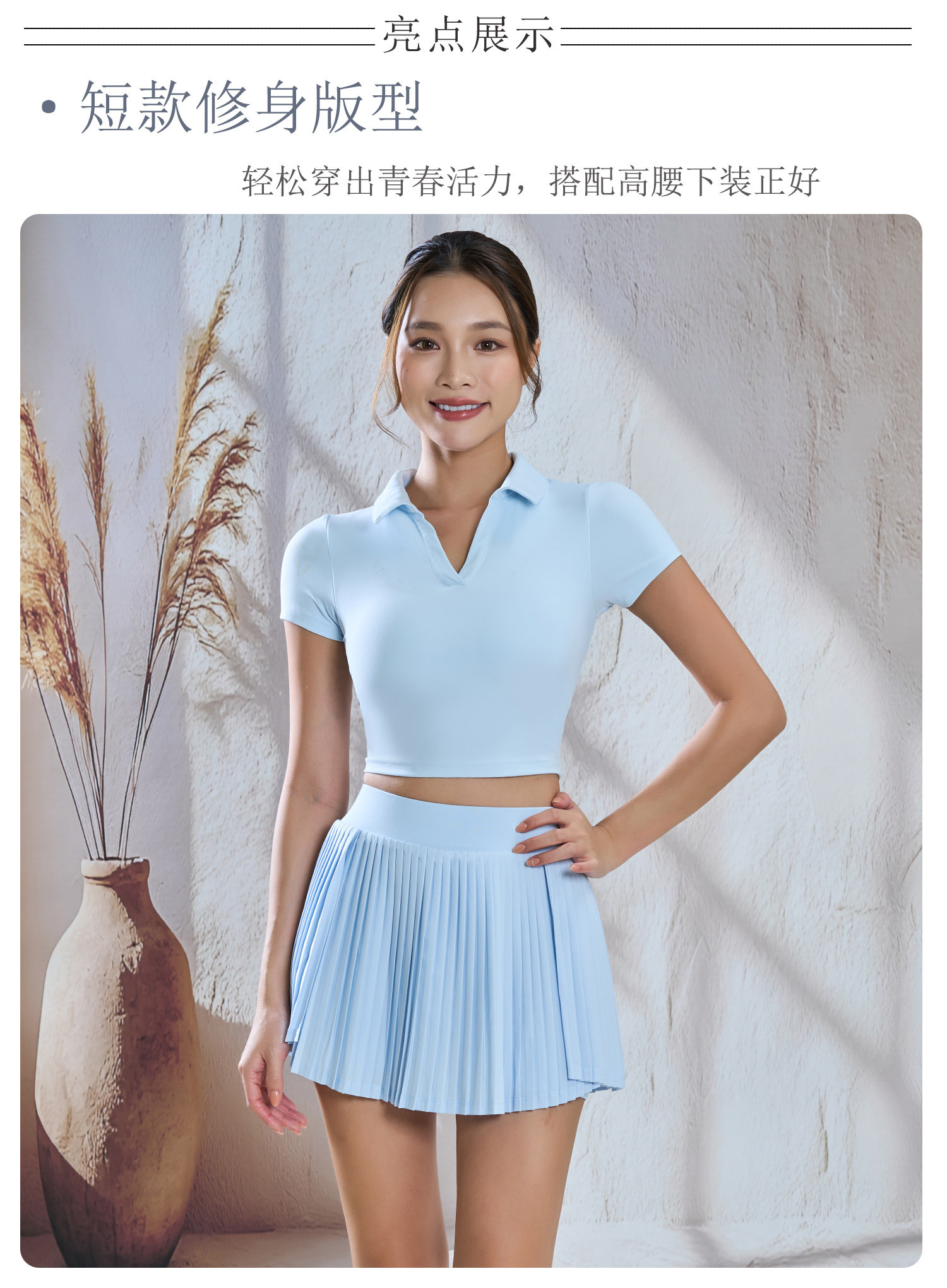 【限时秒】YOGACODE【火树银花系列】polo翻领瑜伽短袖女带胸垫一体式性感露脐短款t恤DWY116134