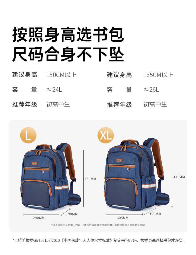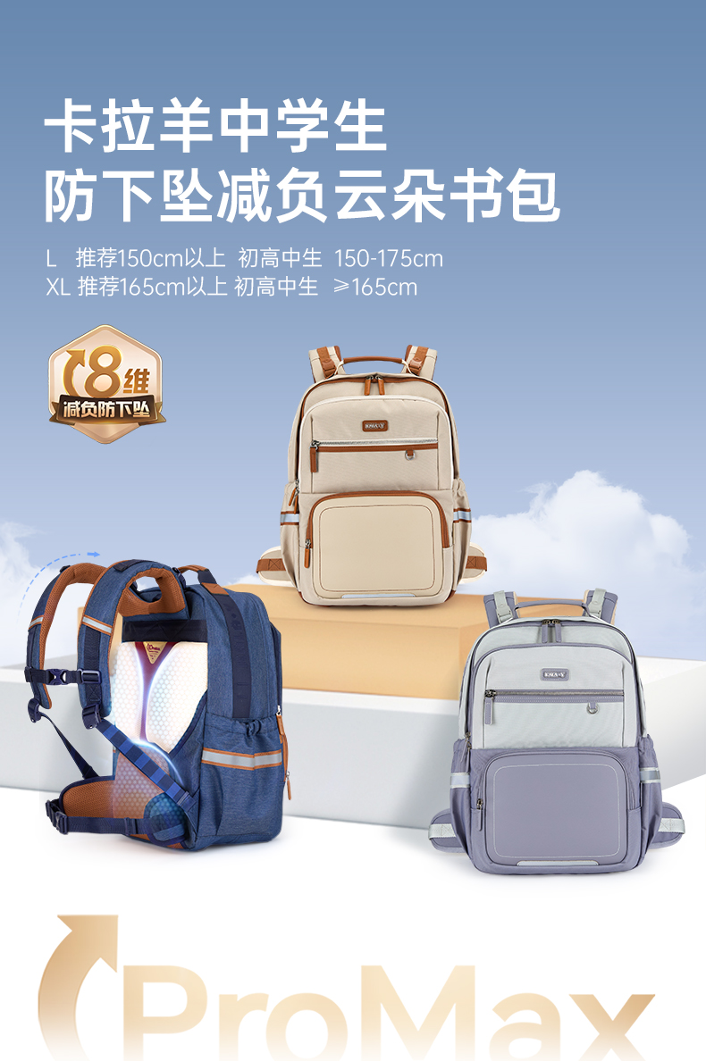 【8维减负防下坠】卡拉羊中学生8维减负ProMax云朵书包 传奇系列CX5136/L
