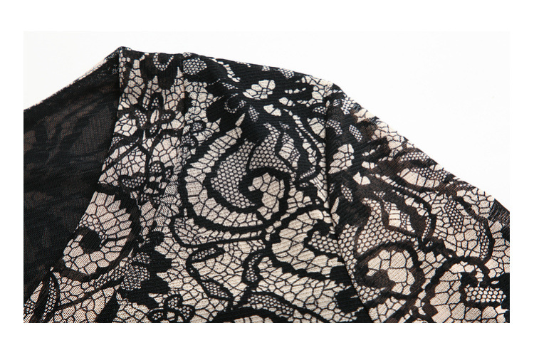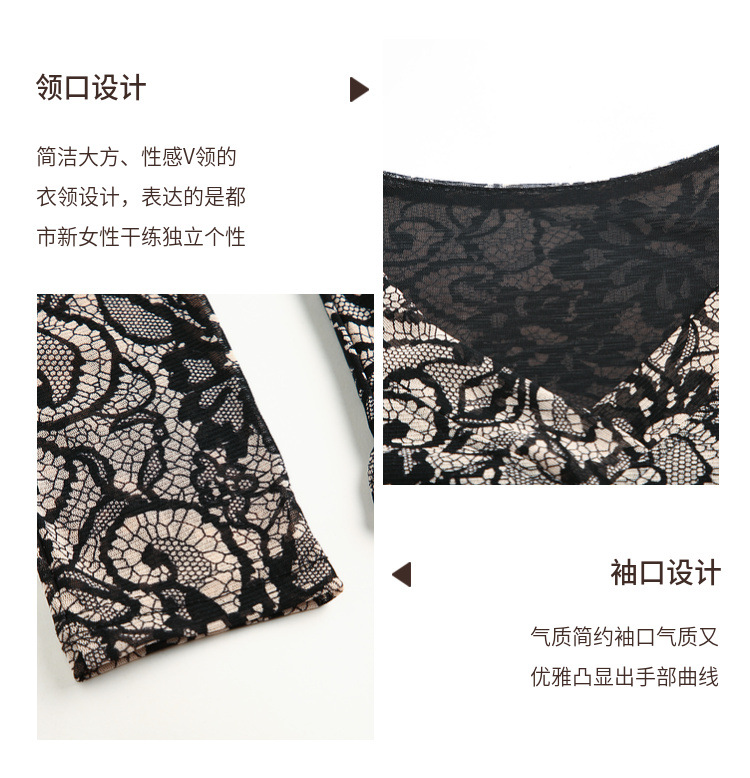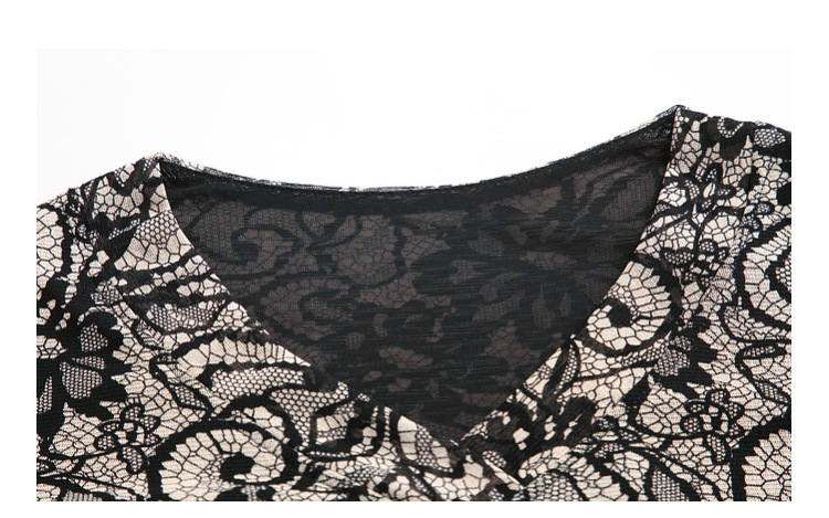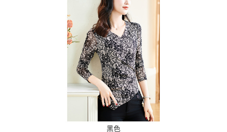 KQL E001M6793新款V领网纱印花套头T恤内搭外穿打底衫