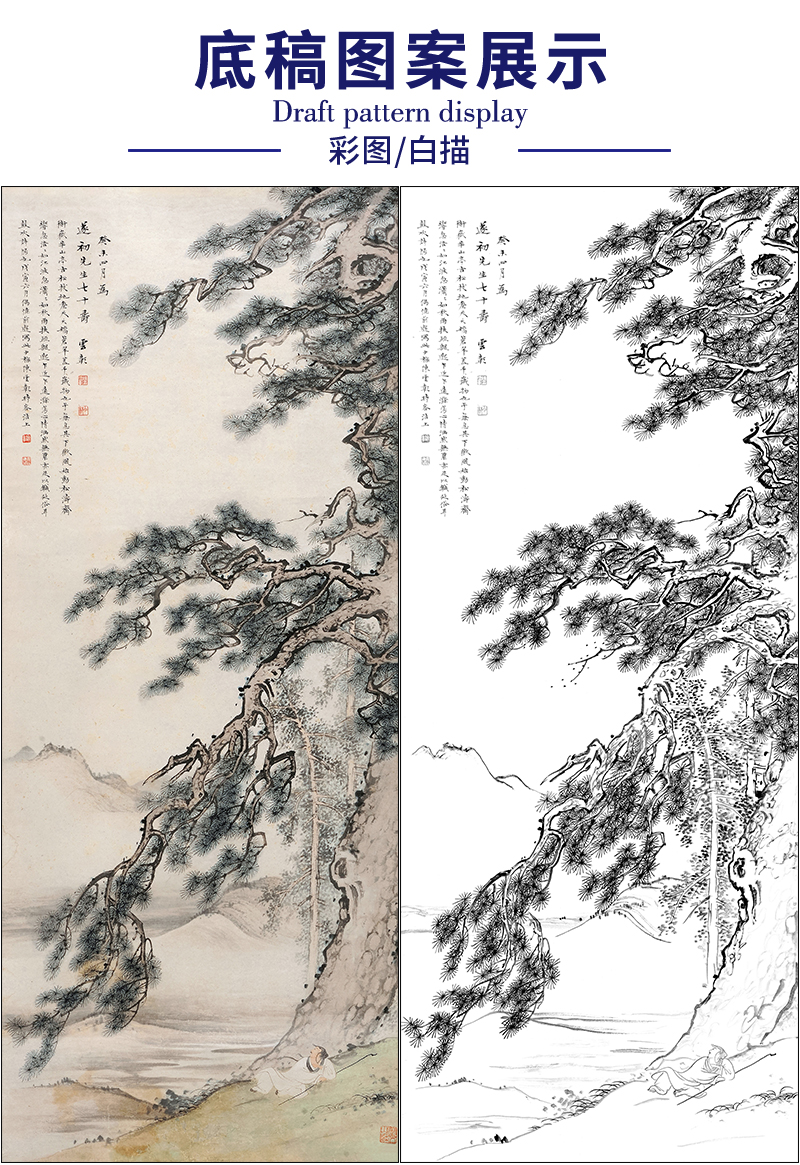陈少梅山水人物工笔画白描底稿《高士图》临摹勾线高清打印稿SM25