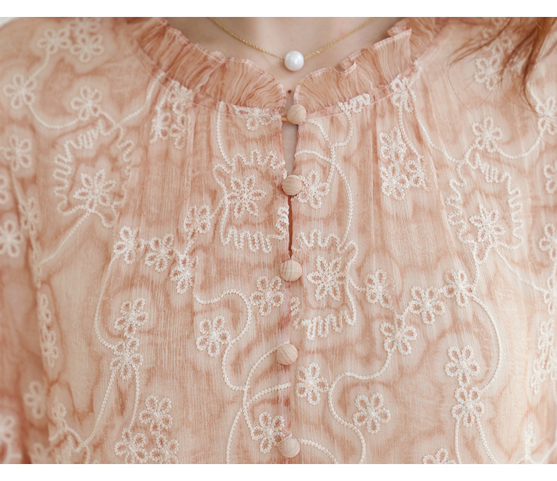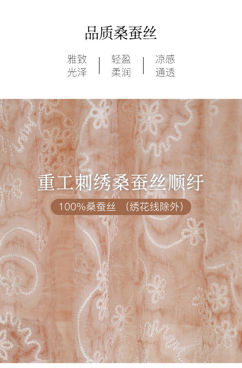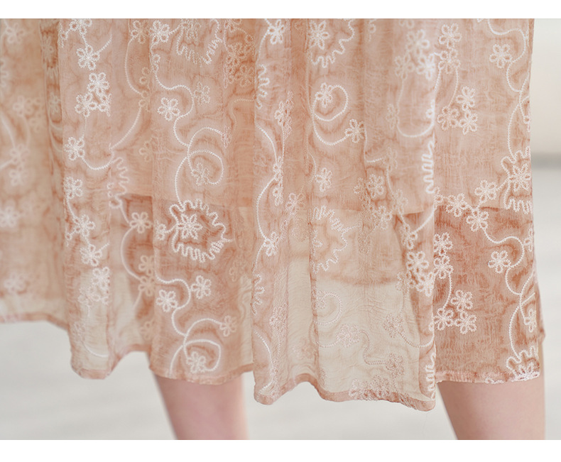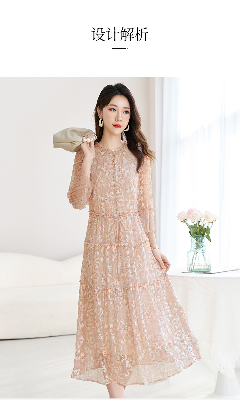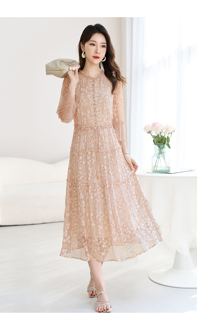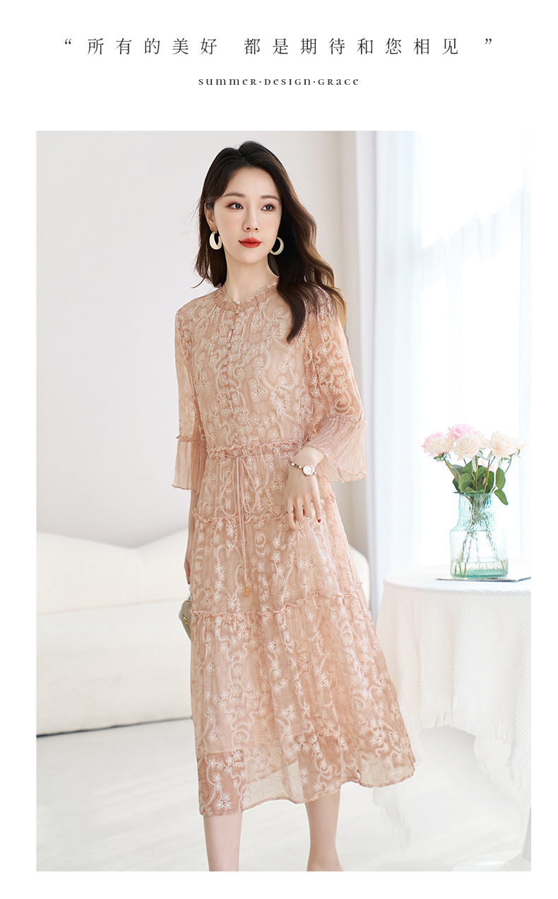 QS-82599726【真丝顺纡绣花】夏季显瘦木耳边中长裙减龄桑蚕丝连衣裙女9726