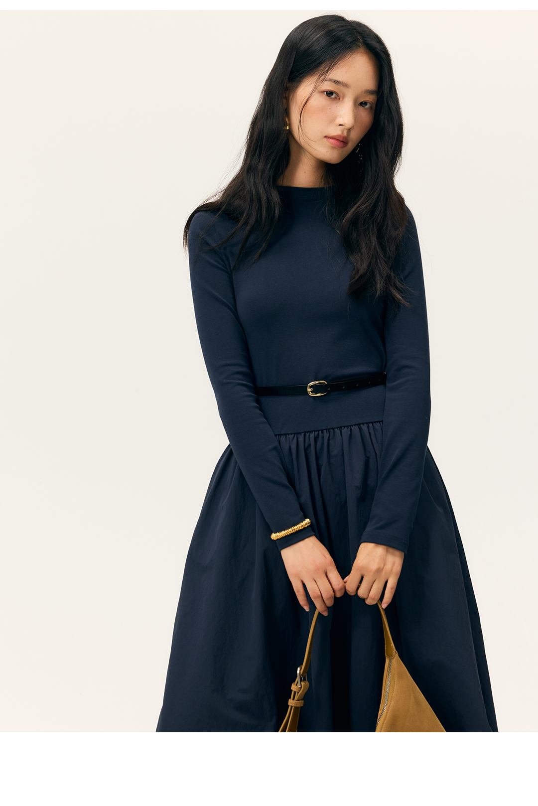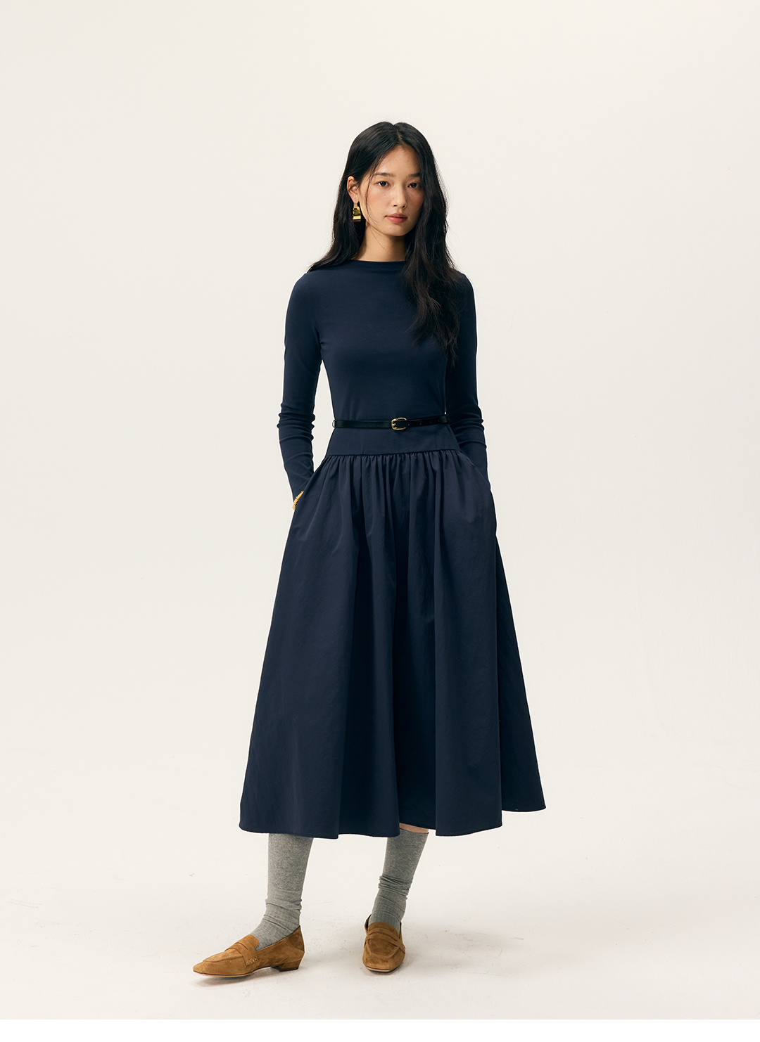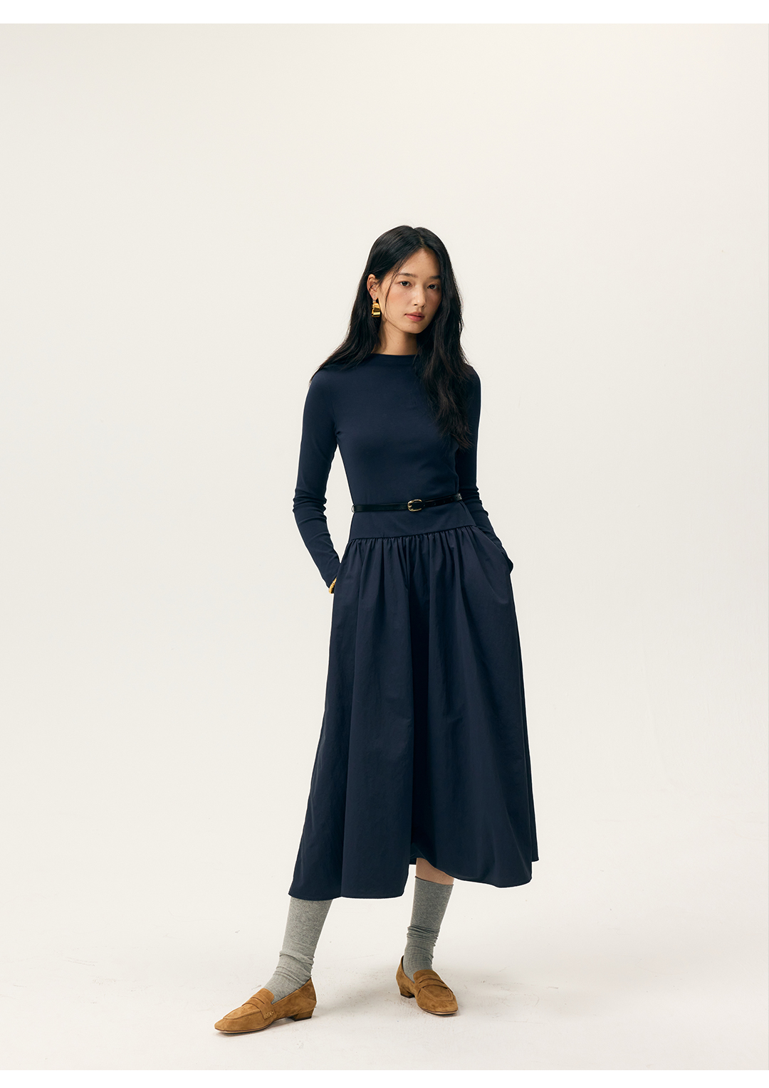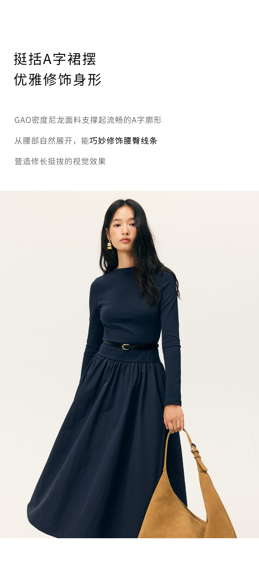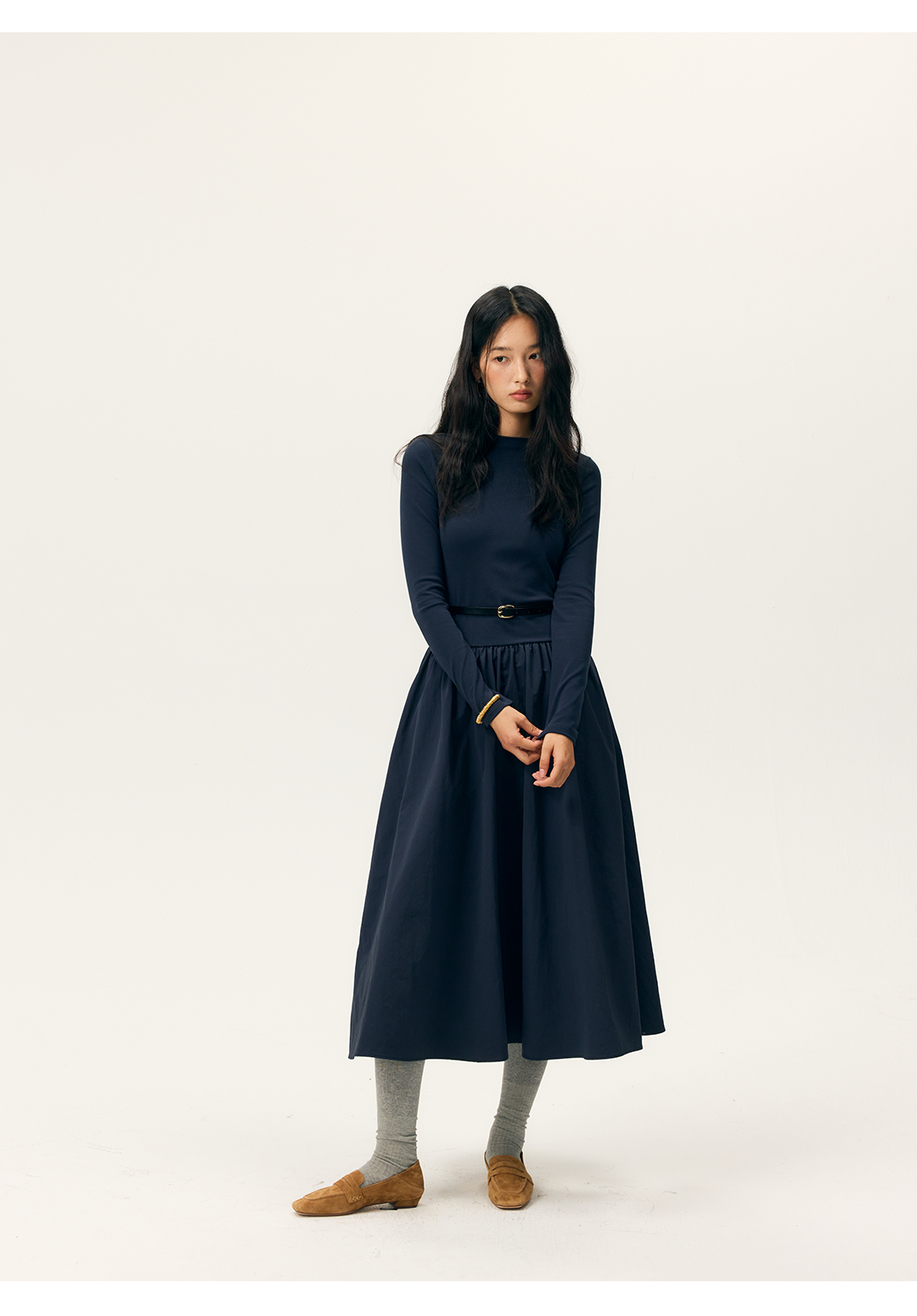 HeyDress拼接A摆长款连衣裙