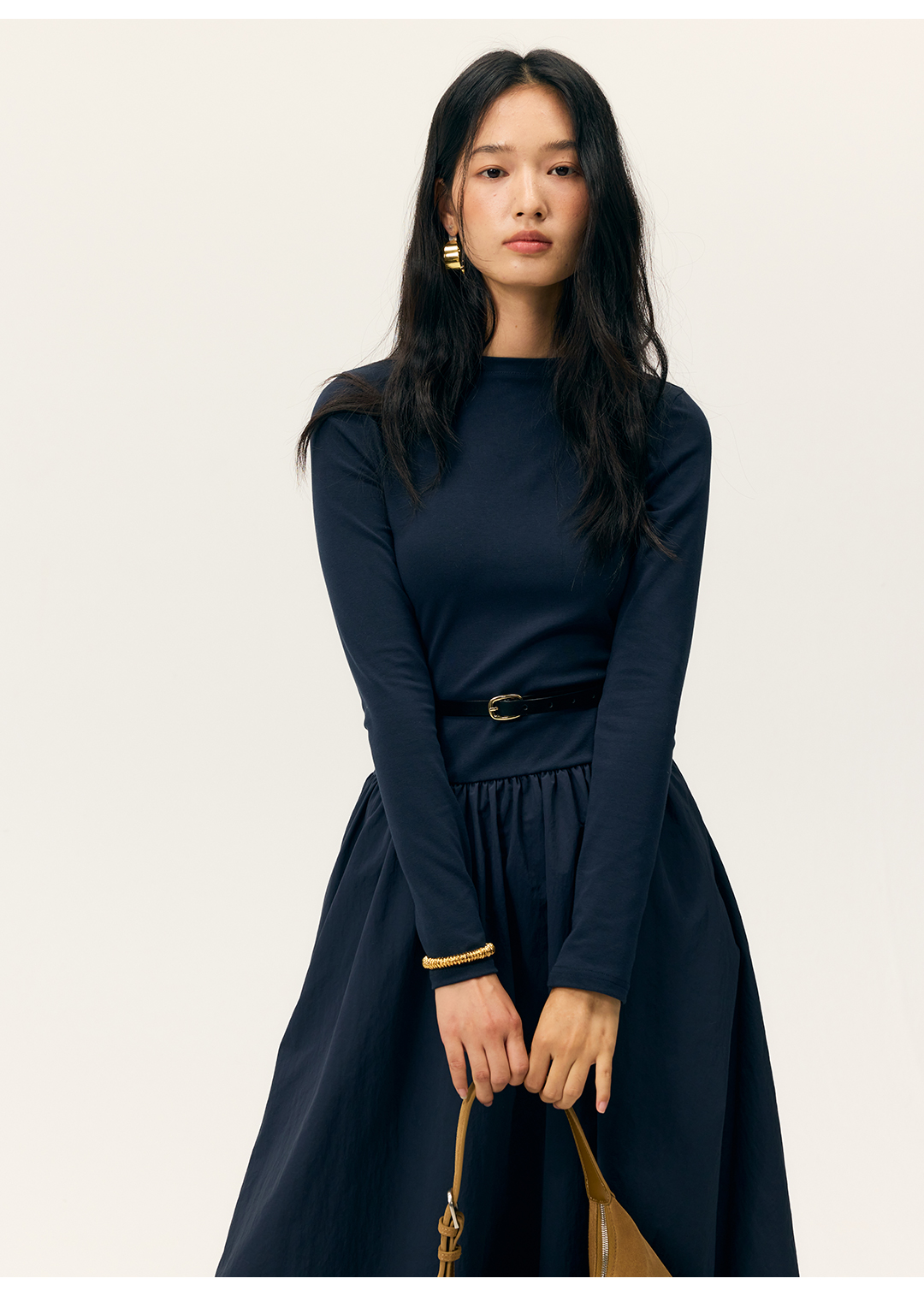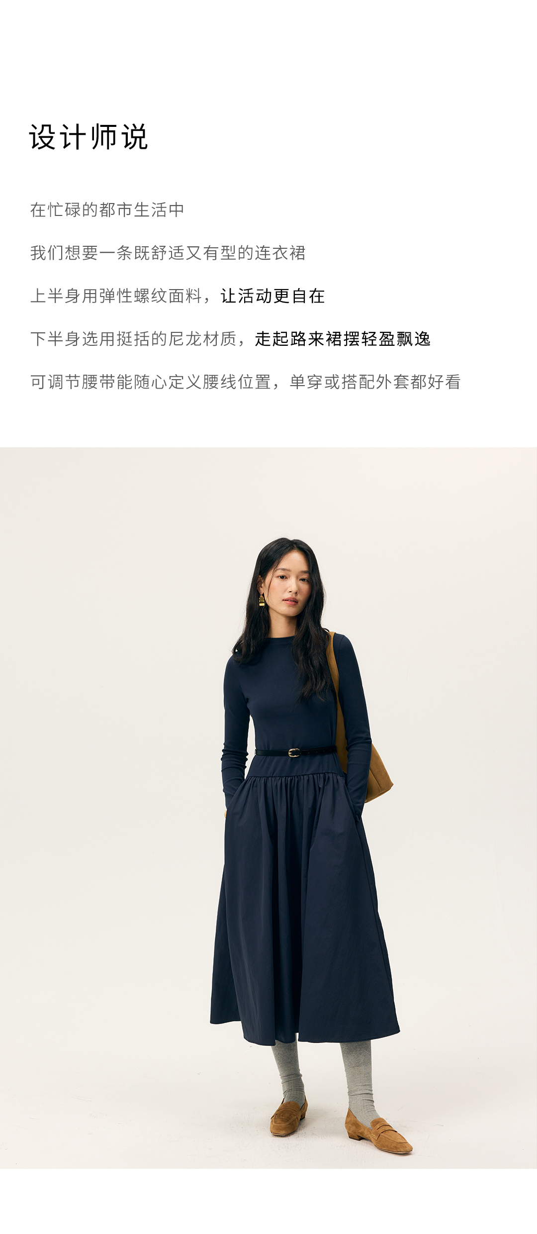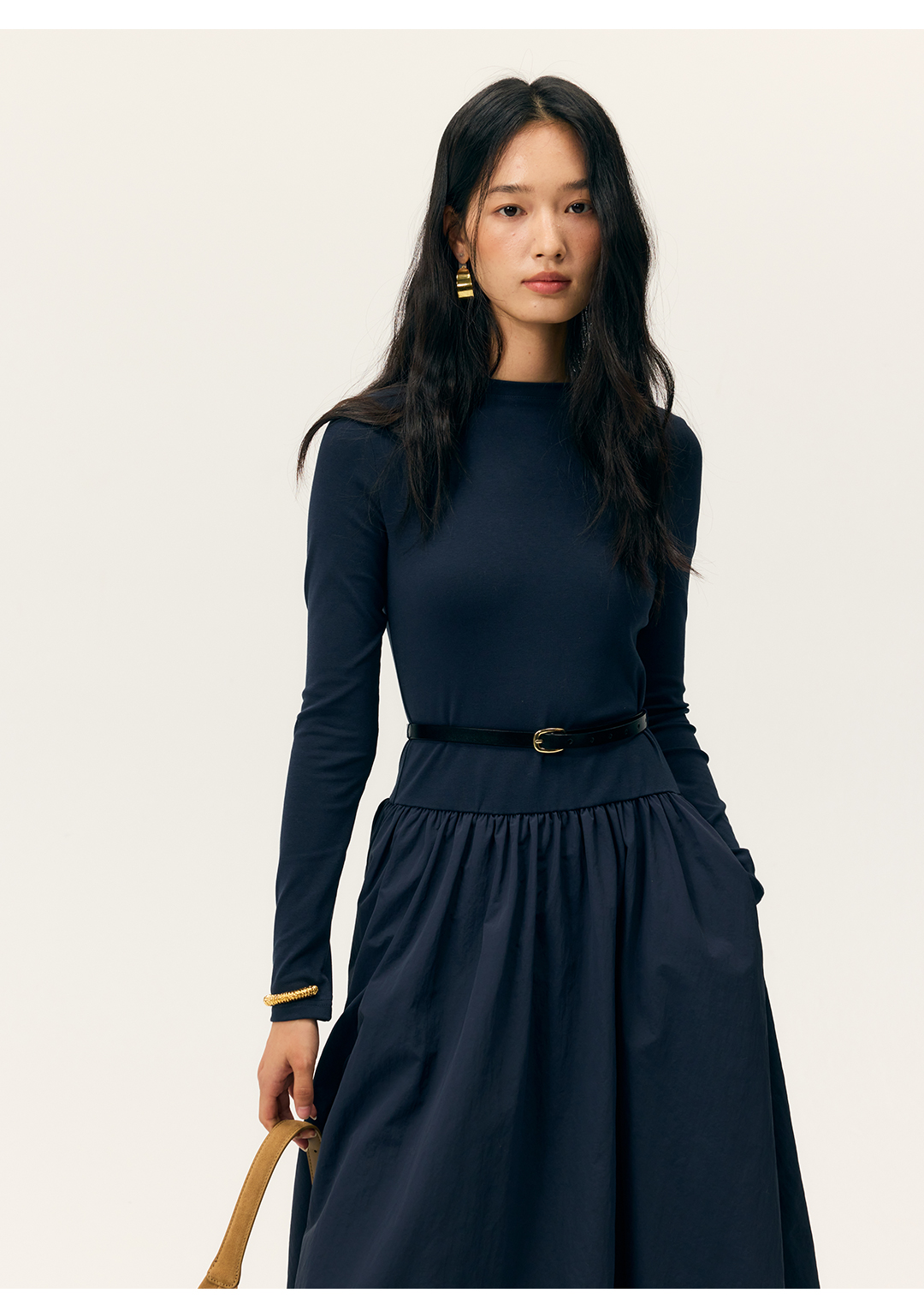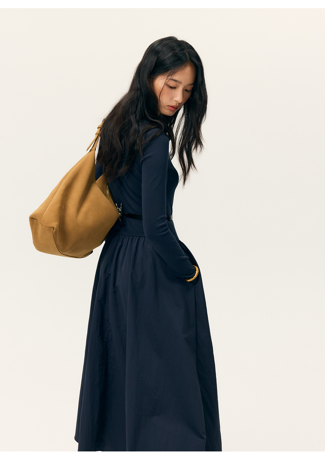 HeyDress拼接A摆长款连衣裙