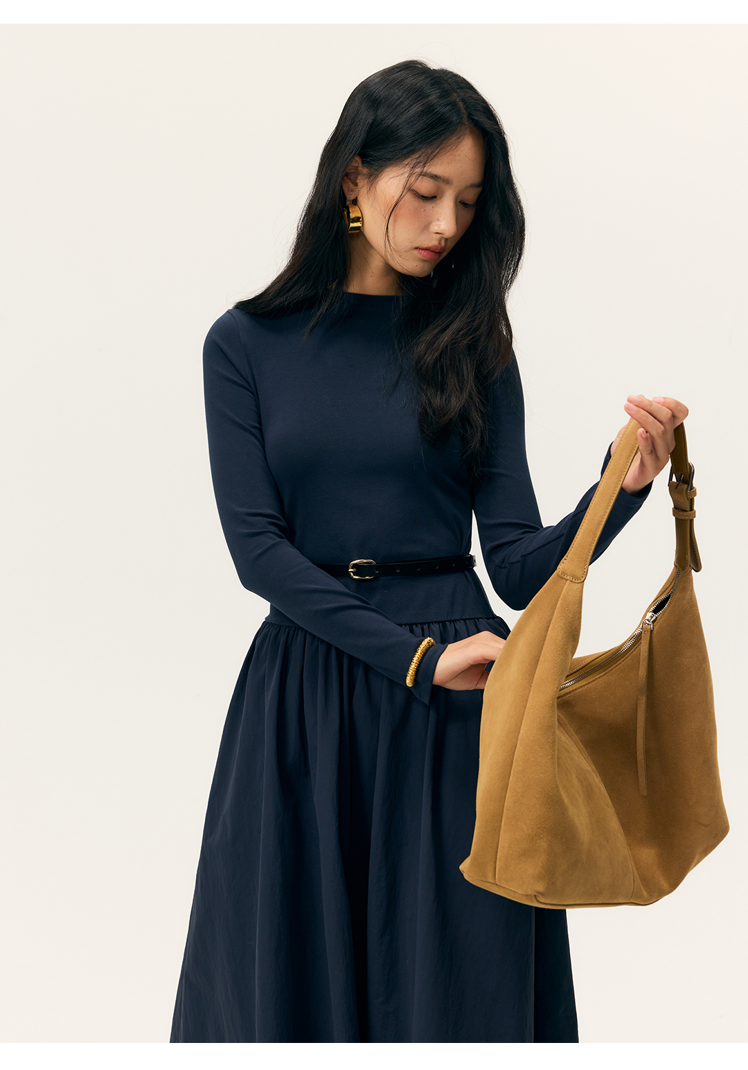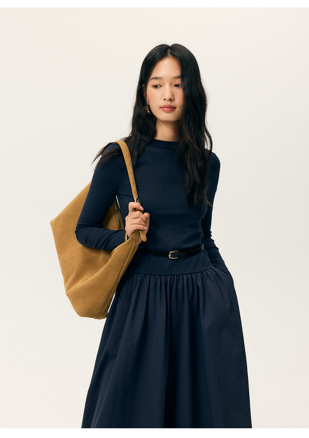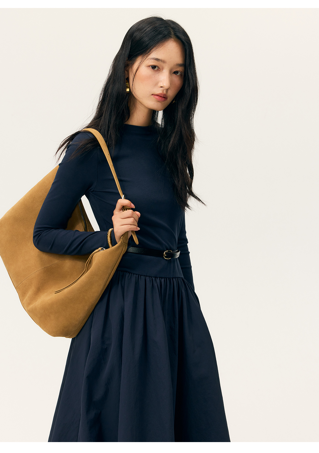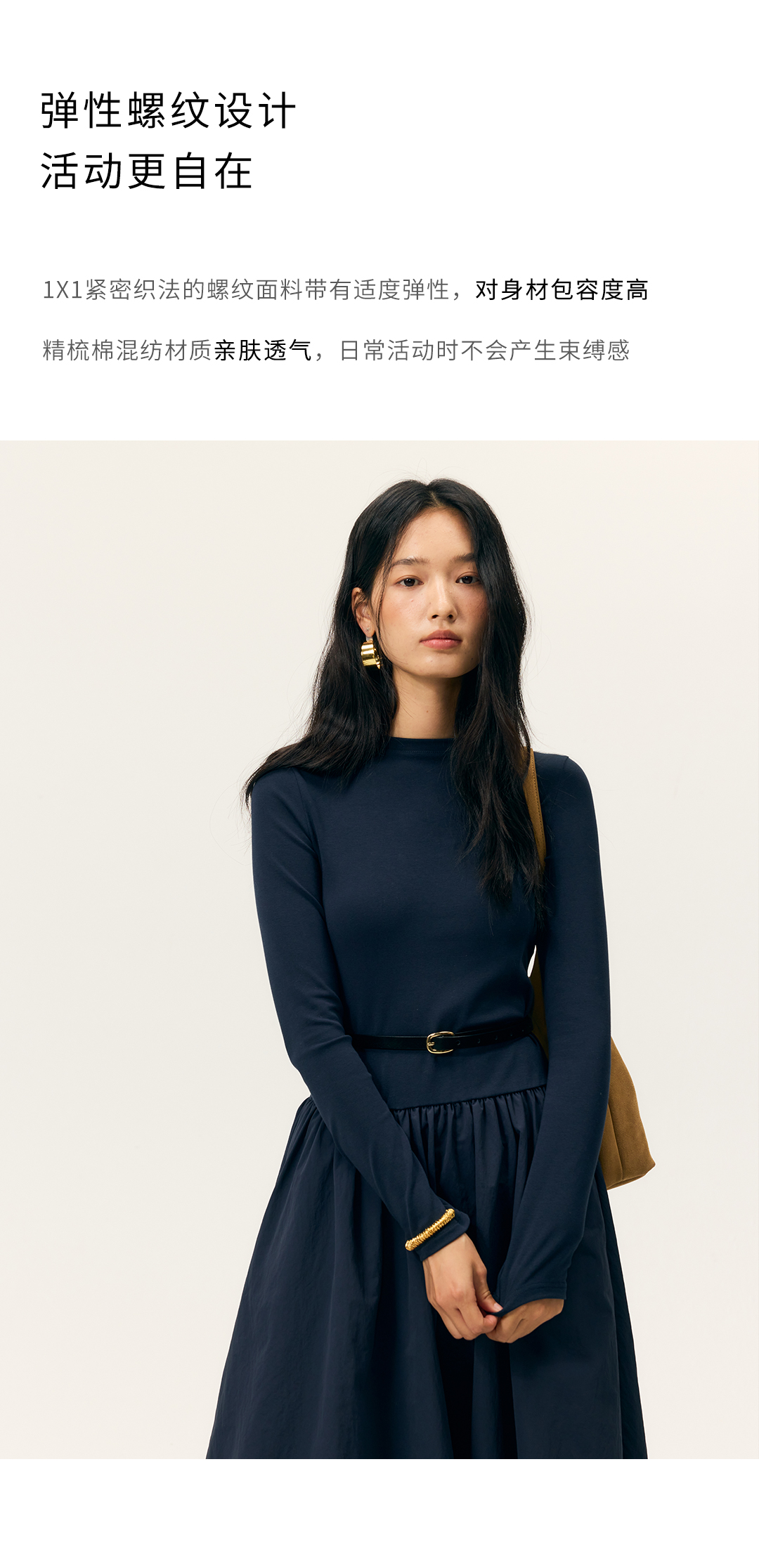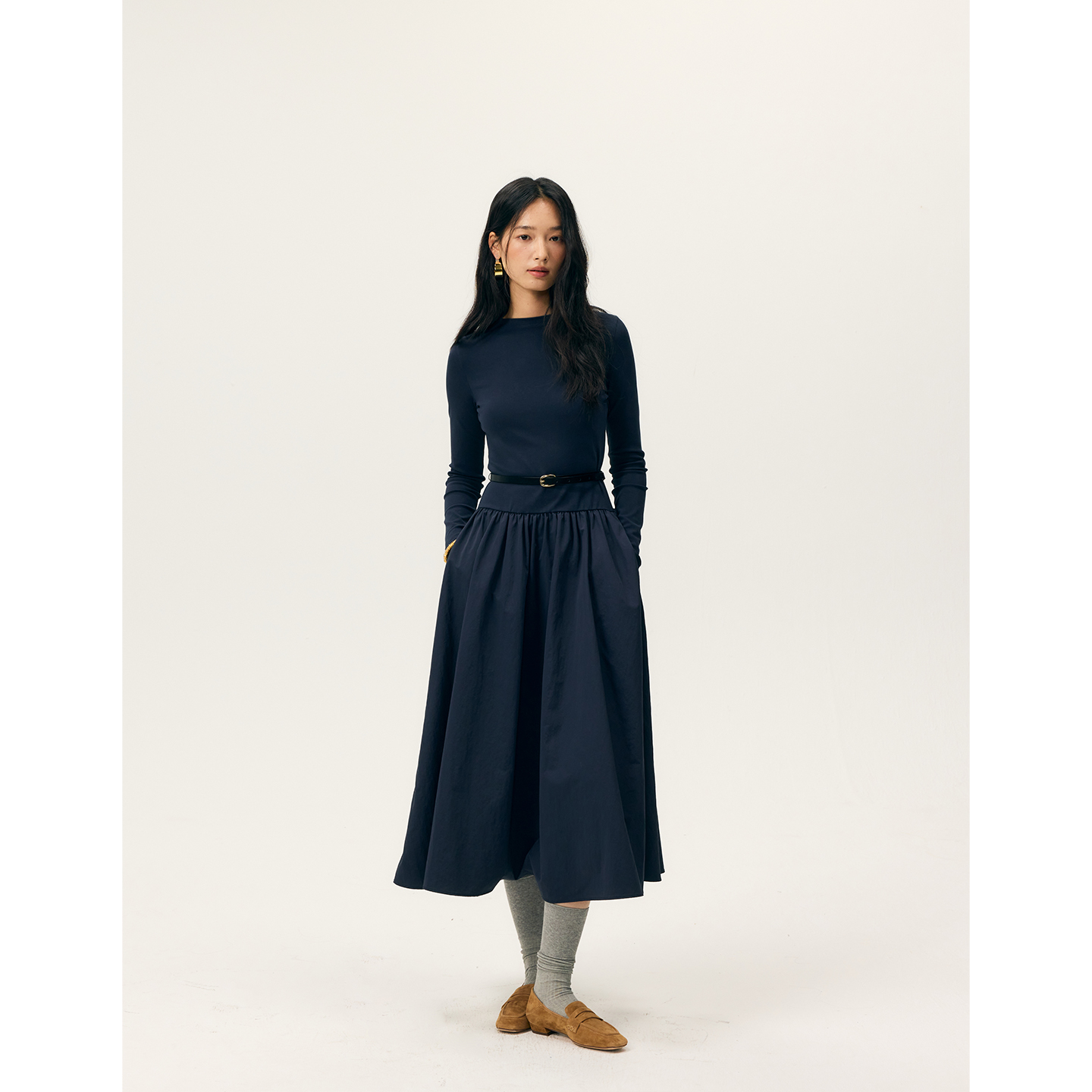 HeyDress拼接A摆长款连衣裙
