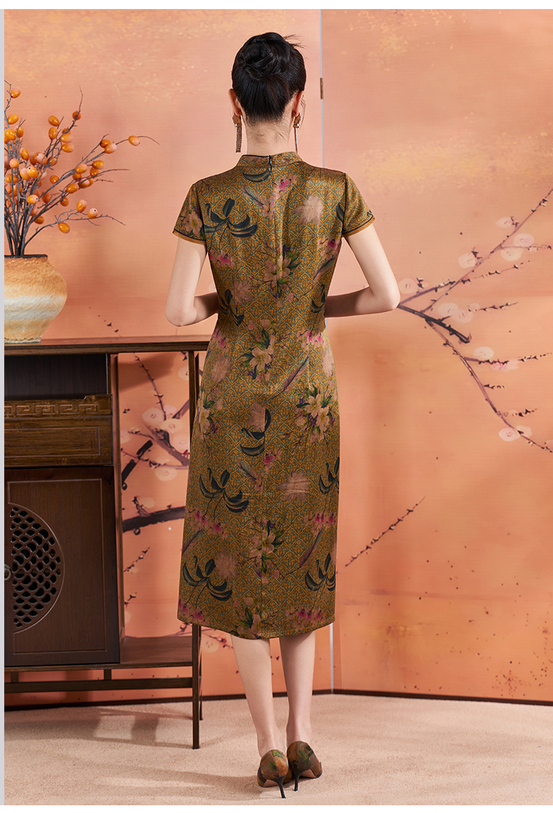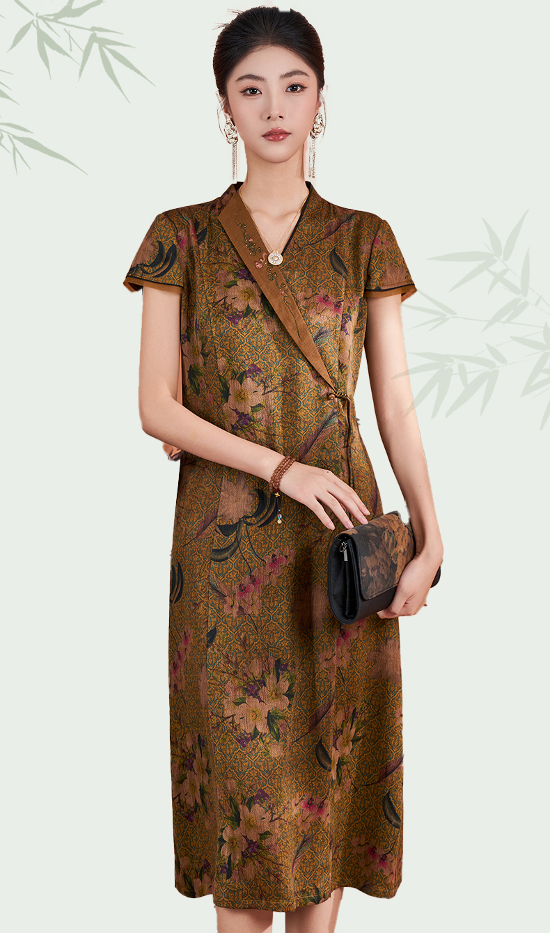 【東兰梨花图】【香云纱】乔万尼中式大气端庄收腰真丝连衣裙ED2E540