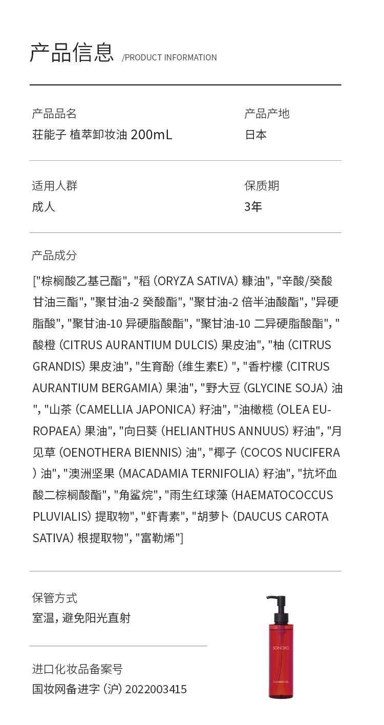 日本进口 SONOKO 荘能子 植萃卸妆油 200mL 新升级大容量