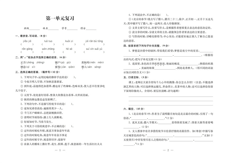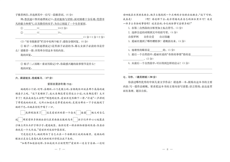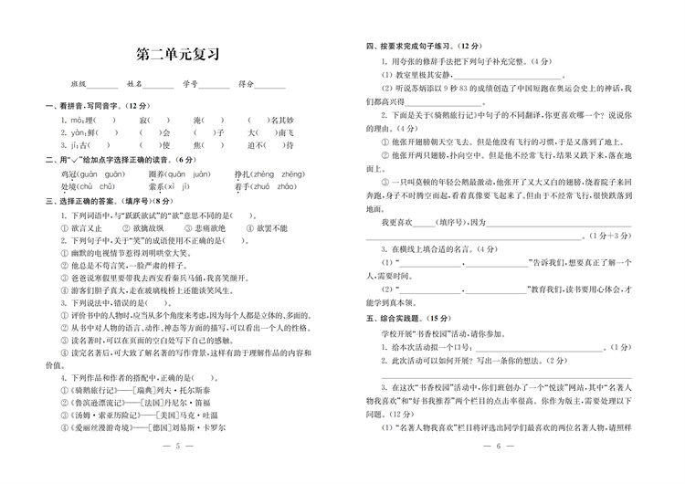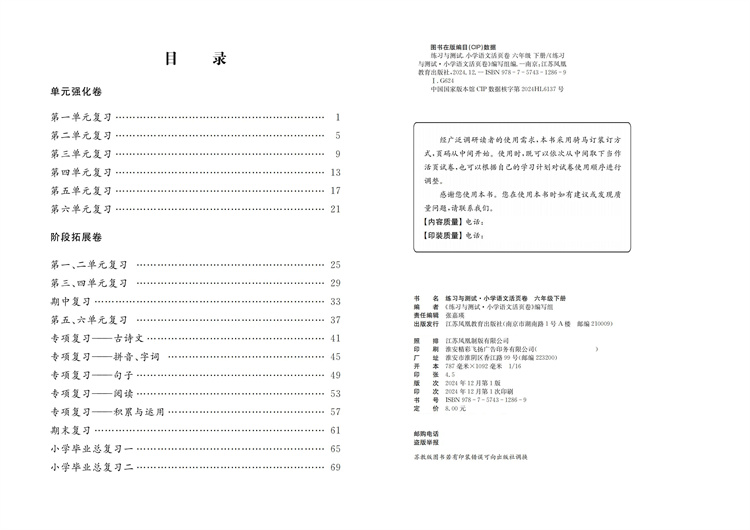 2025春 练习与测试小学语文活页卷六年级下册配人教版语文课本 小学教辅 同步试卷测试卷 6下江苏凤凰教育出版社