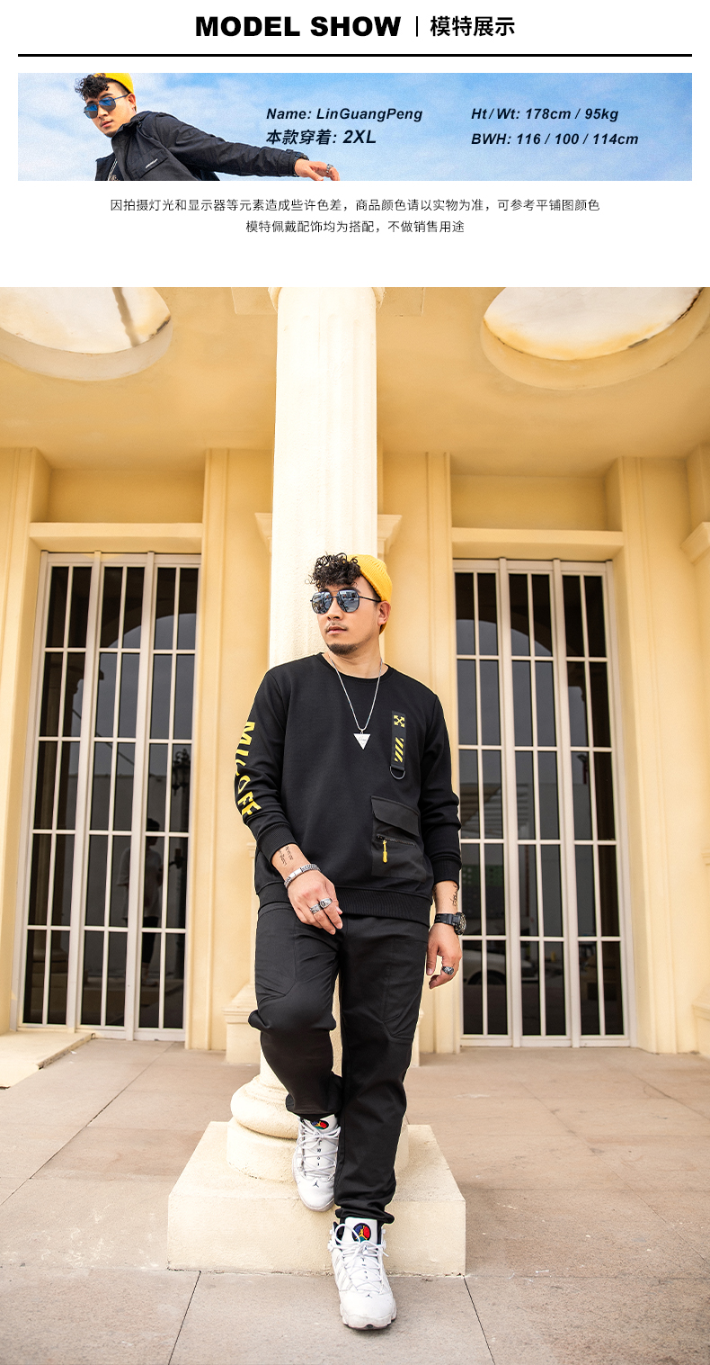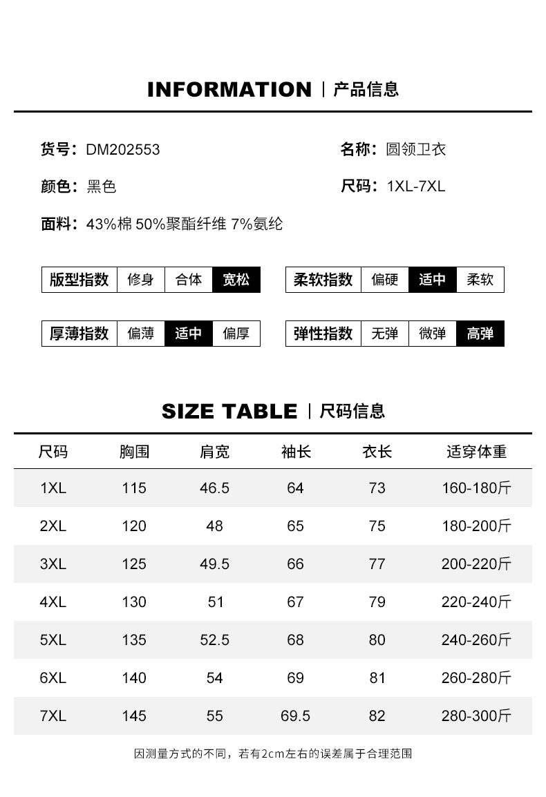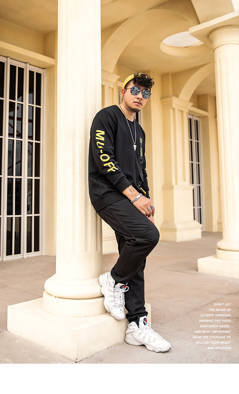 【新款DMH】大依优型大码男装圆领卫衣简约宽松上衣男士胖子打底衫300斤