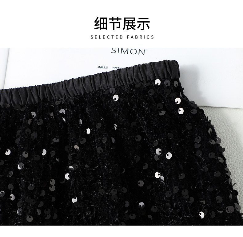 丁摩 新品色亮片半身裙女中长款春秋新款高腰丝绒a字裙半裙包臀裙5ZF-D887