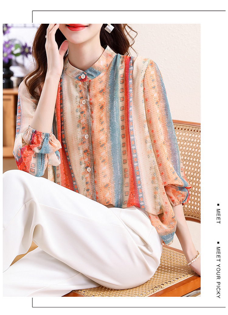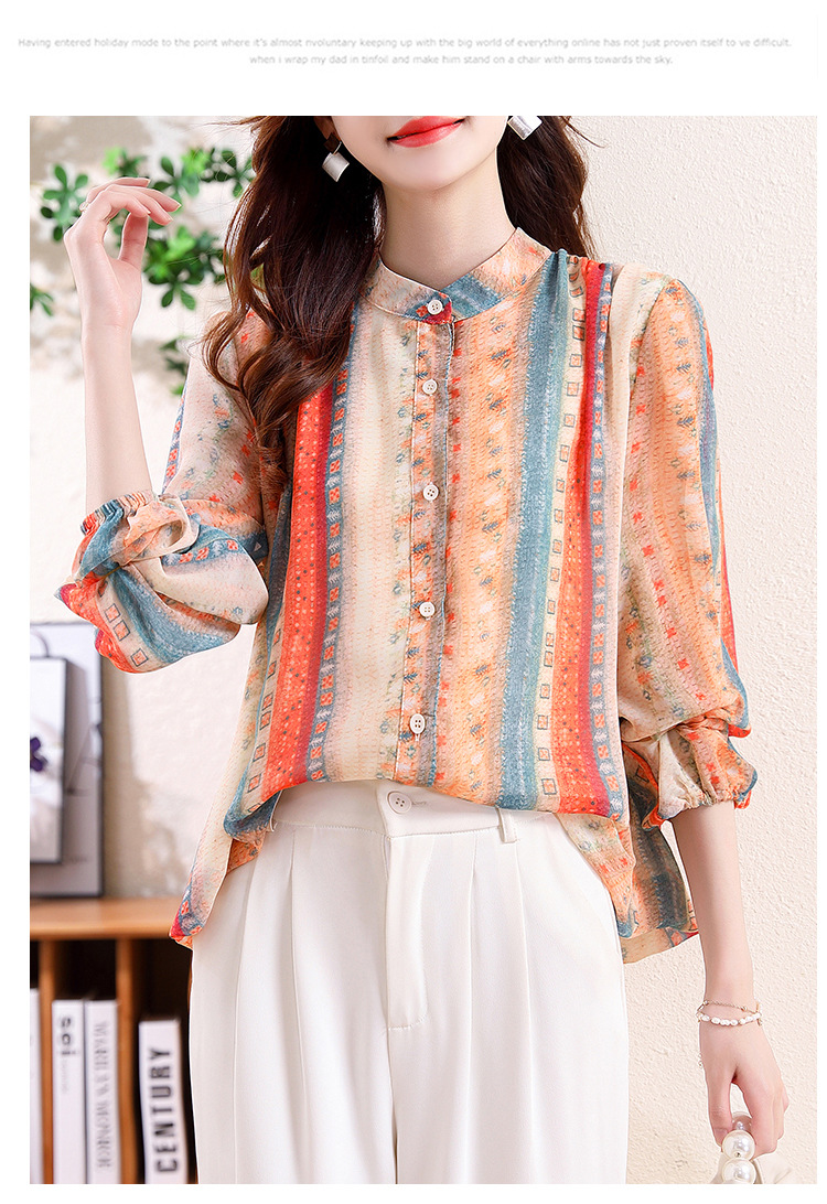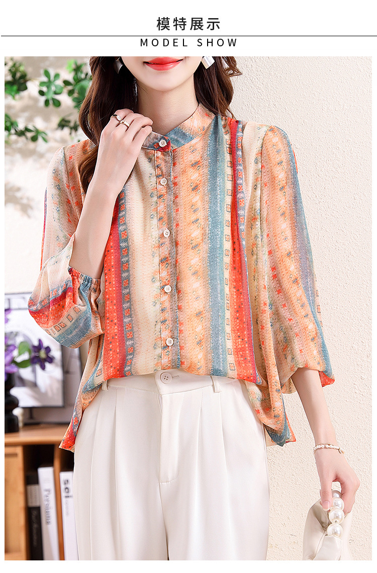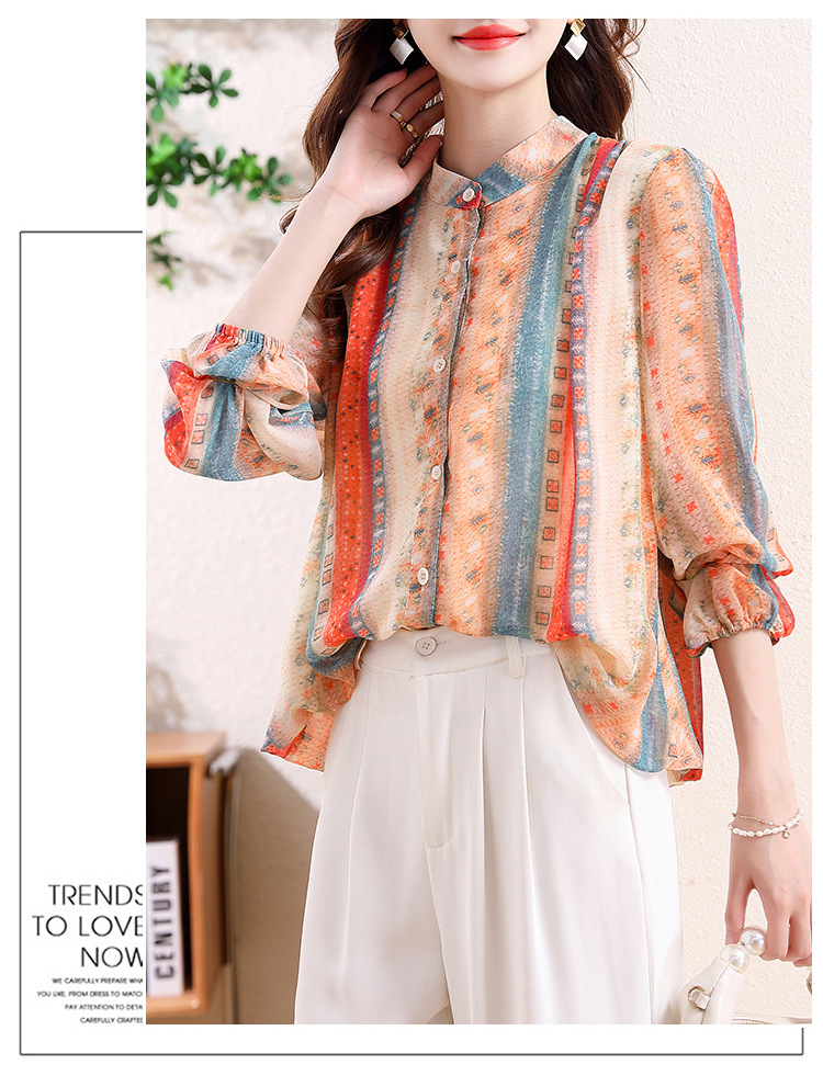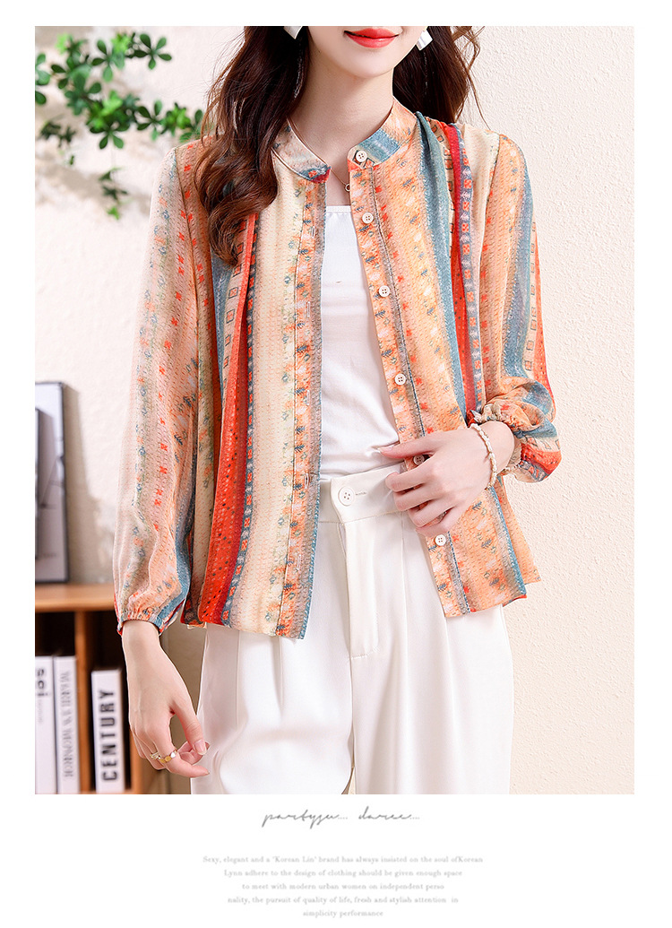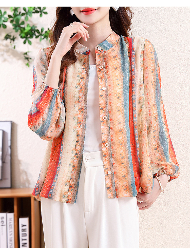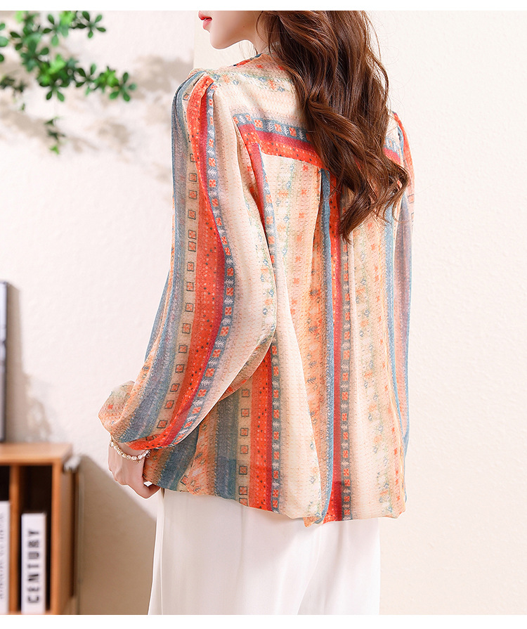 云锦丝彩条防晒洋气薄款开衫外搭减龄显瘦衬衣K