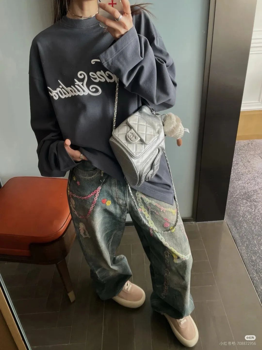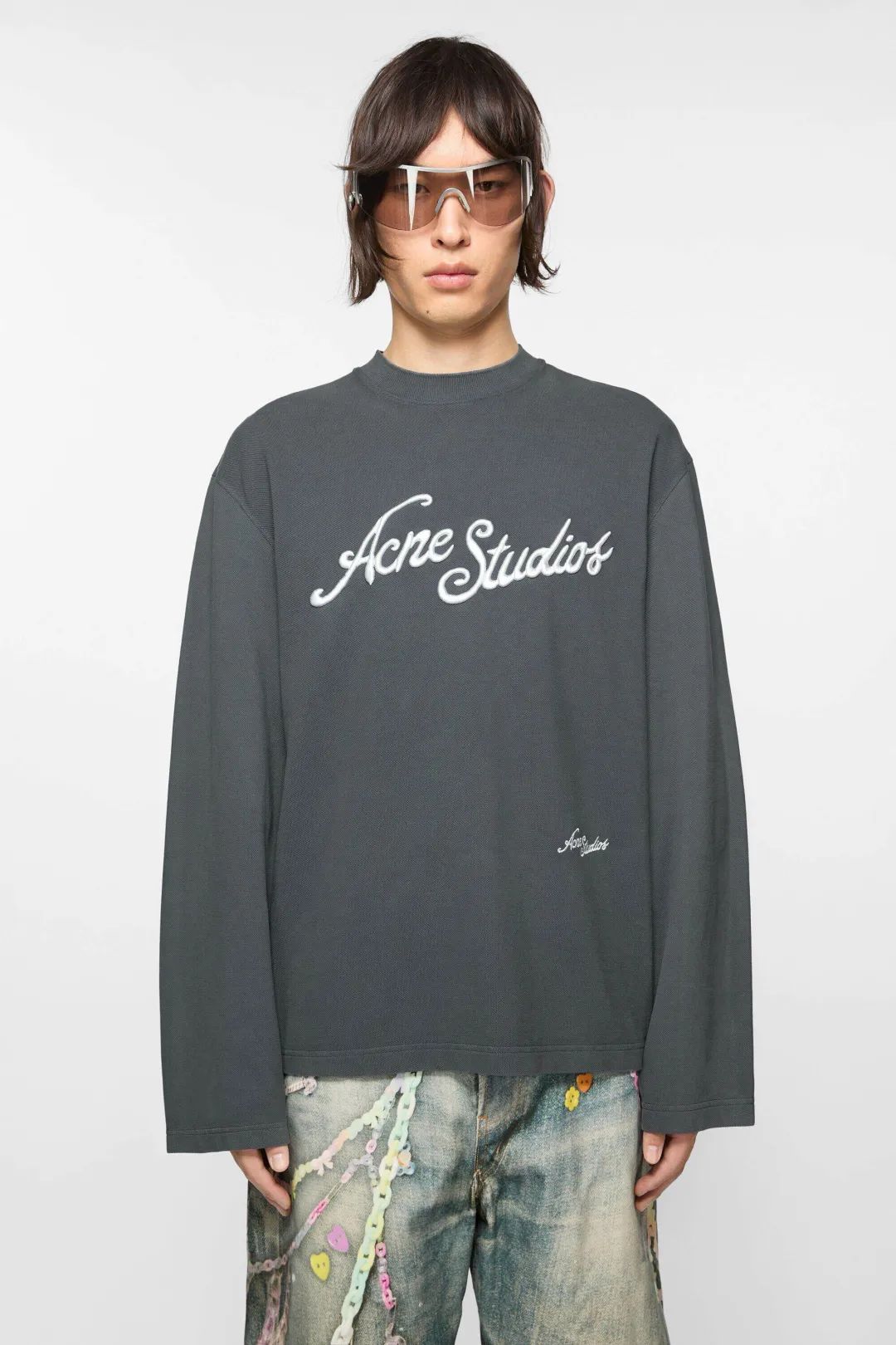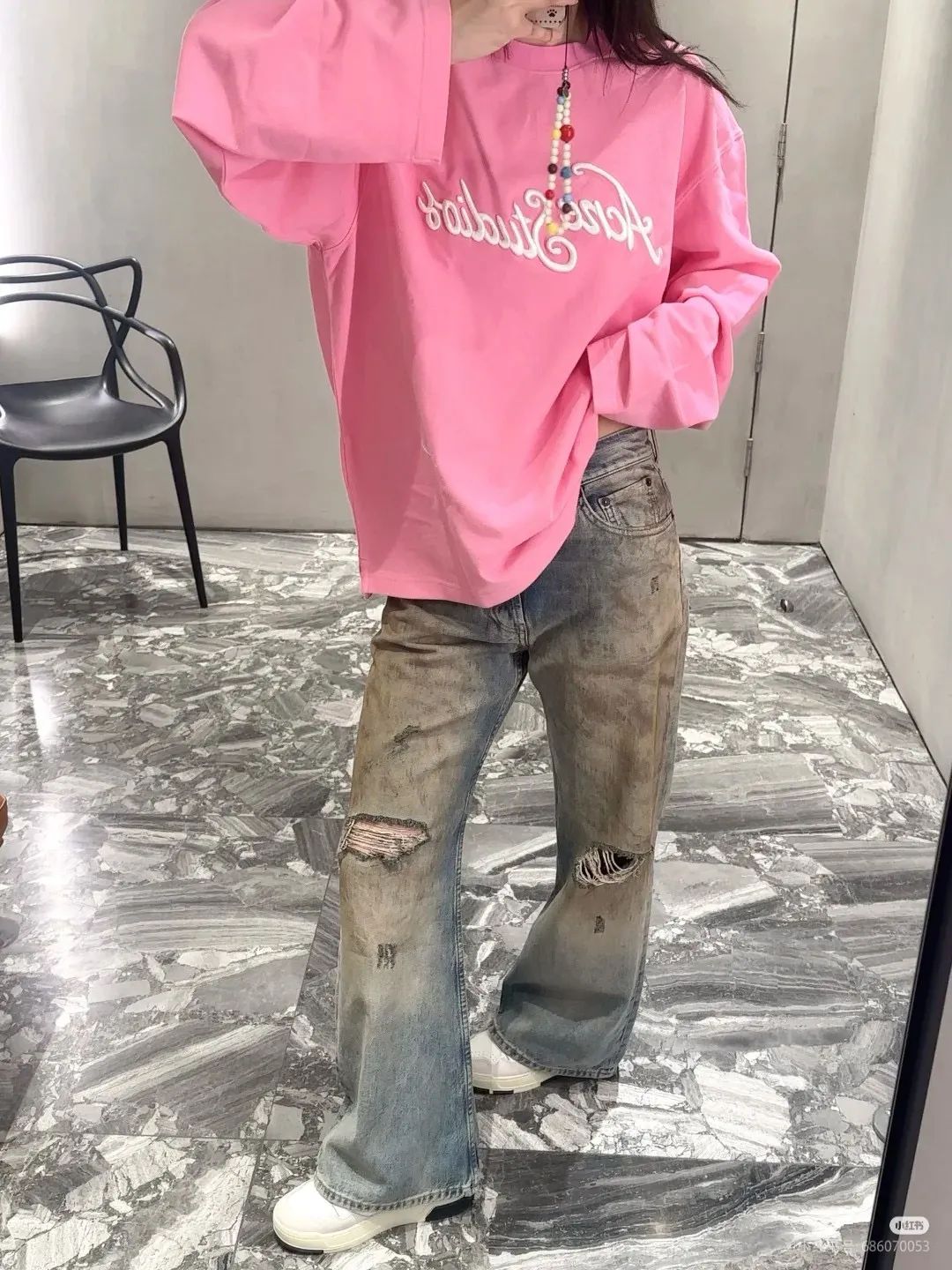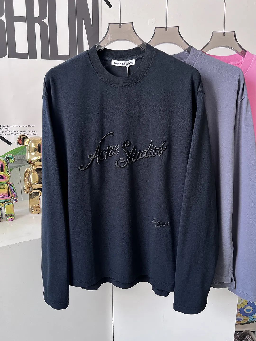 AS家成衣染色水洗做旧刺绣珠地棉舒适圆领长袖T恤
