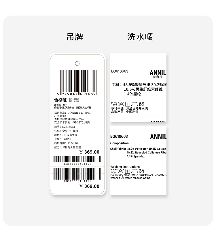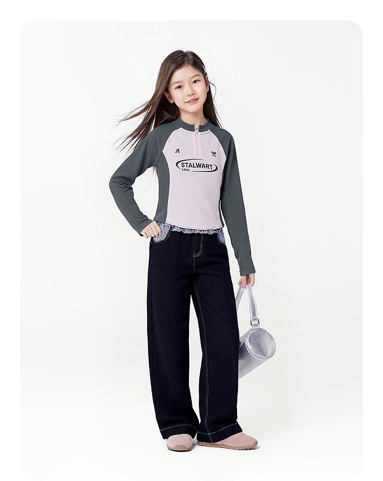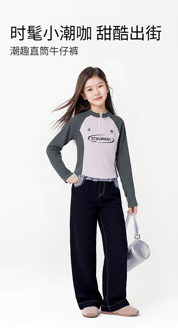 女童全腰牛仔单裤春季新款安奈儿童装EG616663