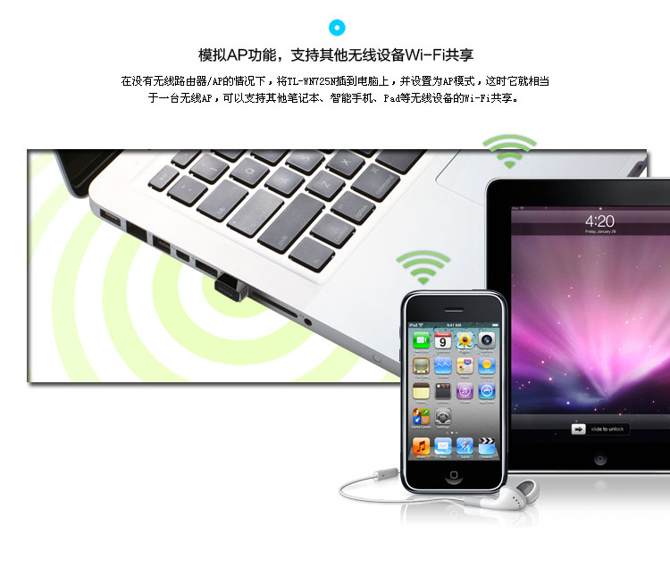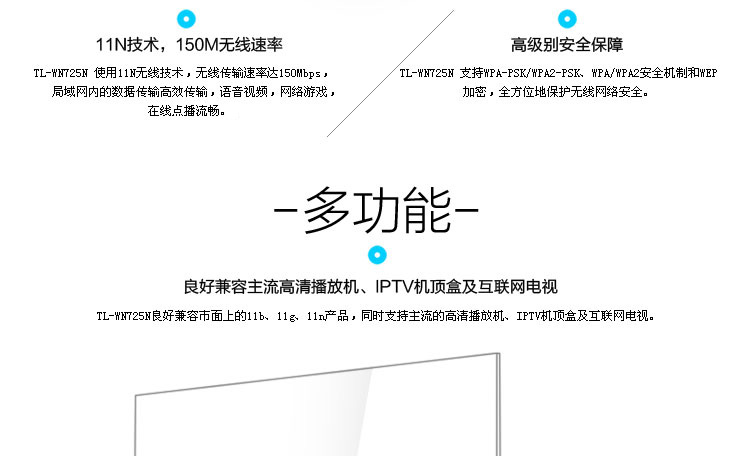 P-LINK TL-WN725N免驱版 迷你USB无线网卡 智能自动安装随身wifi接收器