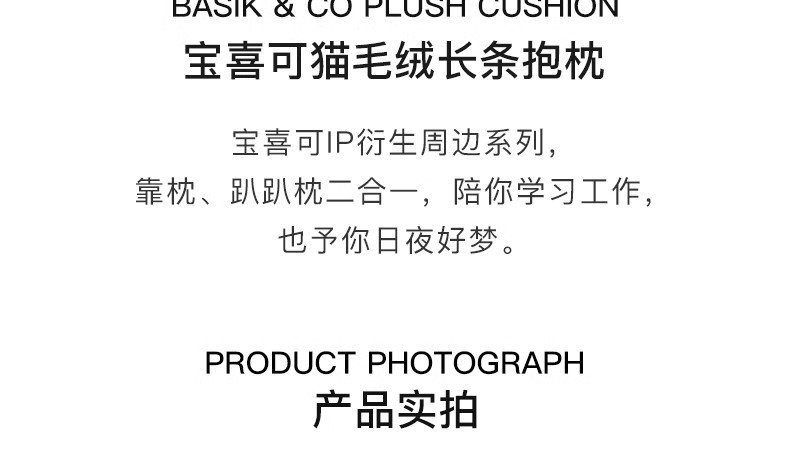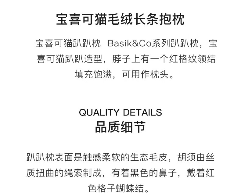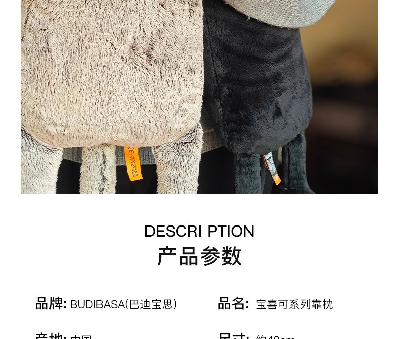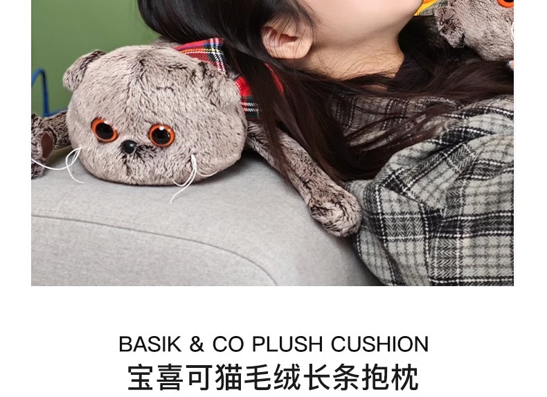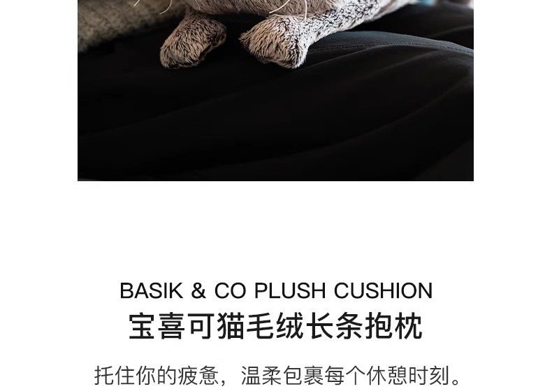 BUDIBASA巴迪宝思宝喜可猫毛绒长条抱枕,40cm