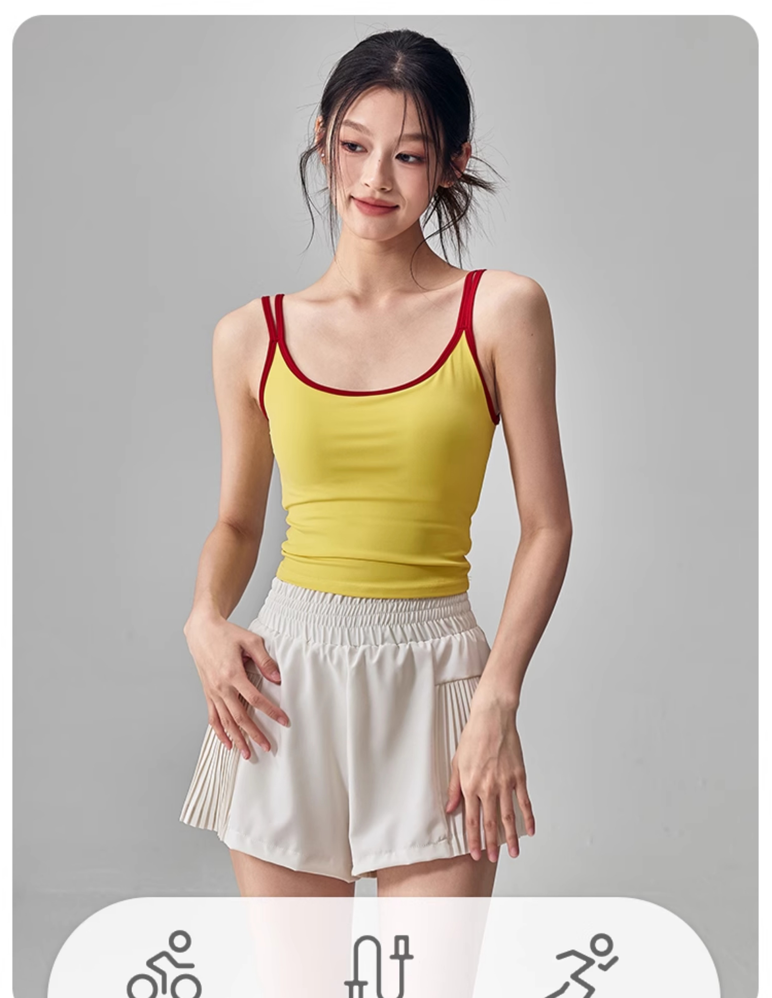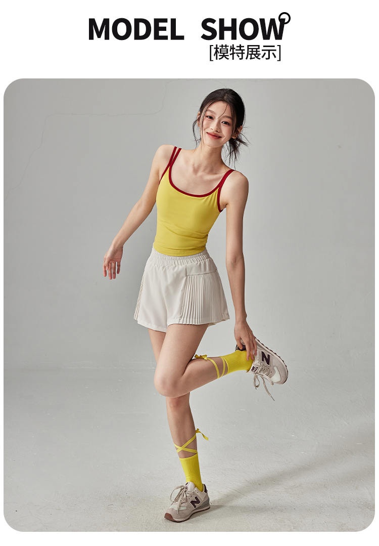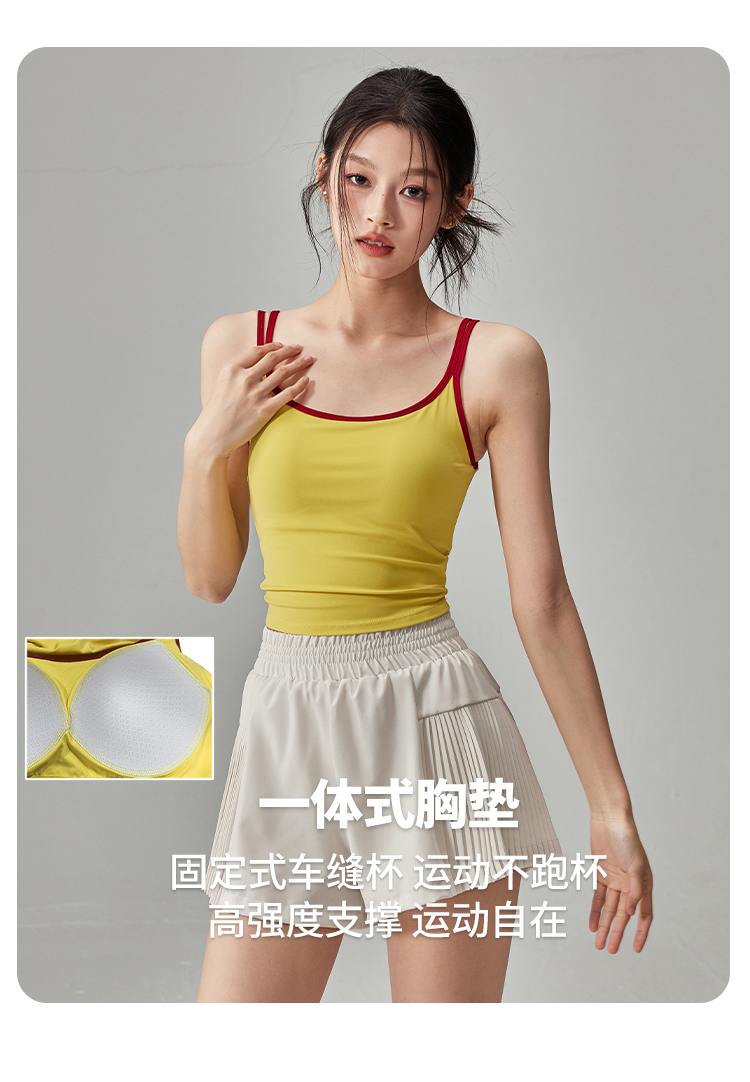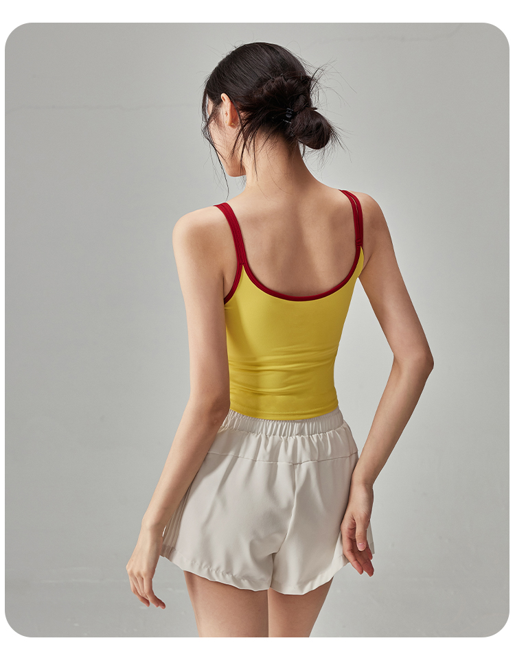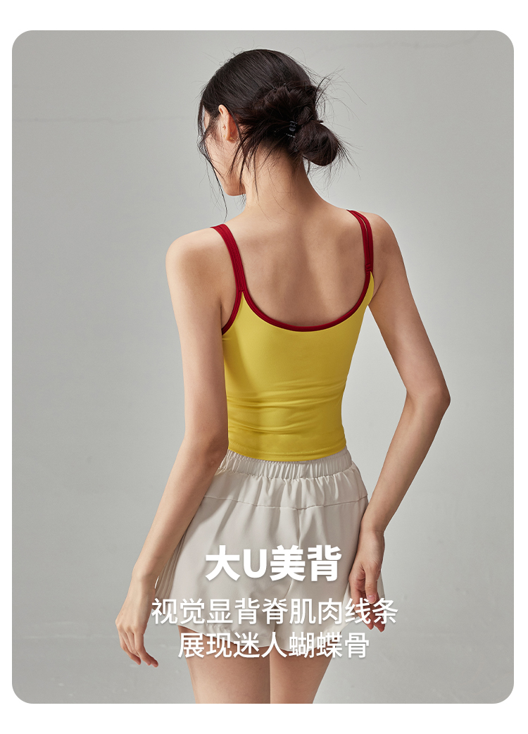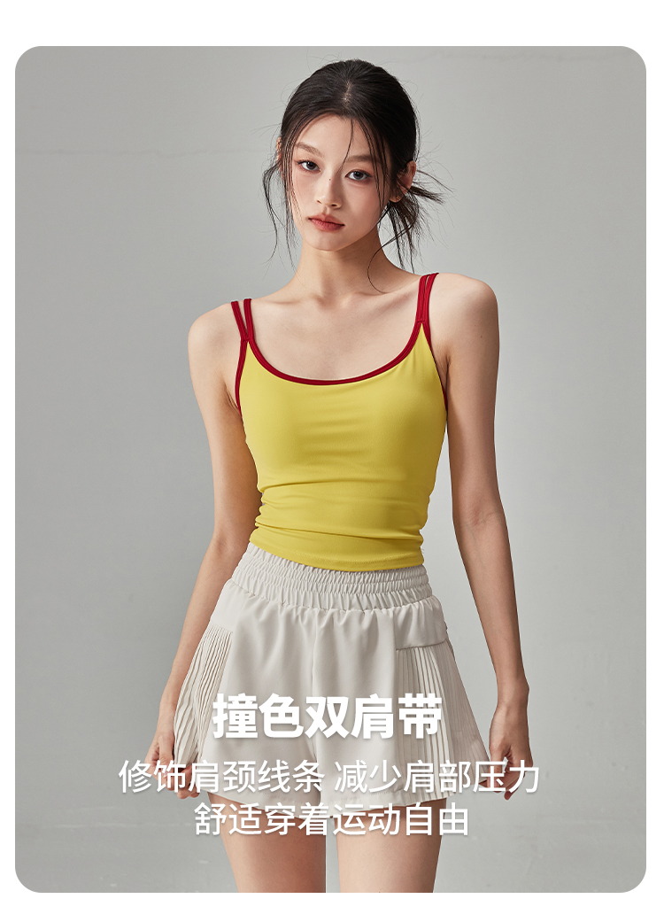 跃牌【海听系列】NULS纯欲辣妹撞色双肩吊带背心女固定杯运动瑜伽服女XC63