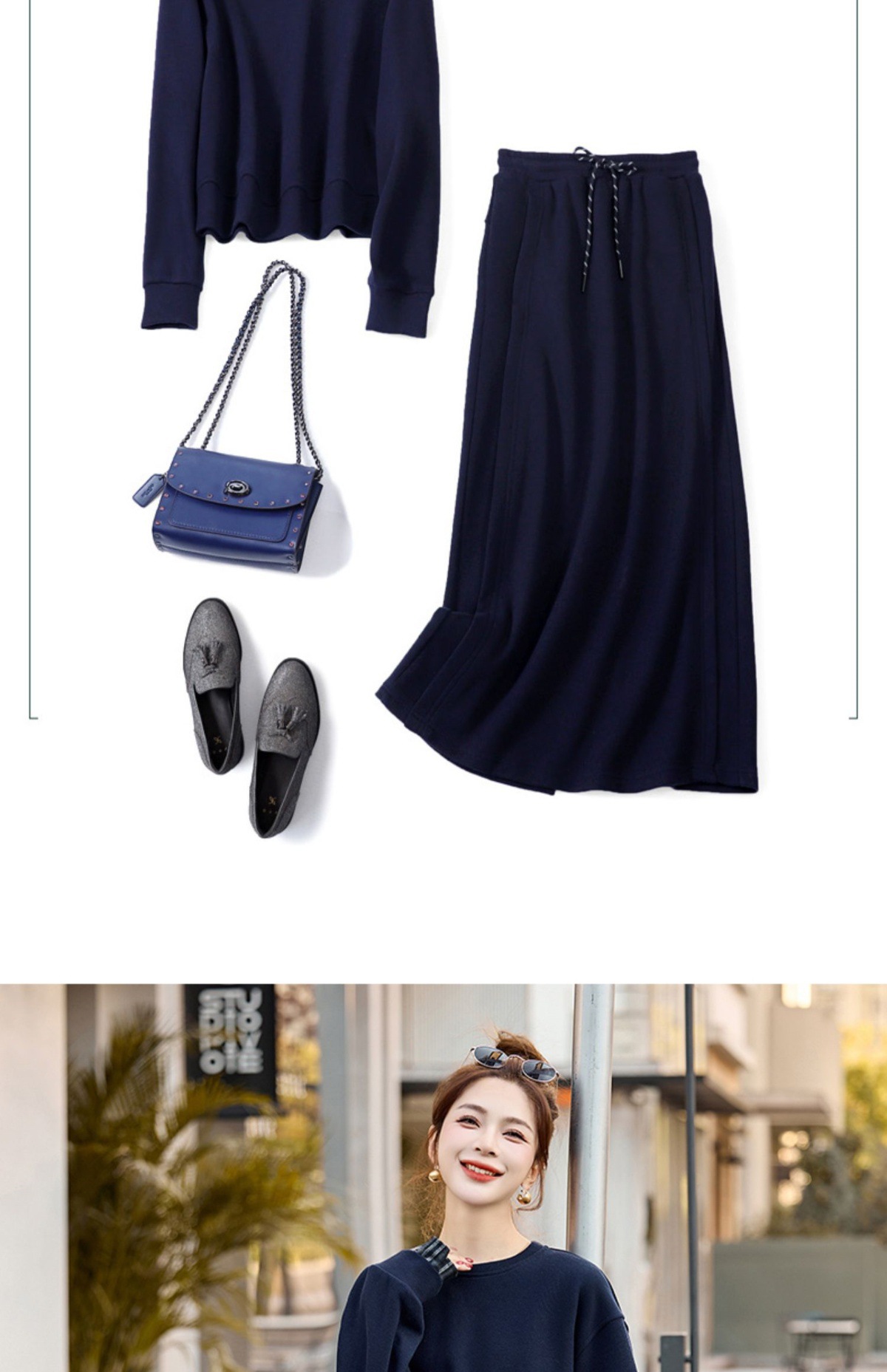 气质时尚套装,休闲洋气设计感卫衣半身裙三件套ZYF2507