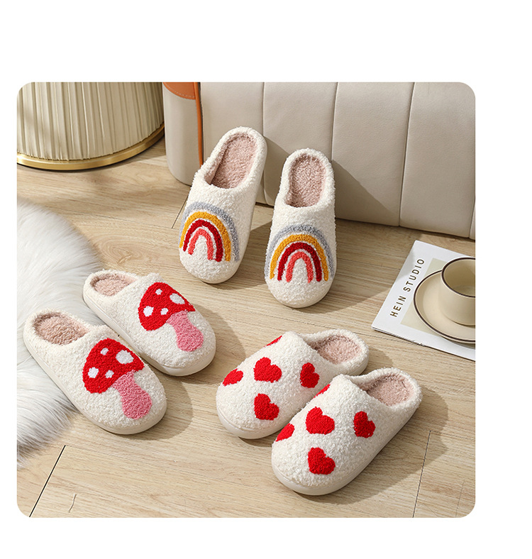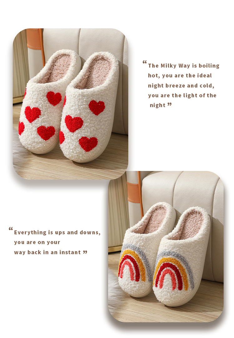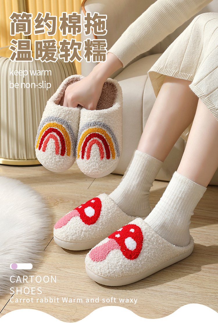 爆款冬季笑脸桃心棉拖鞋室内家居彩虹毛绒保暖拖鞋FJ