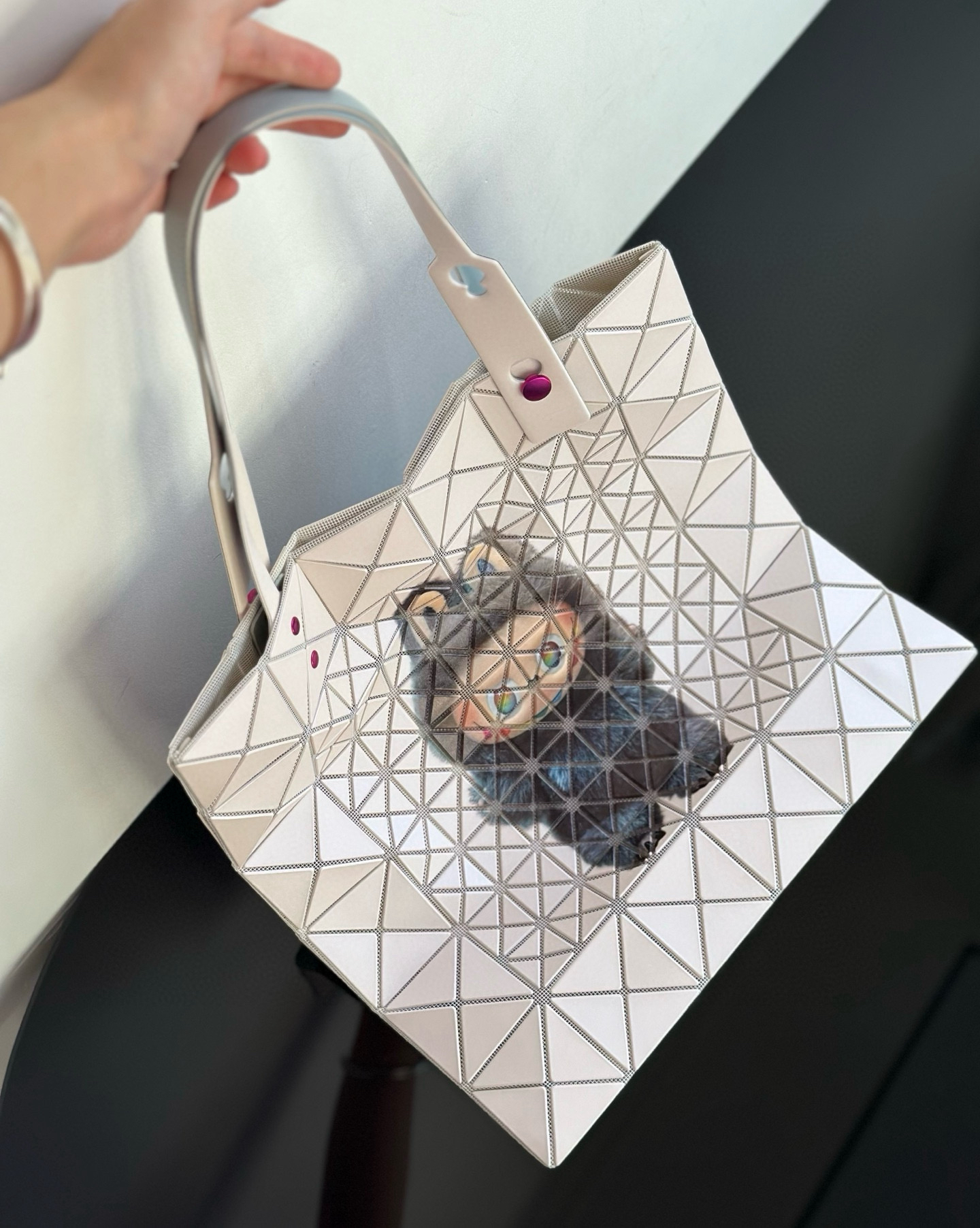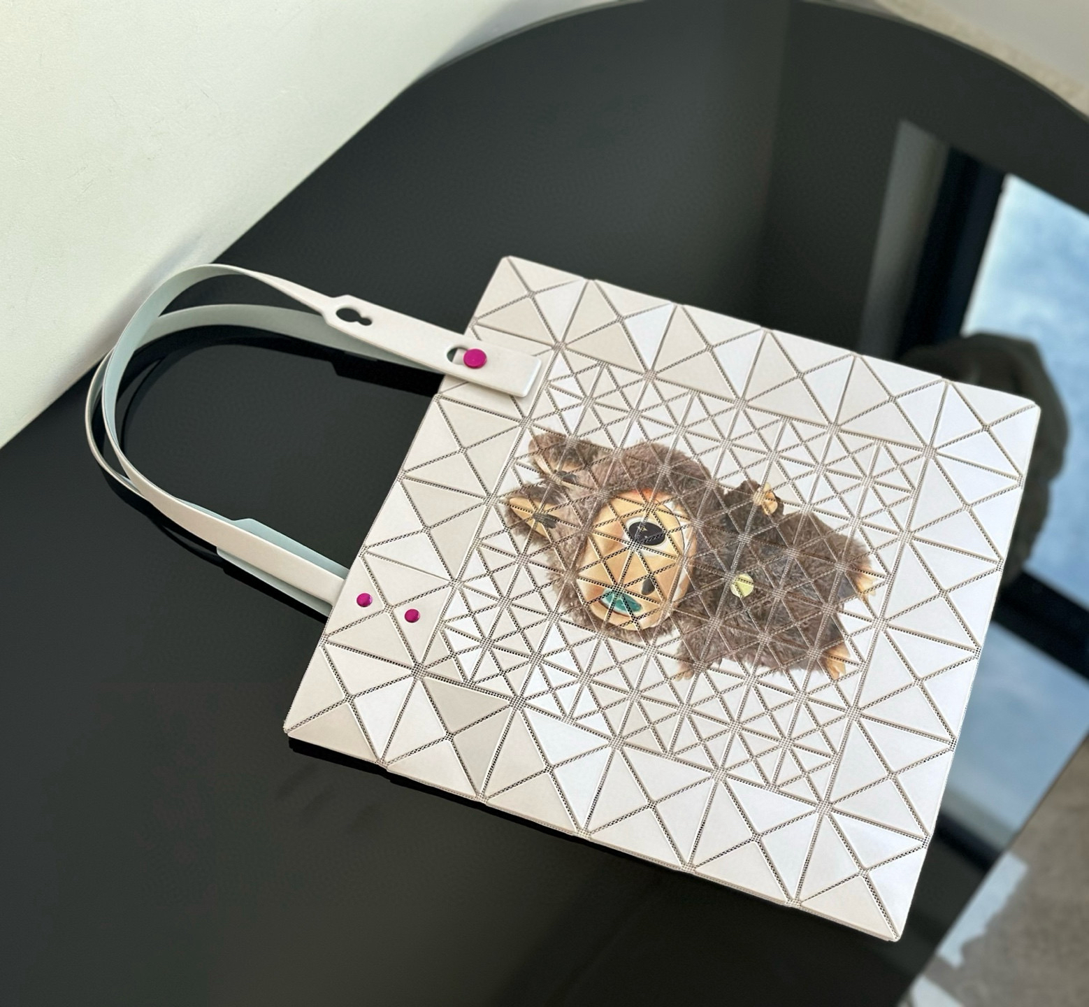 托特包采用彩印涂墨的设计,融入 公仔图案俏皮可爱其外观极具图形效果。为夏日增添新奇有趣俏皮色彩,容量大包身轻盈特别适合日常出行。