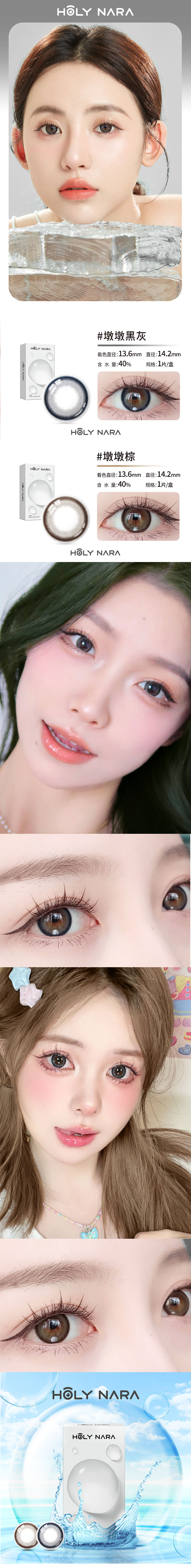 【年抛】Holy Nara 水墩墩灰/棕 直径:14.2mm 含水量40%(年抛1片/盒 不同度数请拍两盒)