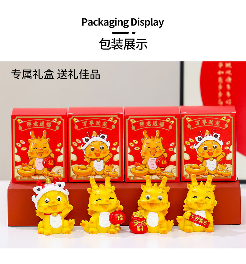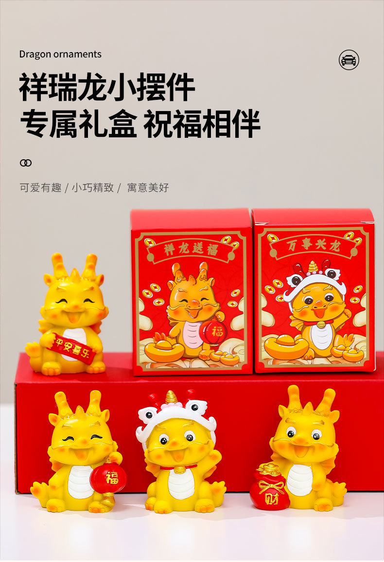 龙年喜庆摆件【新年礼物年会伴手礼可爱龙宝宝公仔摆件】商务礼品套装