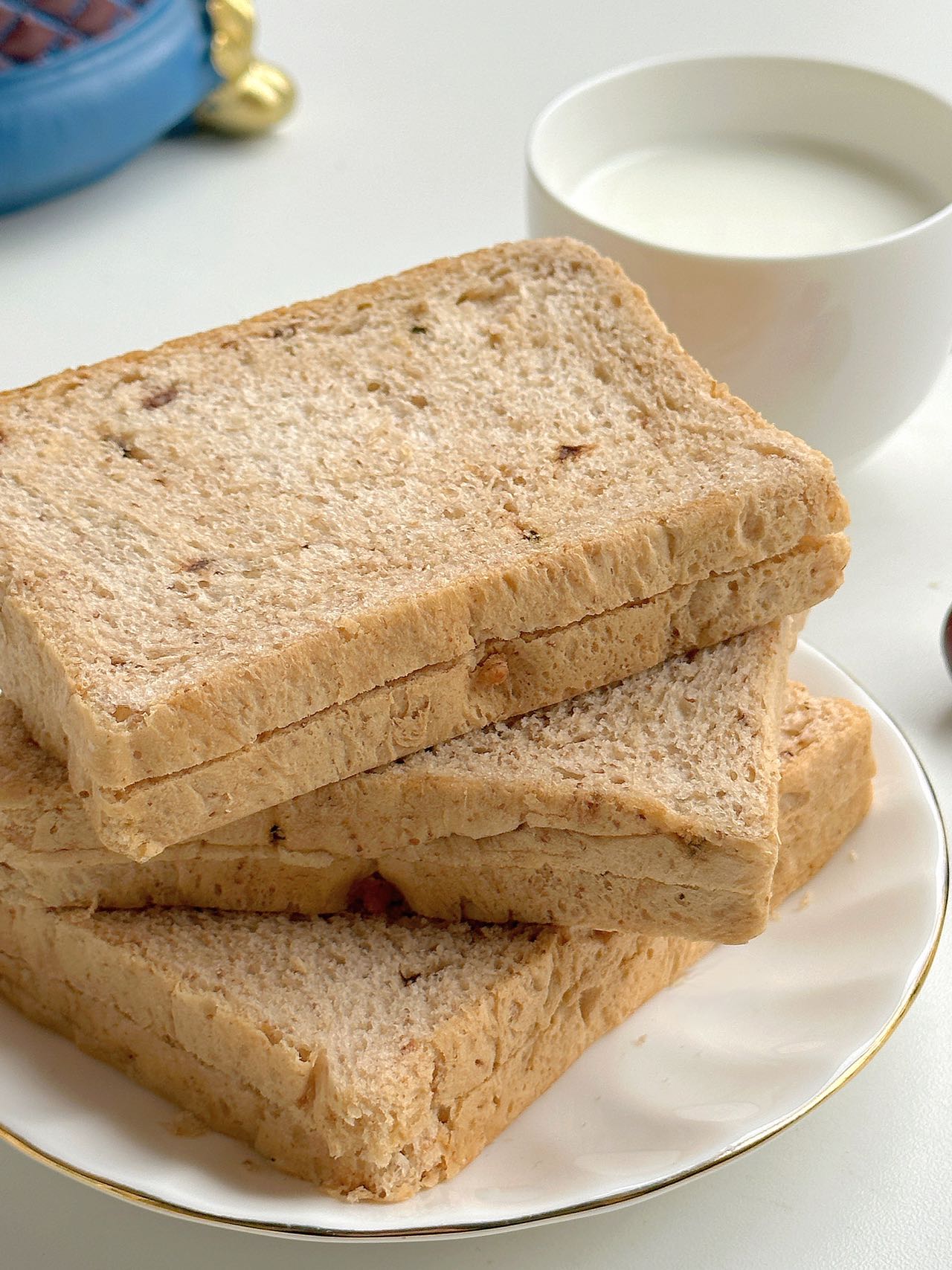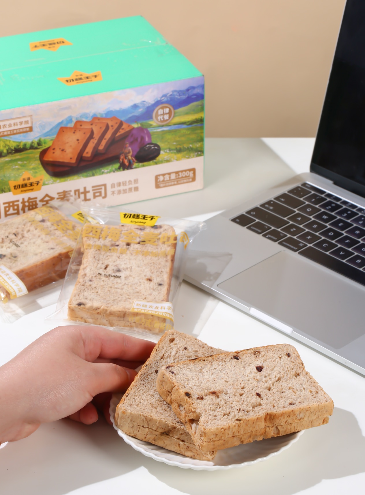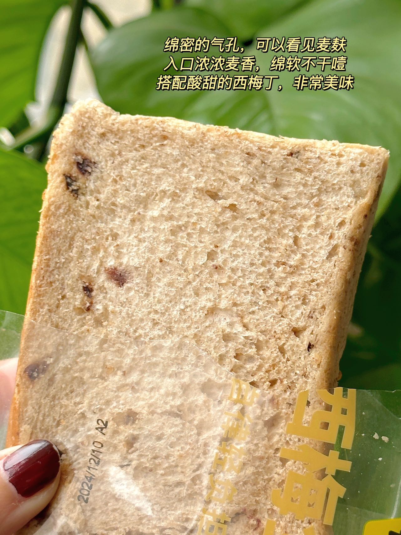 【配料】小麦粉、黑全麦粉、全麦粉、饮用水、新疆西梅丁(≥5%)、果葡糖浆、山梨糖醇液、海藻糖、鲜酵母、无水酥油、食用盐、丙酸钙、山梨酸、维生素C、食品用香精