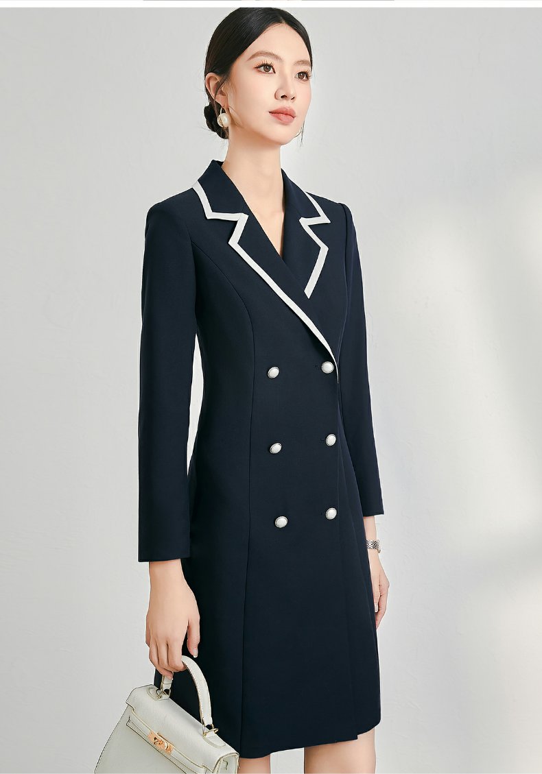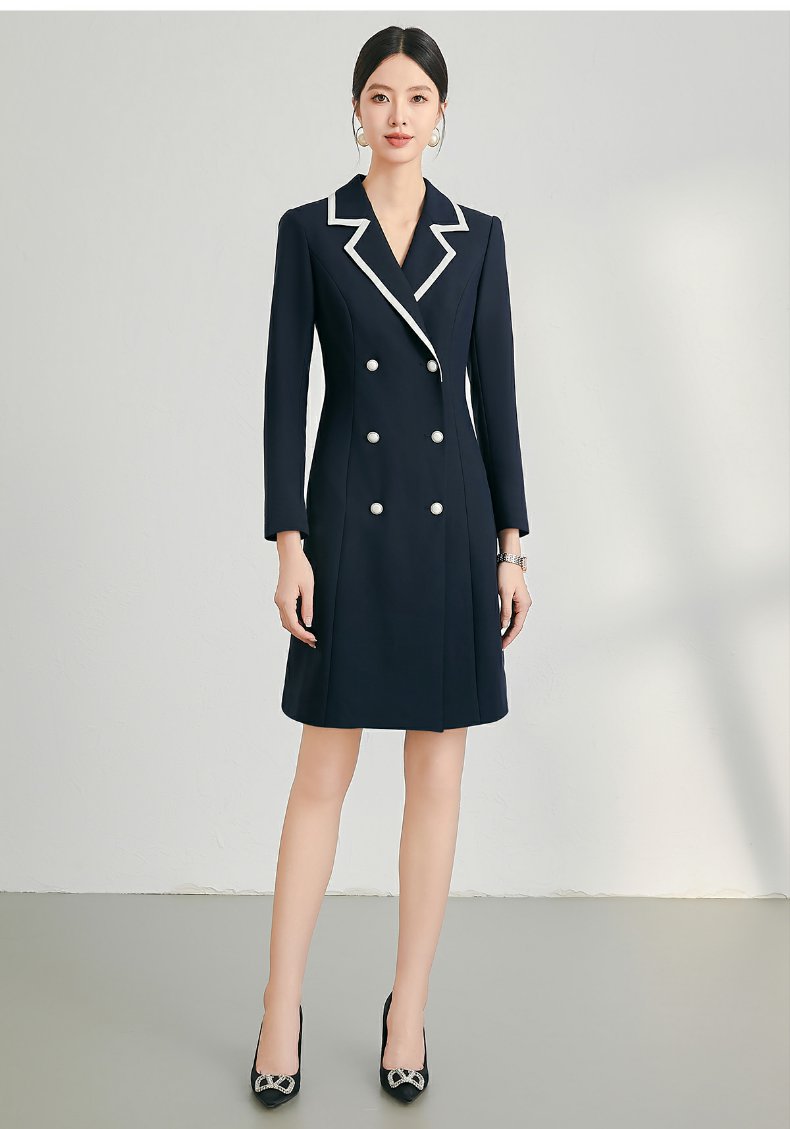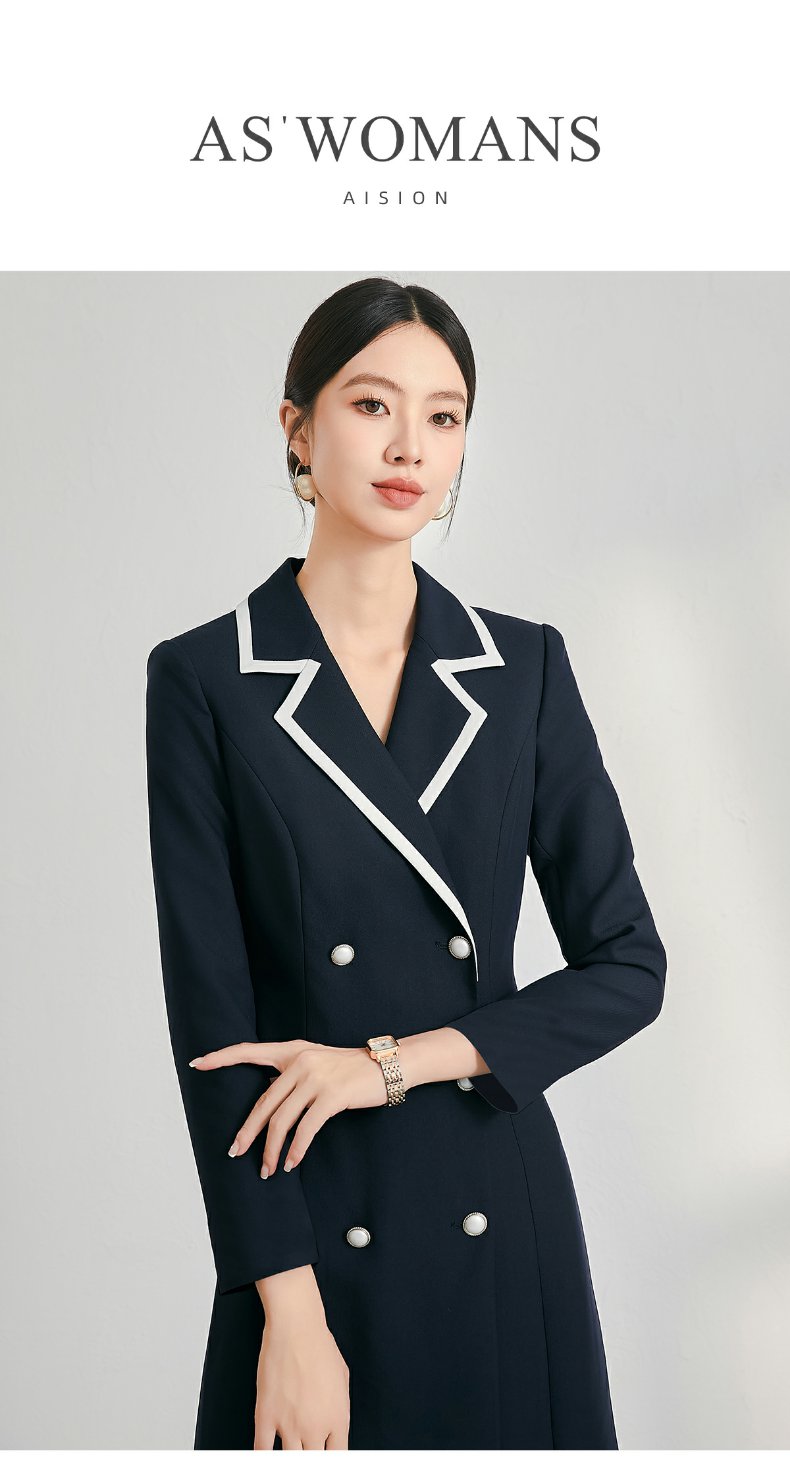 IWY/西装连衣裙女秋长袖双排扣职业装裙子正式场合通勤女裙冬24Q127