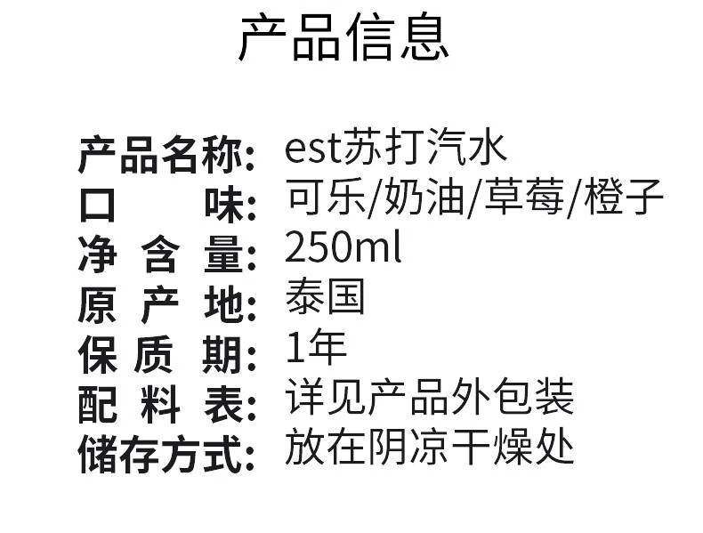 泰国est可乐味/橙味/奶油苏打味汽水250ml 泰国畅享汽水饮料冰爽一夏 023425/023426/023427/025501