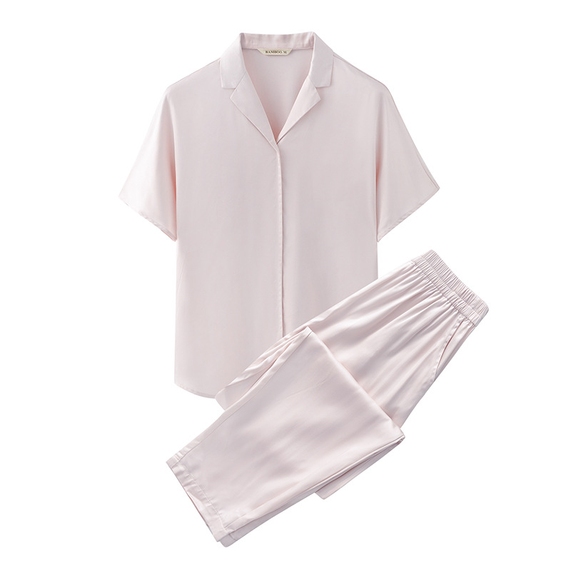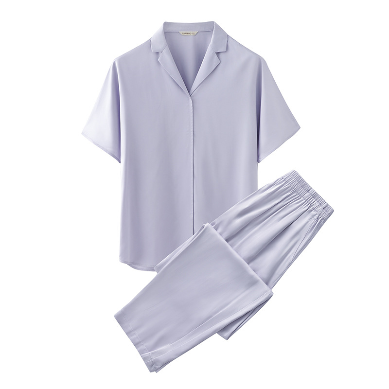 【竹纤维家居服】竹纤维家居服纯色情侣睡衣套装冰丝夏季短袖长裤凉感