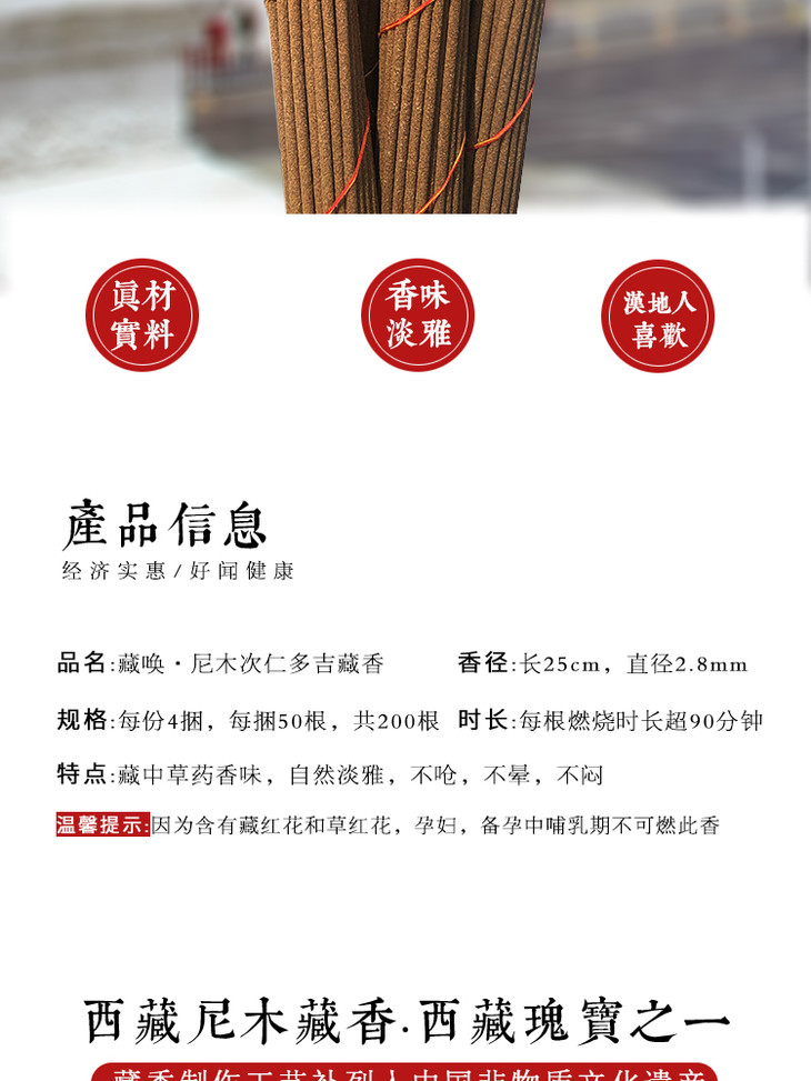 【拍3赠1送纯铜小葫芦香插】藏唤23味藏药香尼木次仁多吉手工藏香