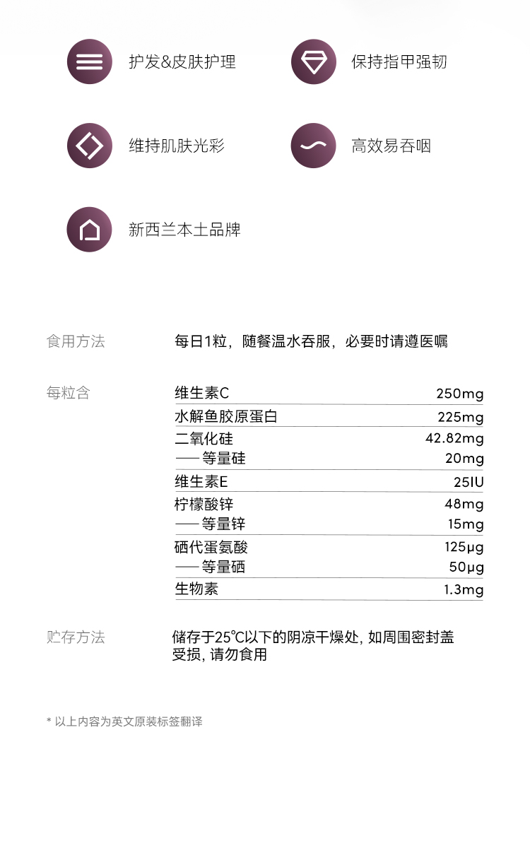 ² 【MT新西兰进口“嘭嘭丸” 水解胶原蛋白】1.3mg生物素 60粒/瓶 HM02-CRMM-YYSJ