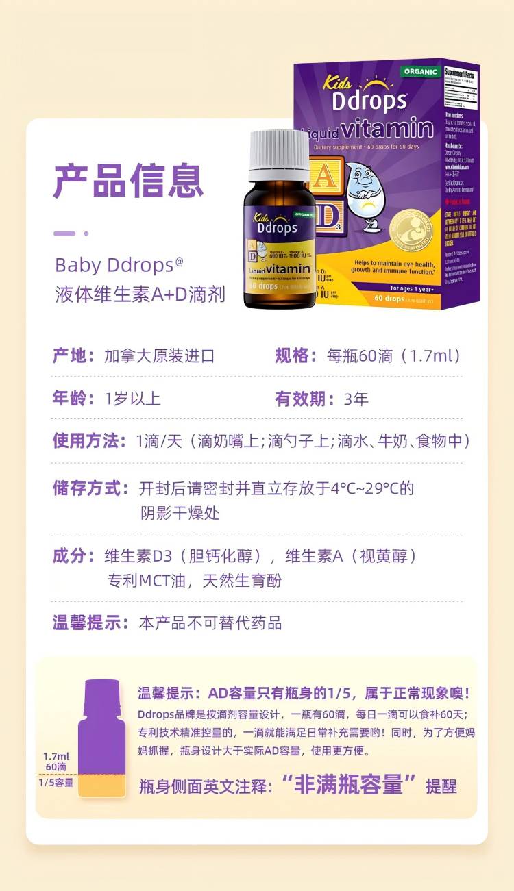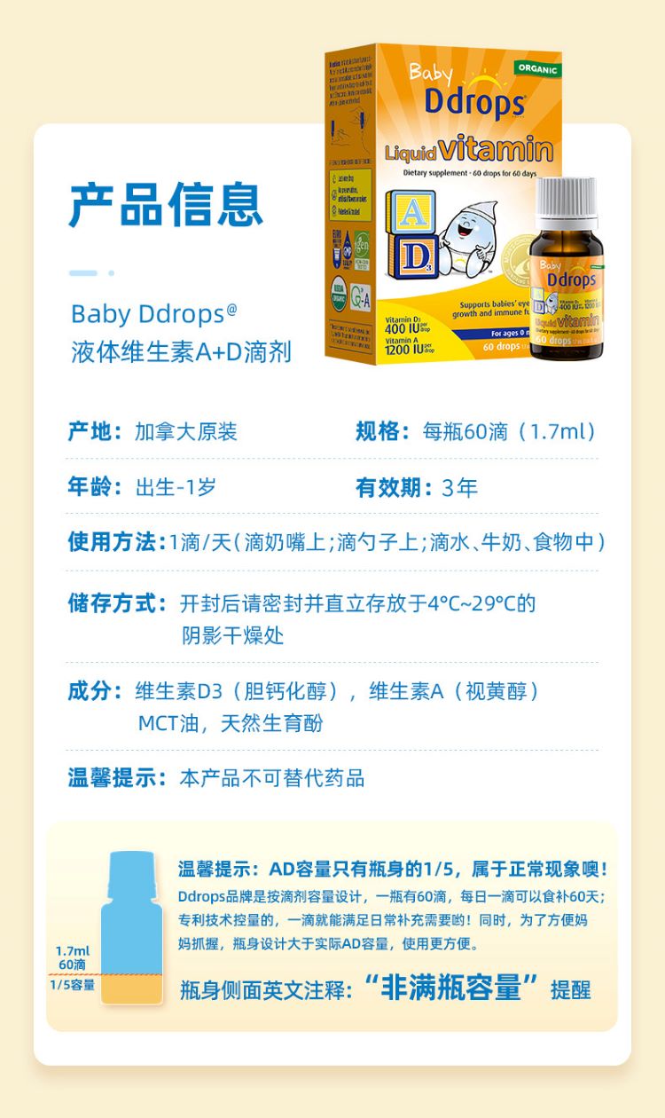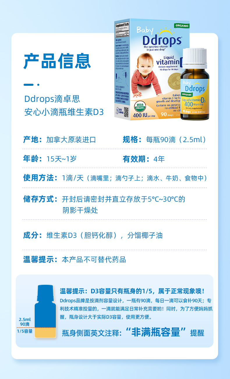 【含邮含税】Ddrops成人维生素D3滴剂1000iu 5ml/瓶