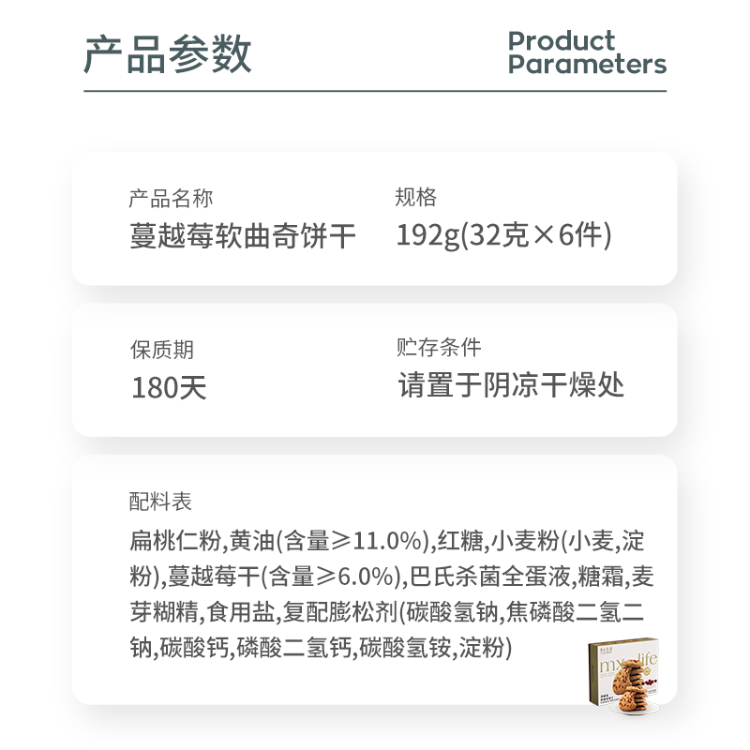 美心生活蔓越莓软曲奇饼干192g(32g*6)/盒