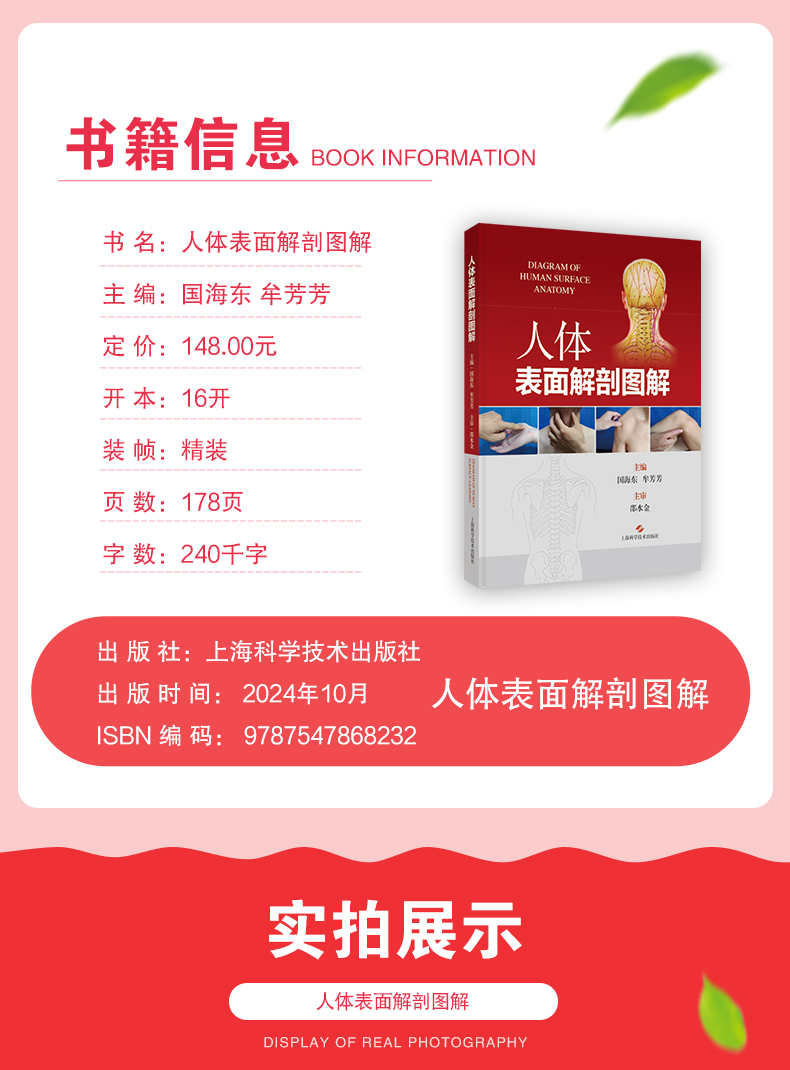 人体表面解剖图解 国海东等编 重要结构及血管 神经的体表投影 脊柱区表面解剖 上肢表而解剖 9787547868232上海科学技术出版社