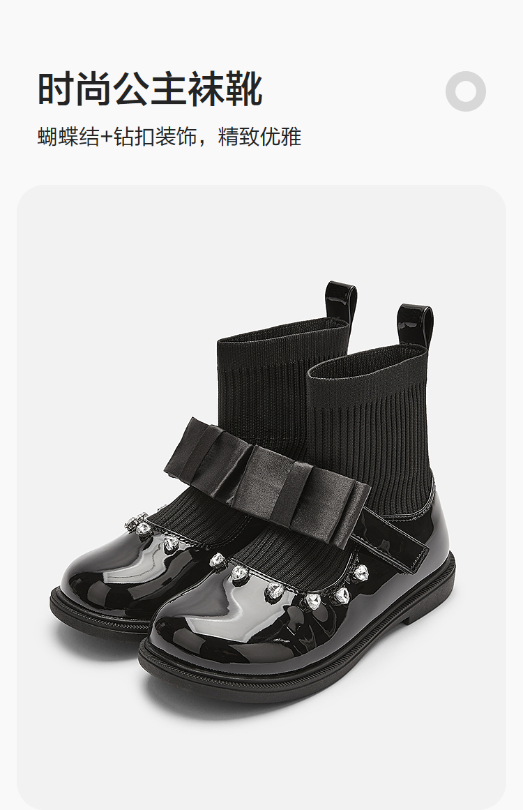 巴拉巴拉童鞋女童公主靴蝴蝶结中筒靴子黑色皮靴秋季袜靴时髦百搭