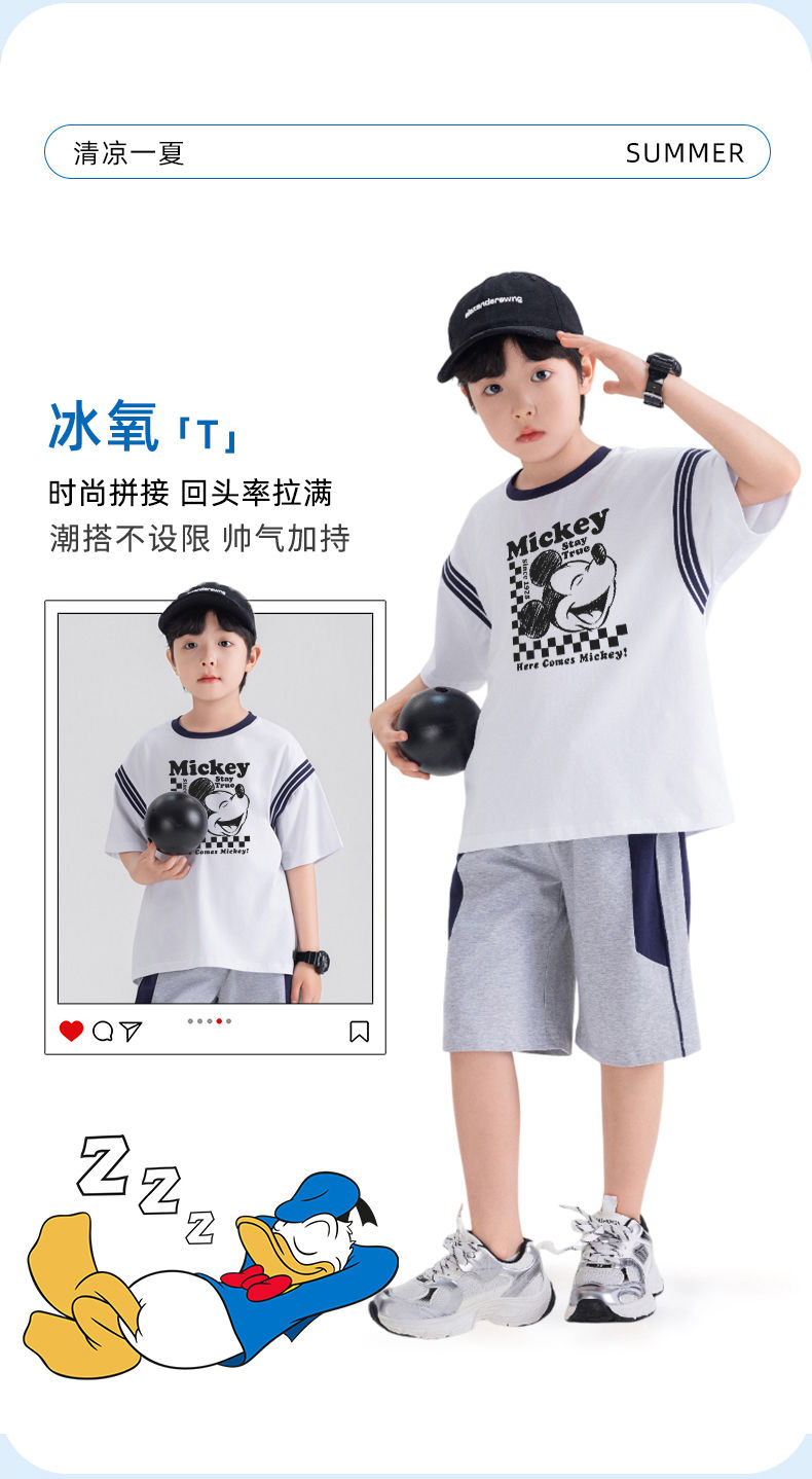 H72迪士尼男童短袖夏季2025新款夏装儿童体恤帅气上衣男大童半袖