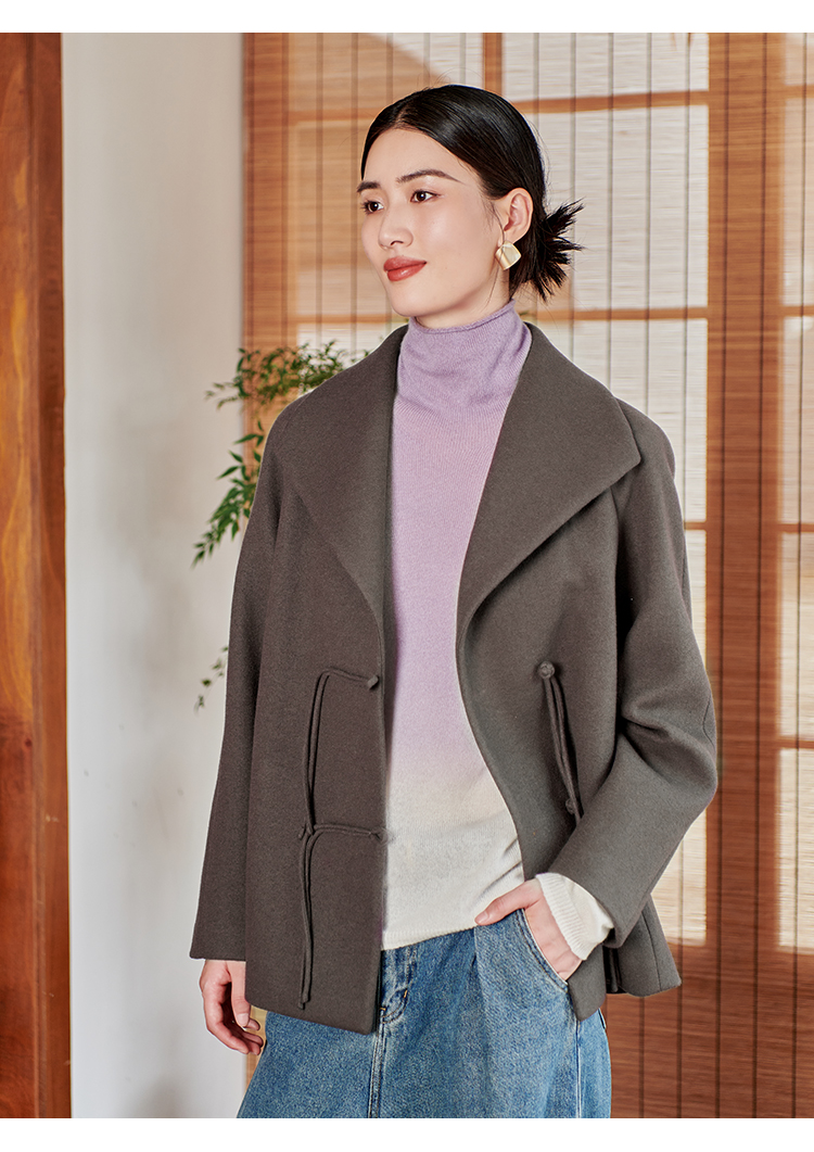佐尔美冬季新款 浪漫国风时髦流苏简约盘扣羊毛大衣女E34ZD30