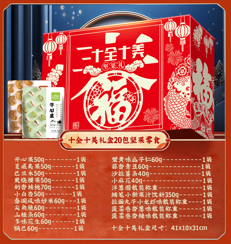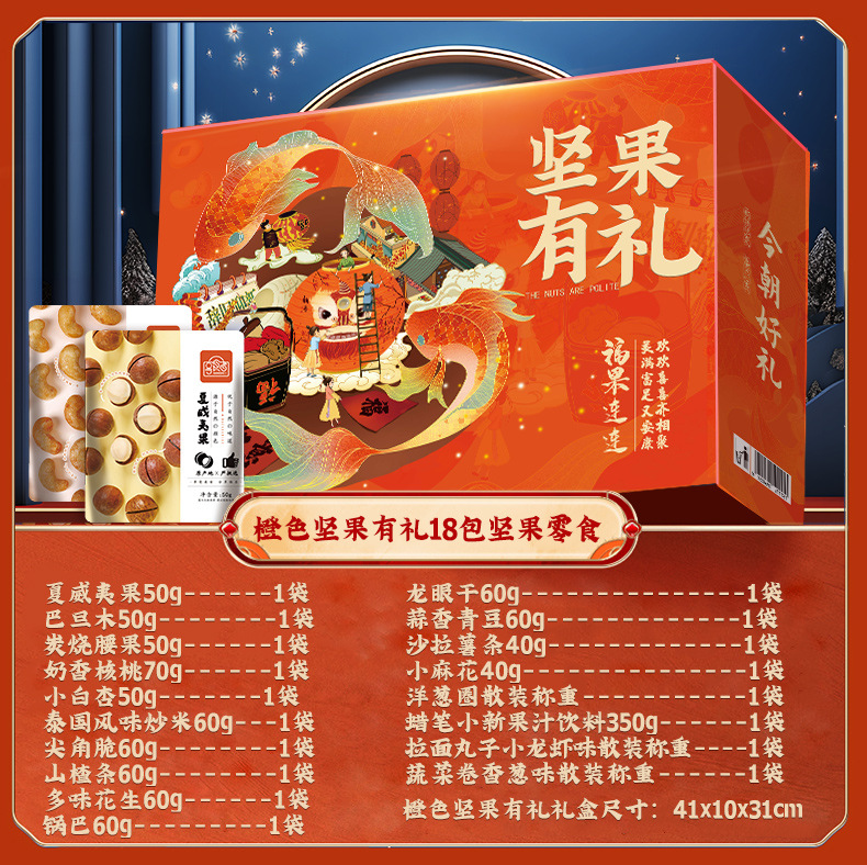 「18袋装」夏威夷果开心果干果整箱年货大礼包坚果礼盒坚果零食品