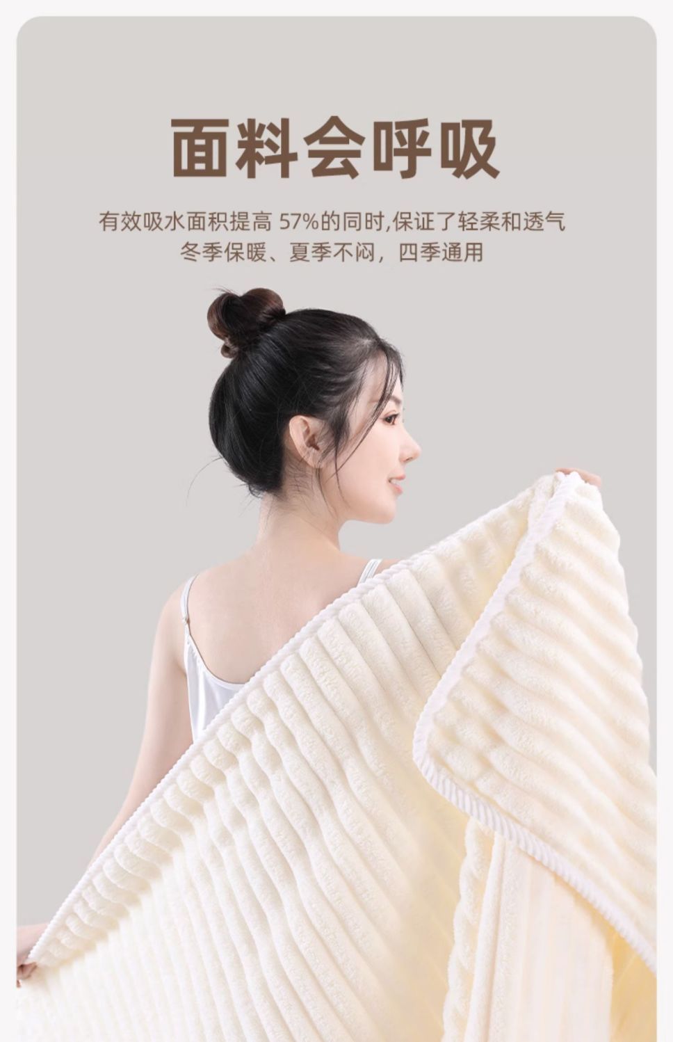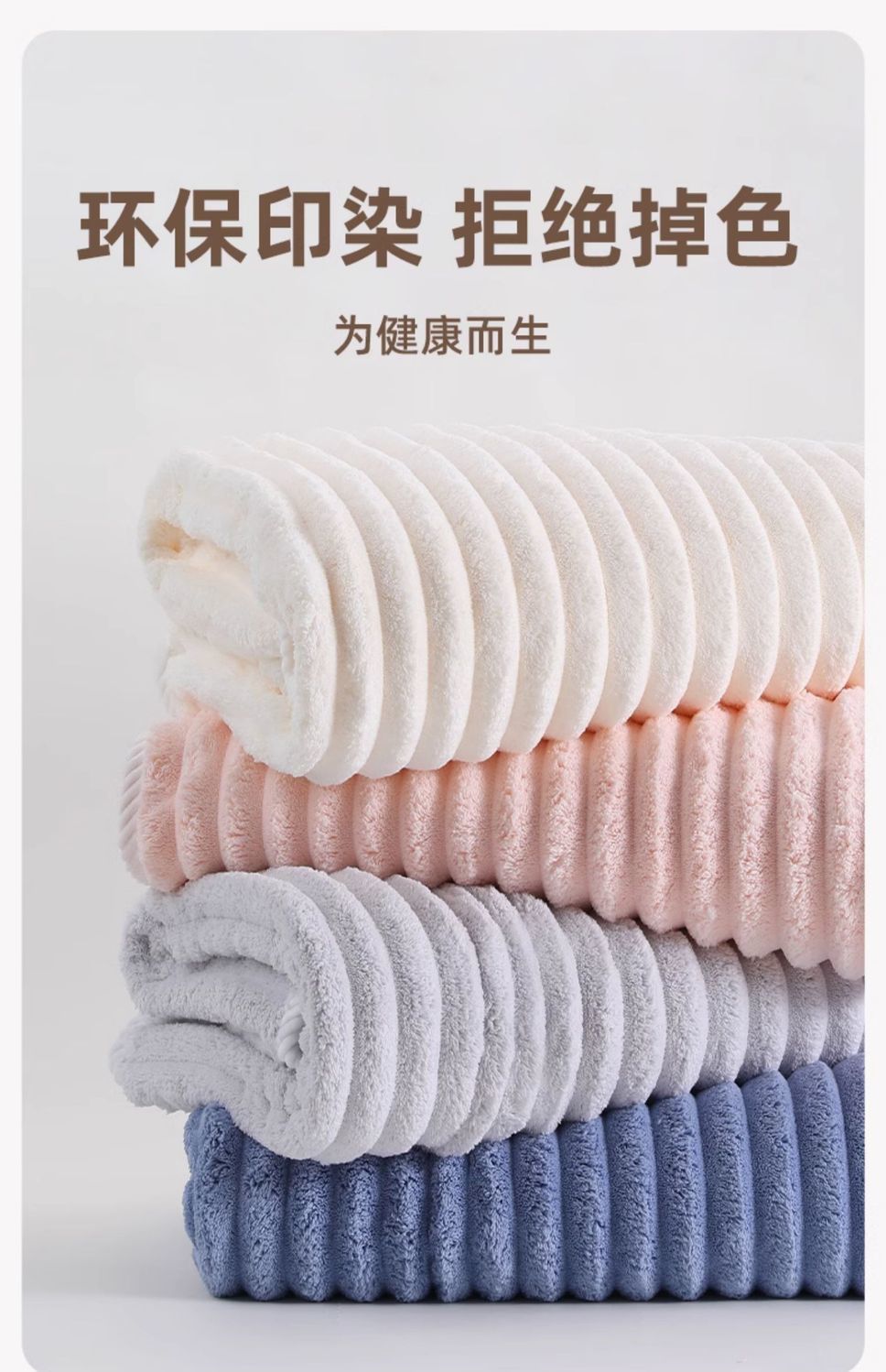 「感受云柔!椰椰奶条浴巾」不掉毛包边加厚珊瑚绒糖果条浴巾 洗澡吸水加大成人居家布艺