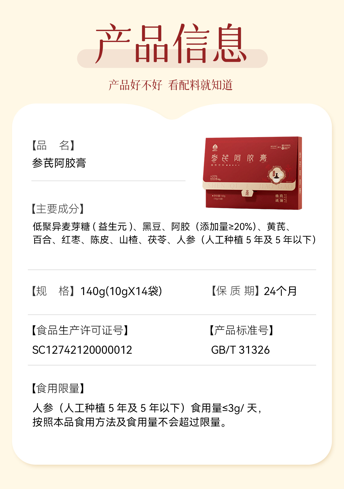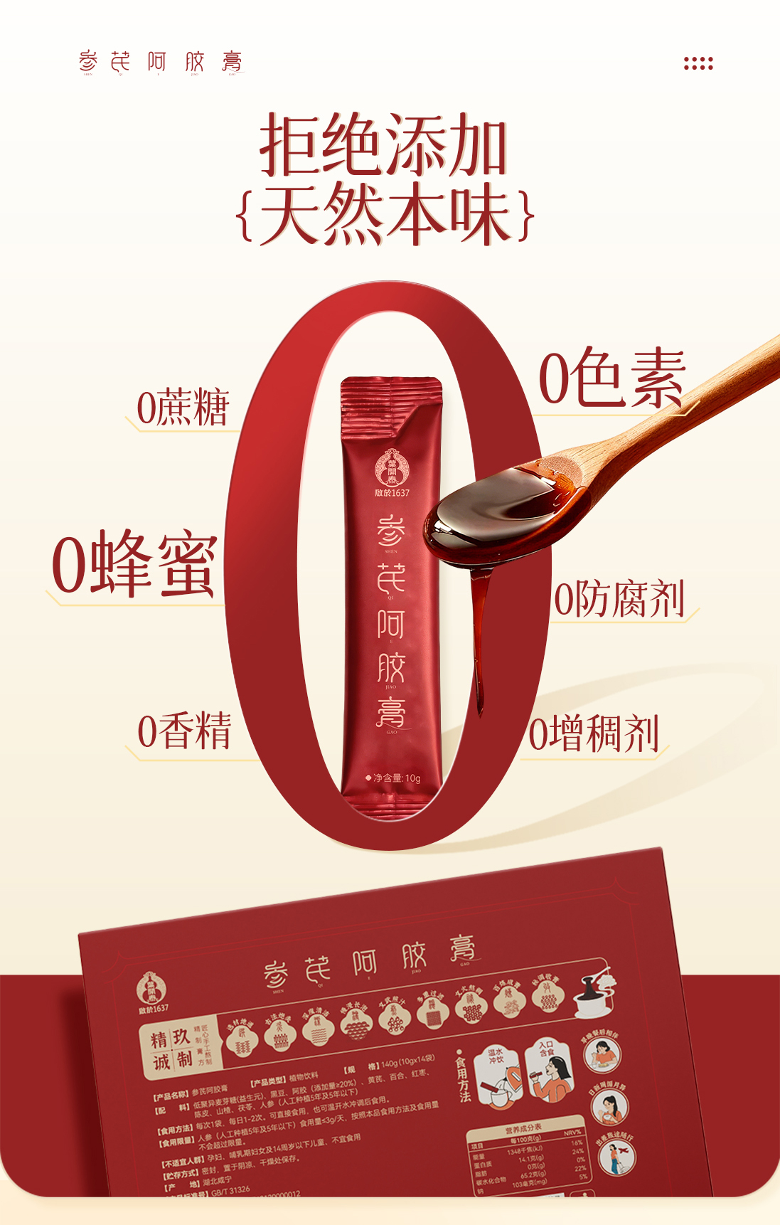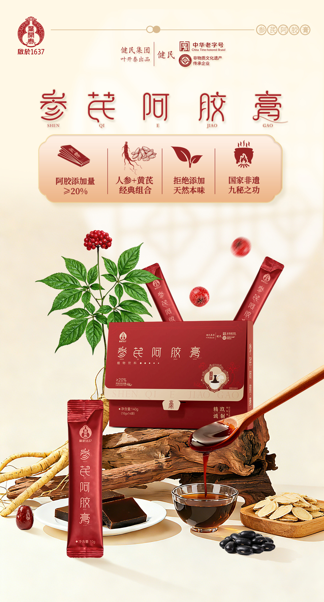 【春日养气血】叶开泰参芪阿胶膏14袋/盒